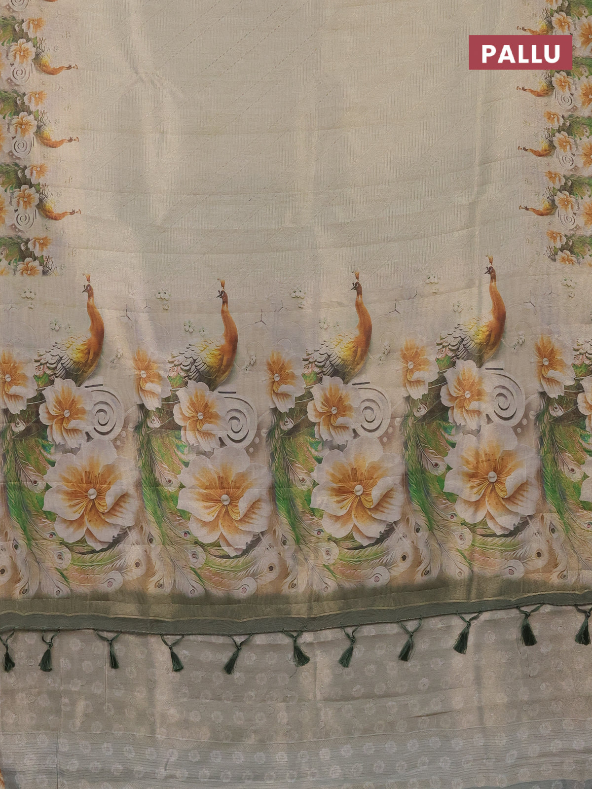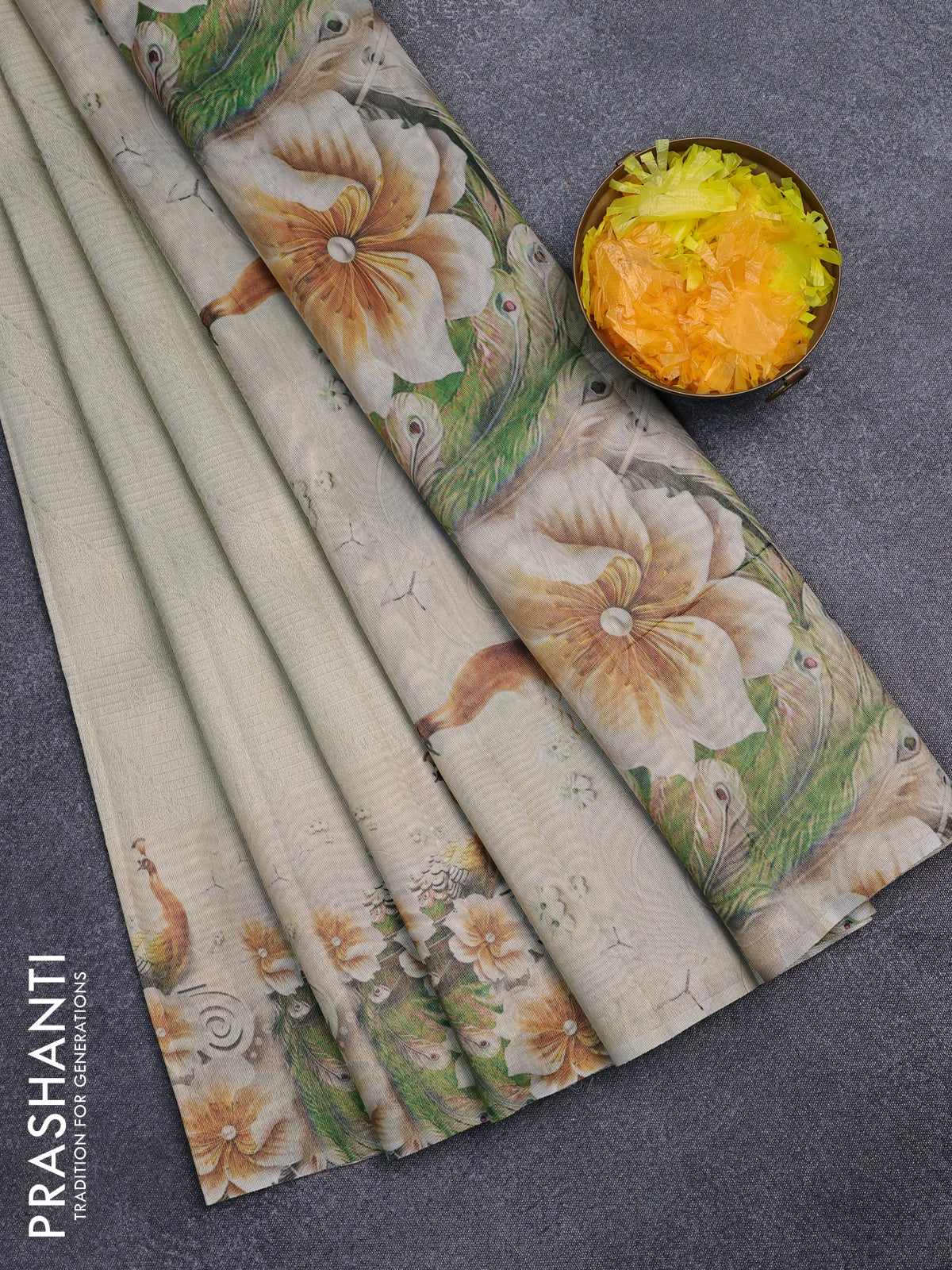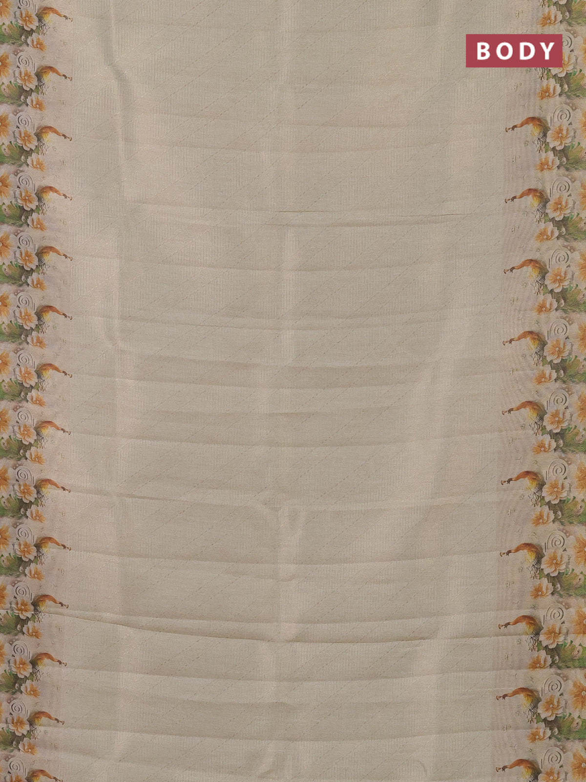 Tissue saree cream with allover zari weaves and floral digital printed border