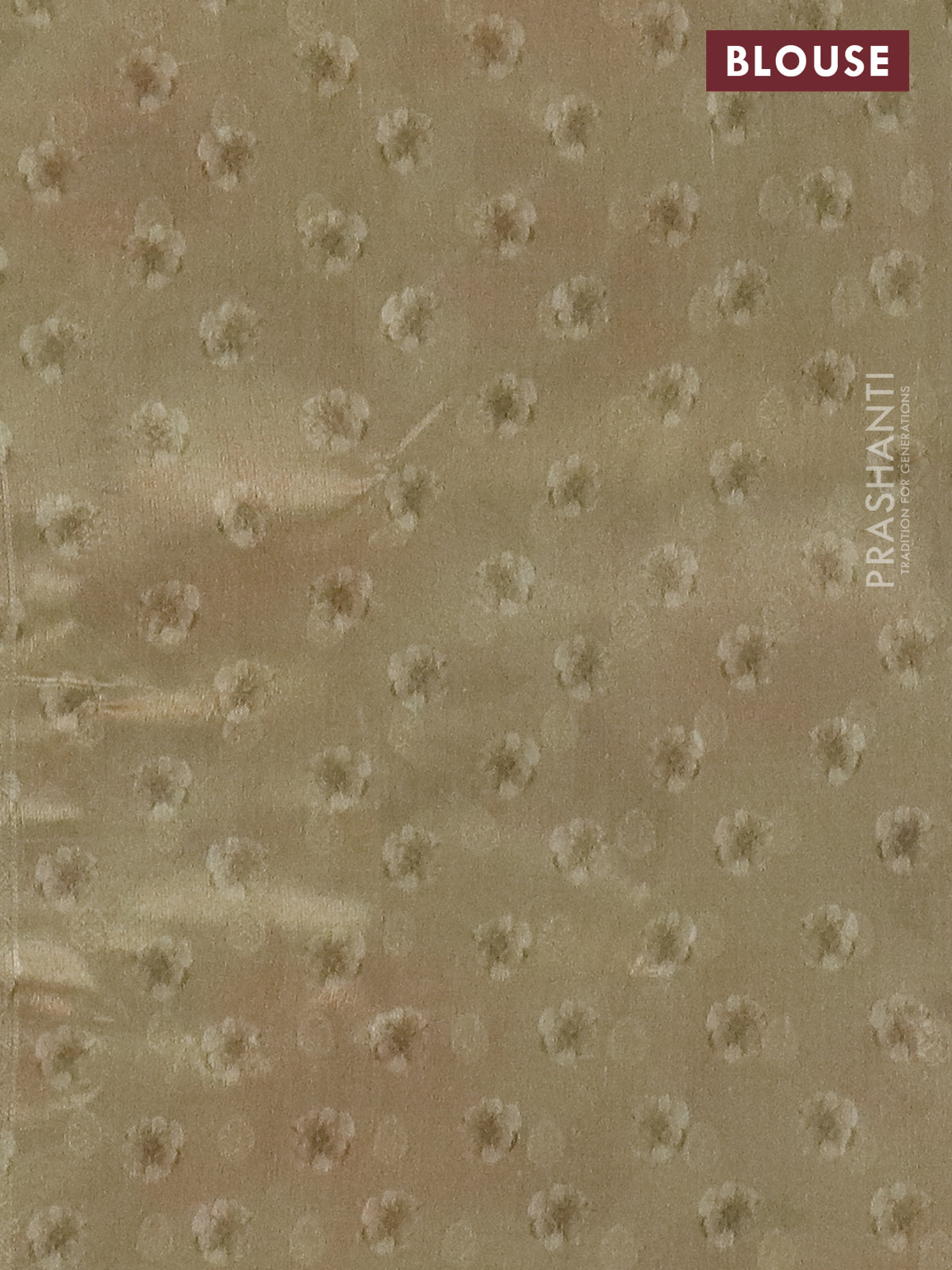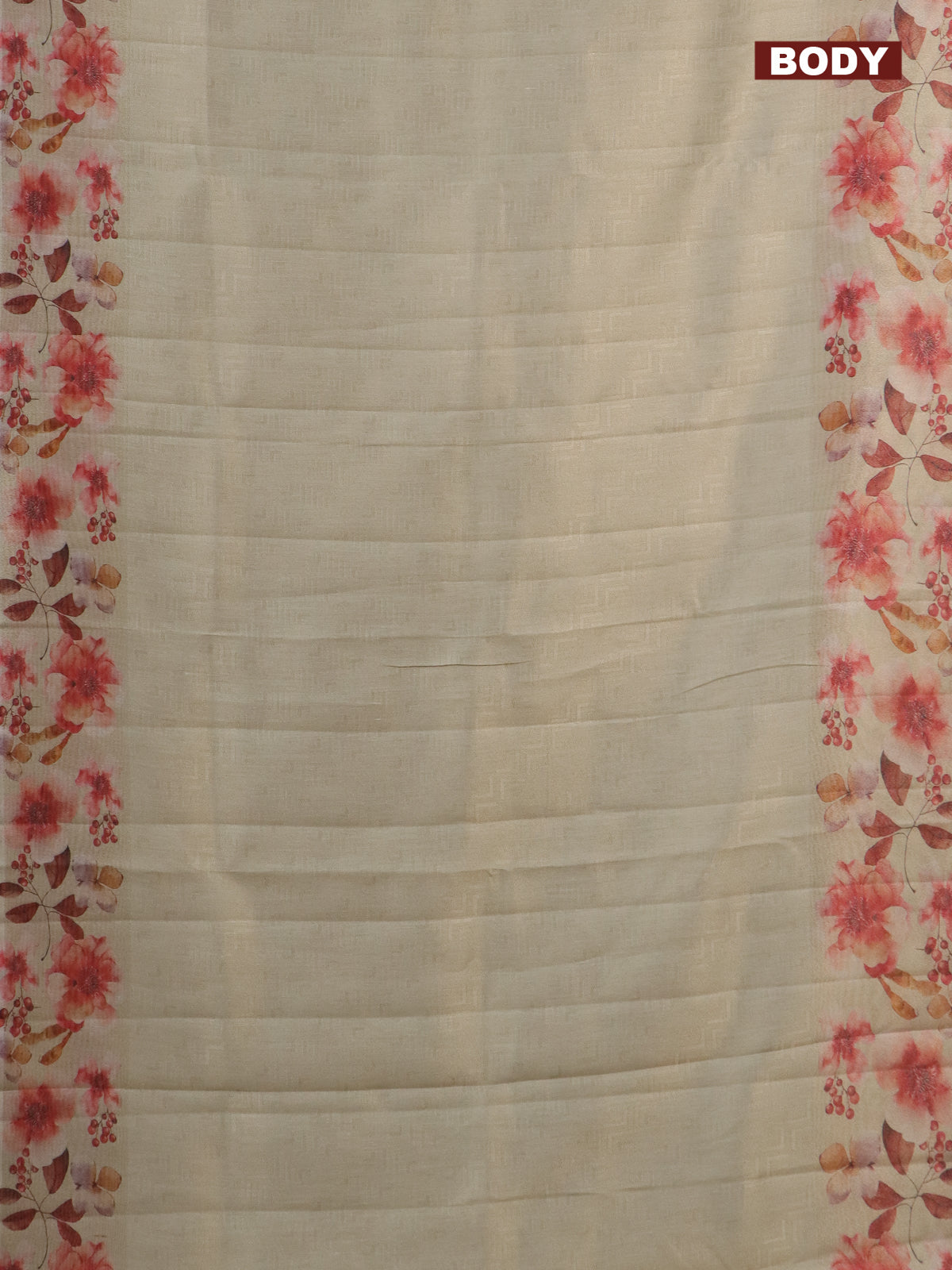 Tissue saree cream with allover zari weaves and floral digital printed border