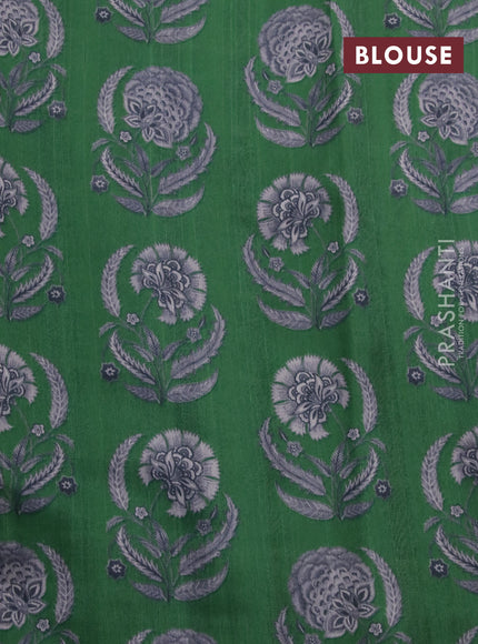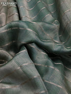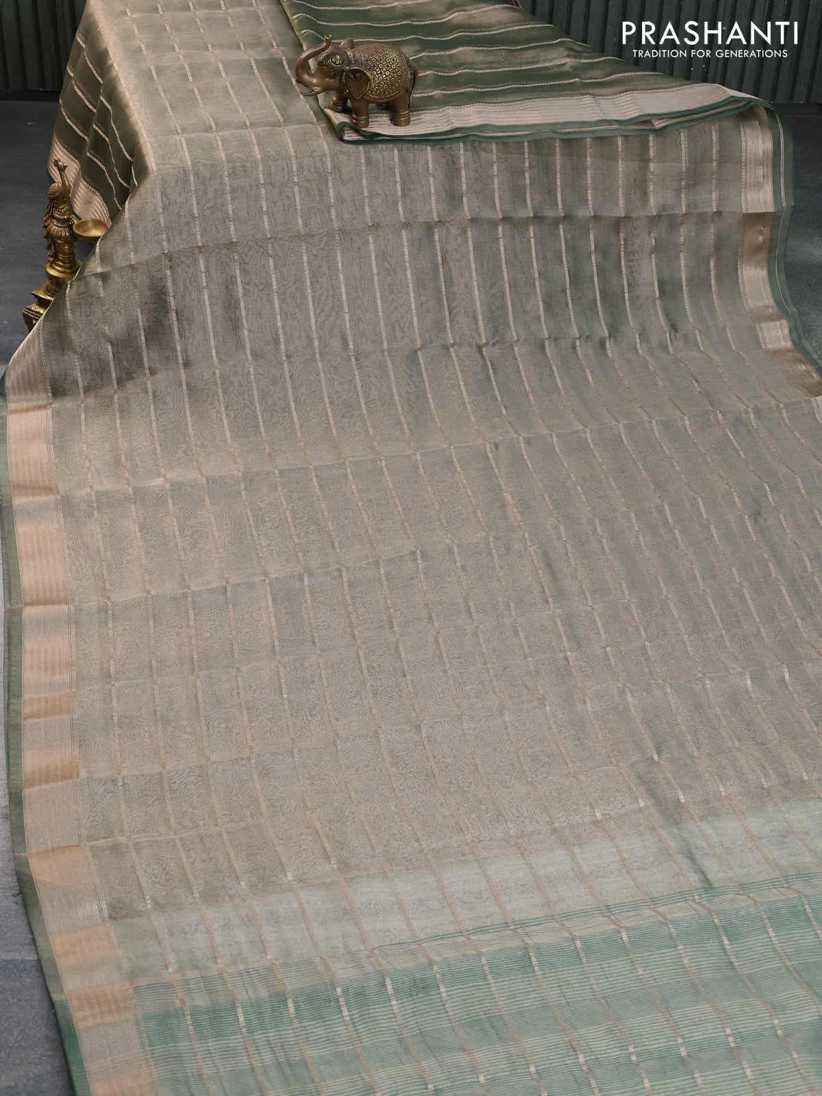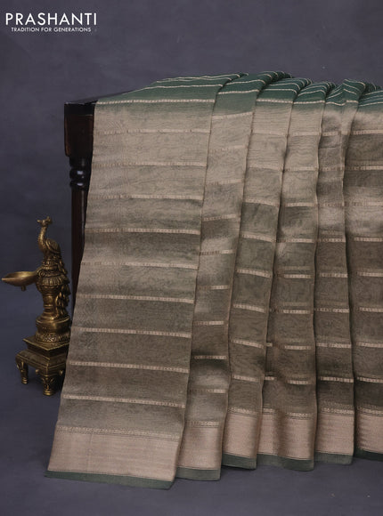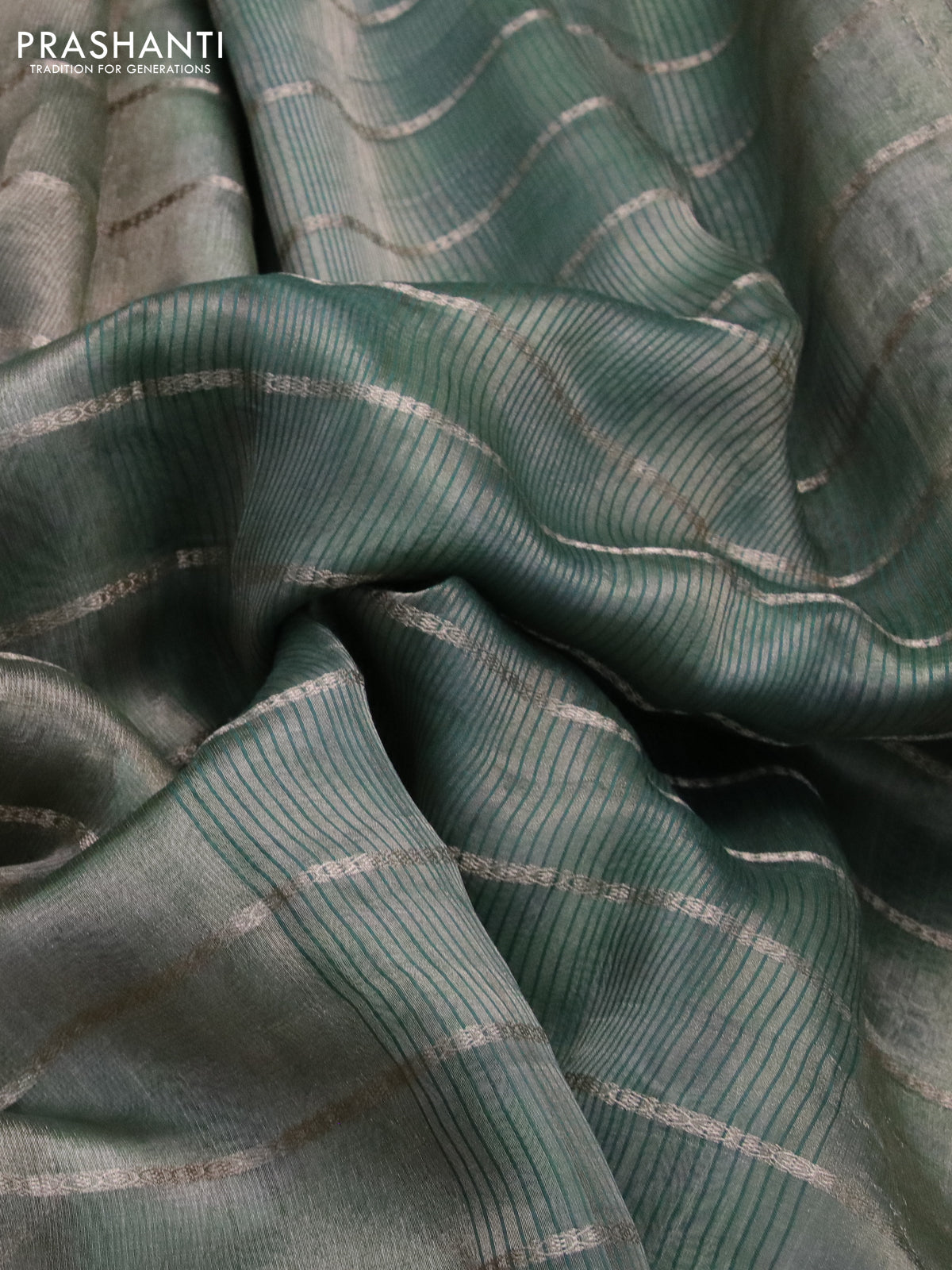 Tissue saree dual shade of green and green with allover zari woven stripes pattern and zari woven border - printed blouse