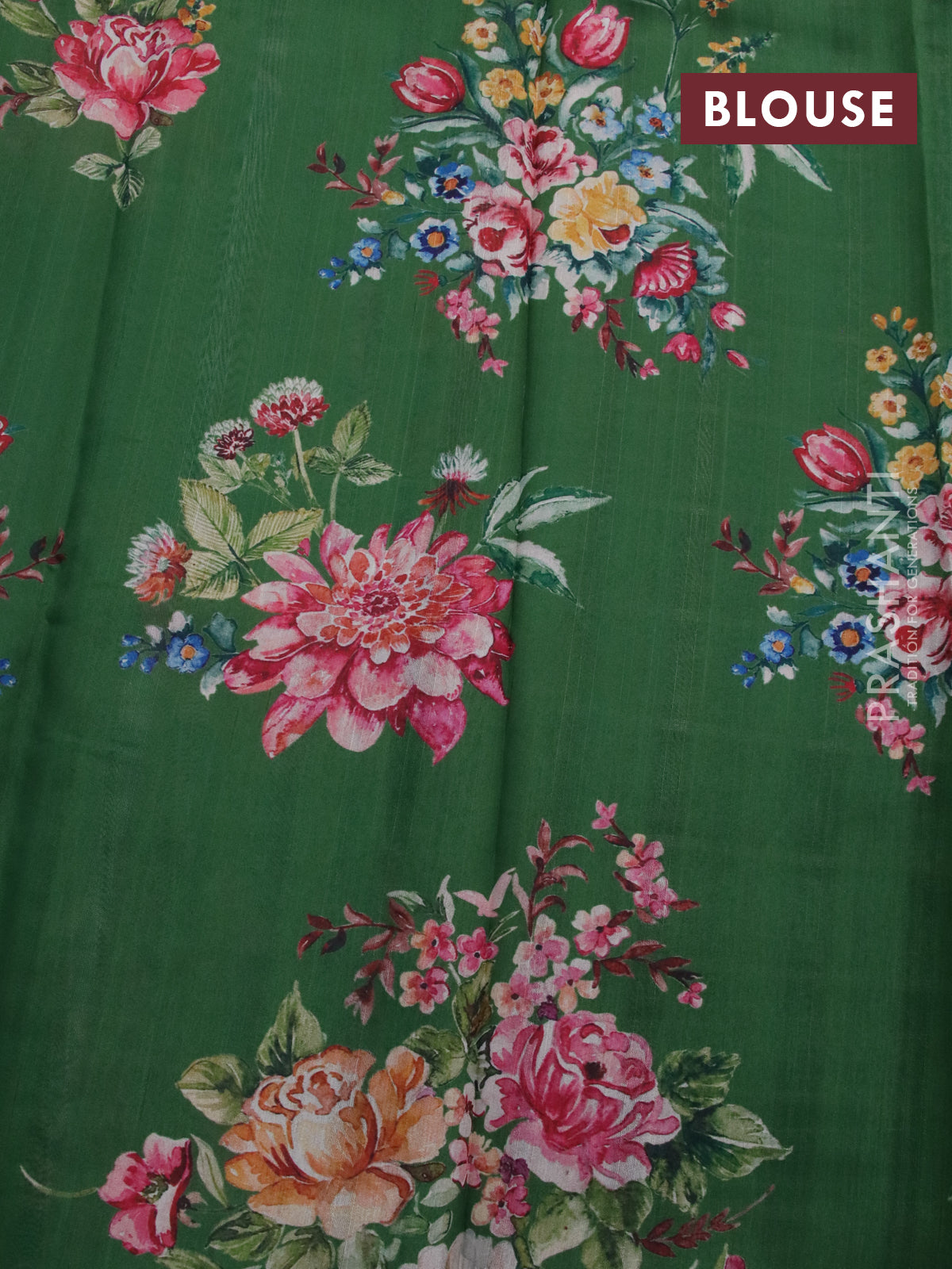Tissue saree dual shade of green and green with allover zari woven stripes pattern and zari woven border - printed blouse