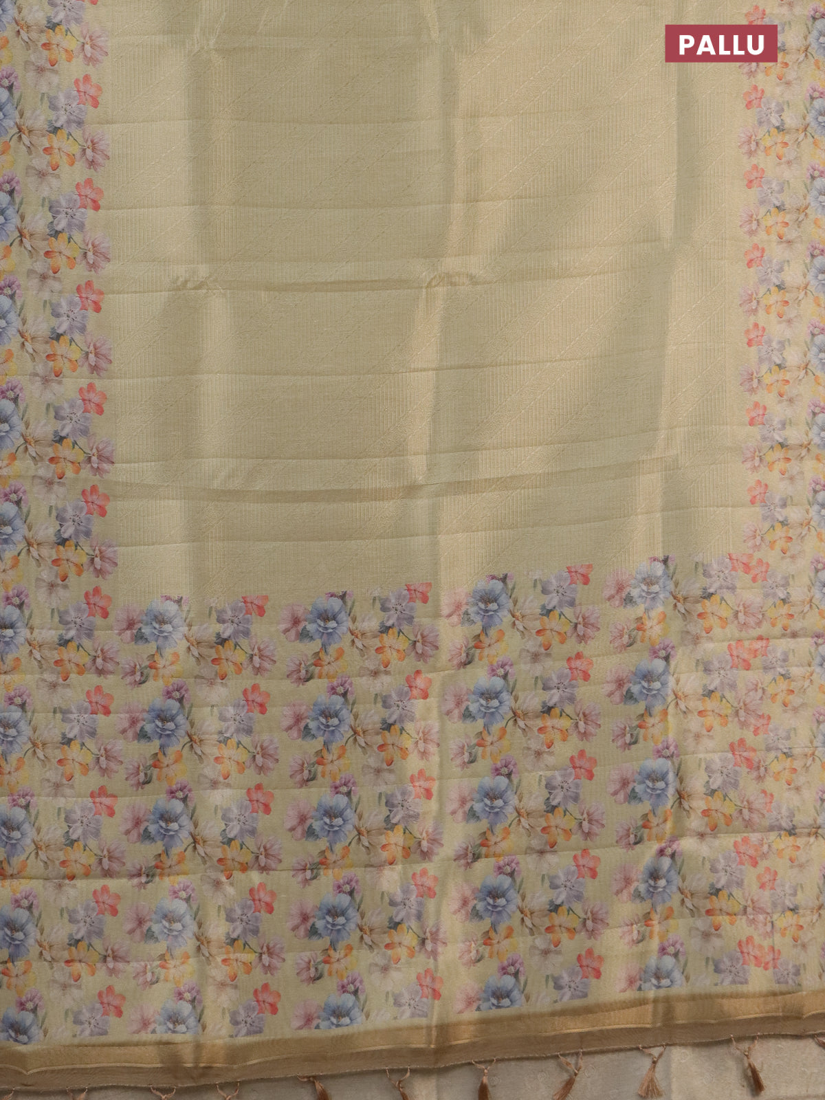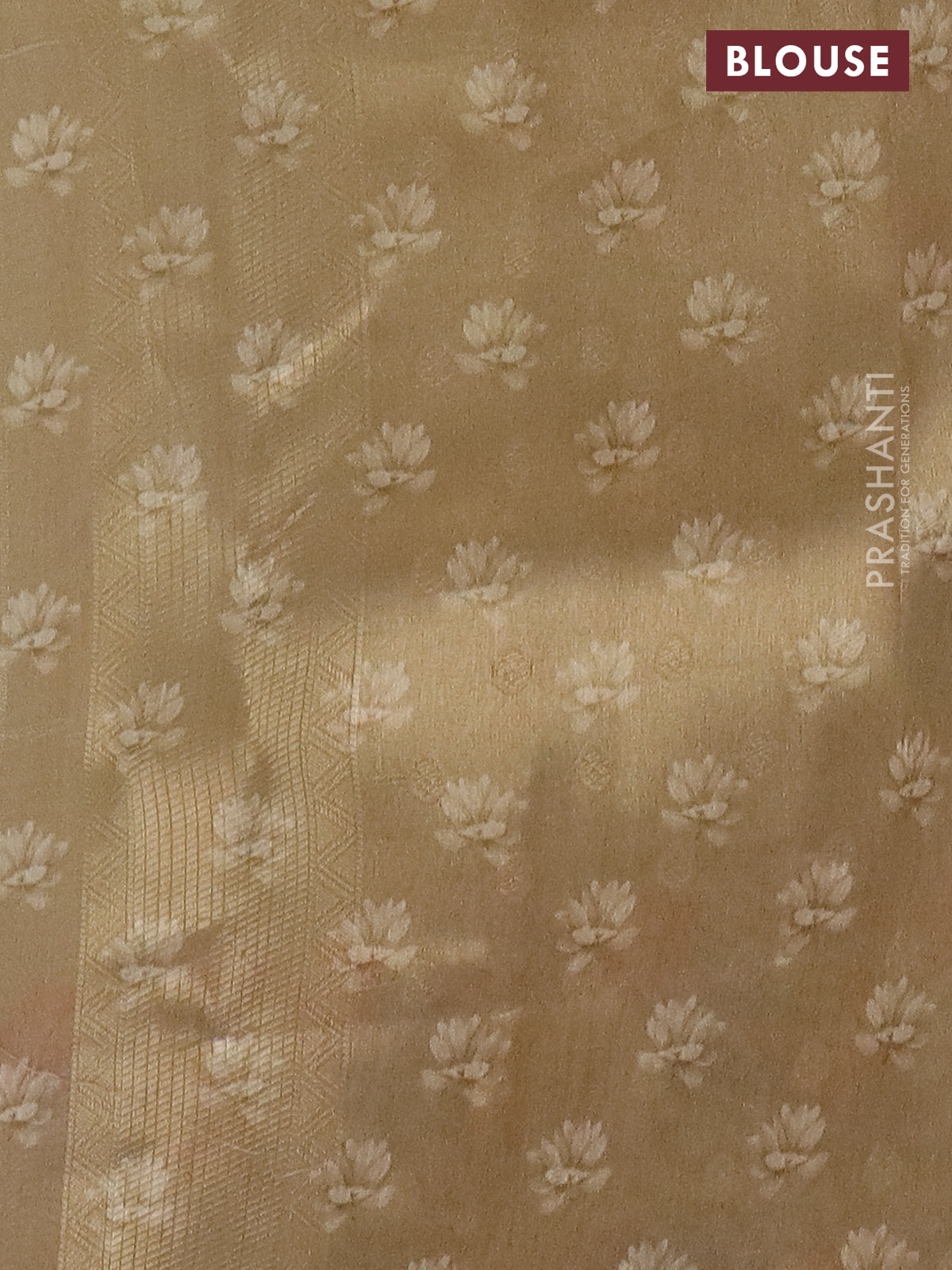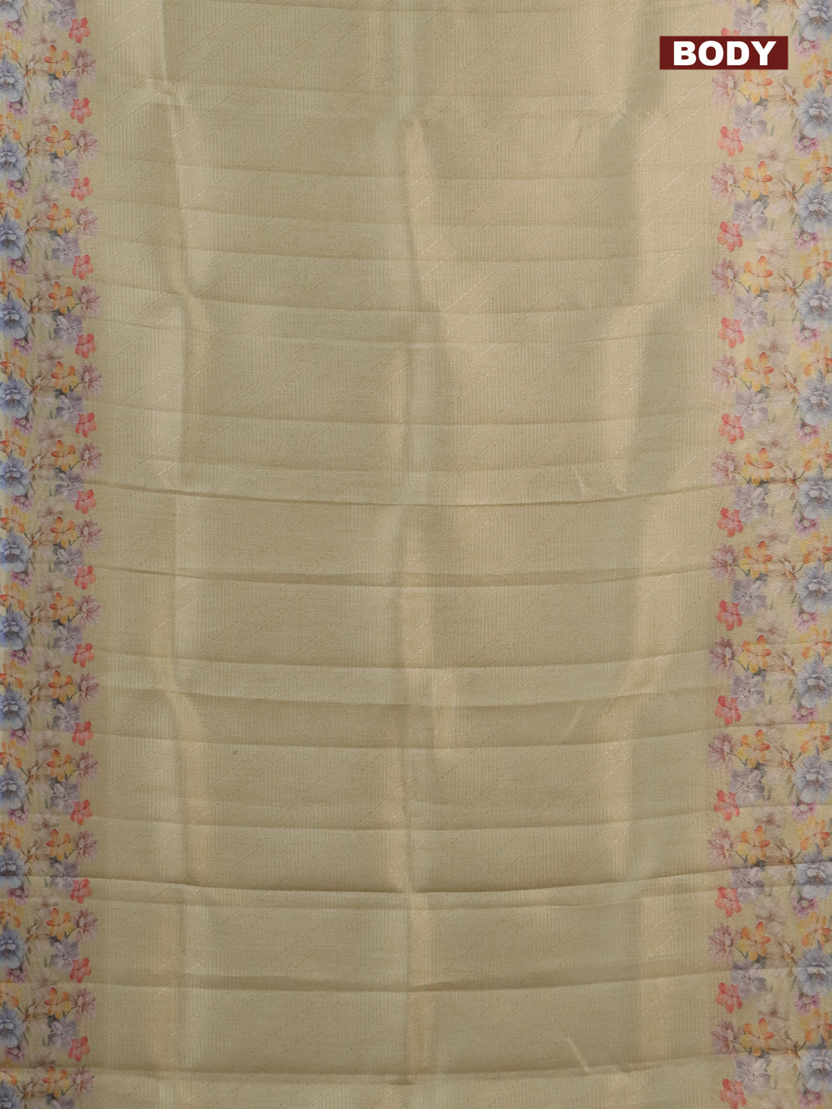 Tissue saree gold with allover zari weaves and floral digital printed border