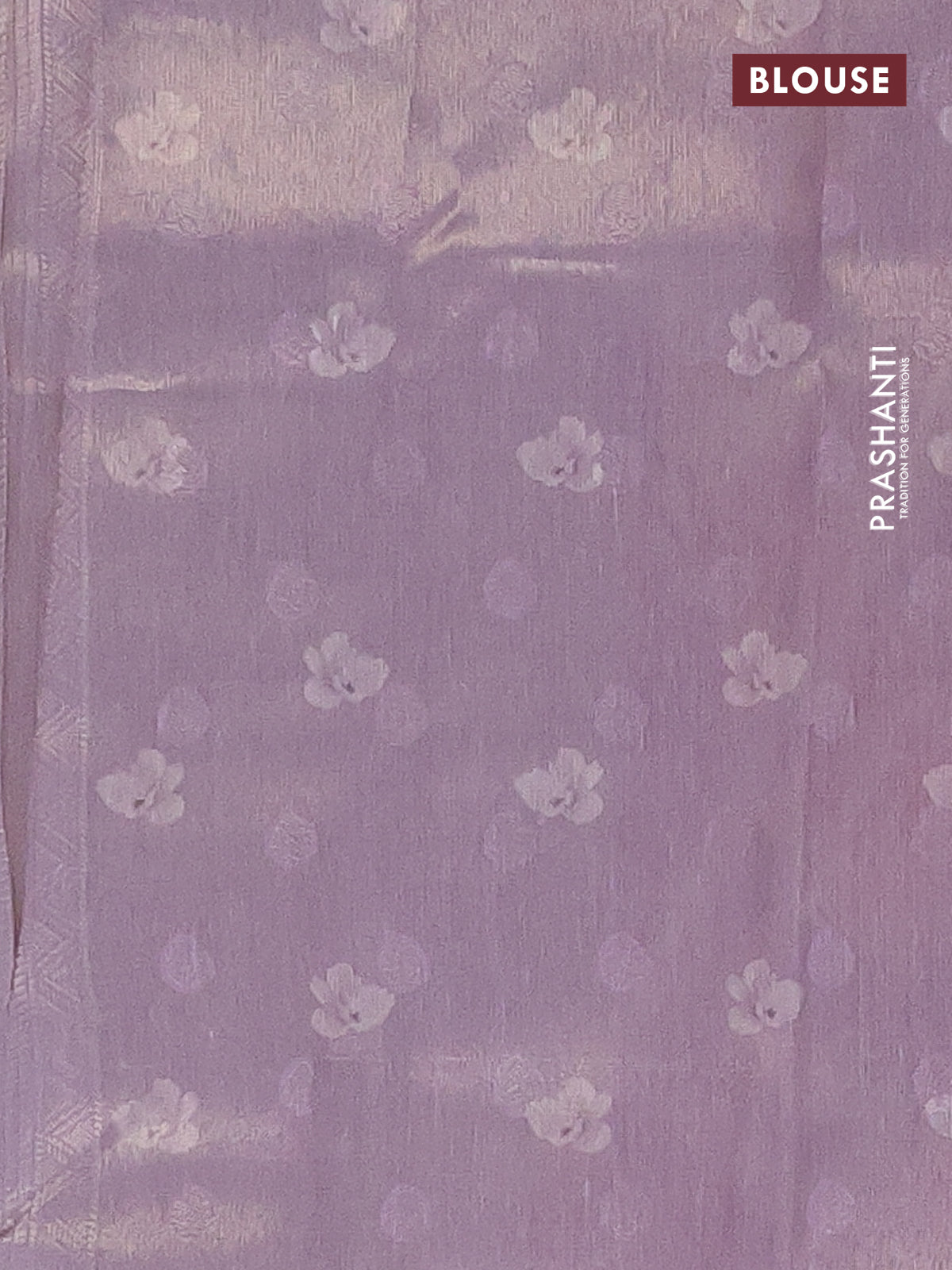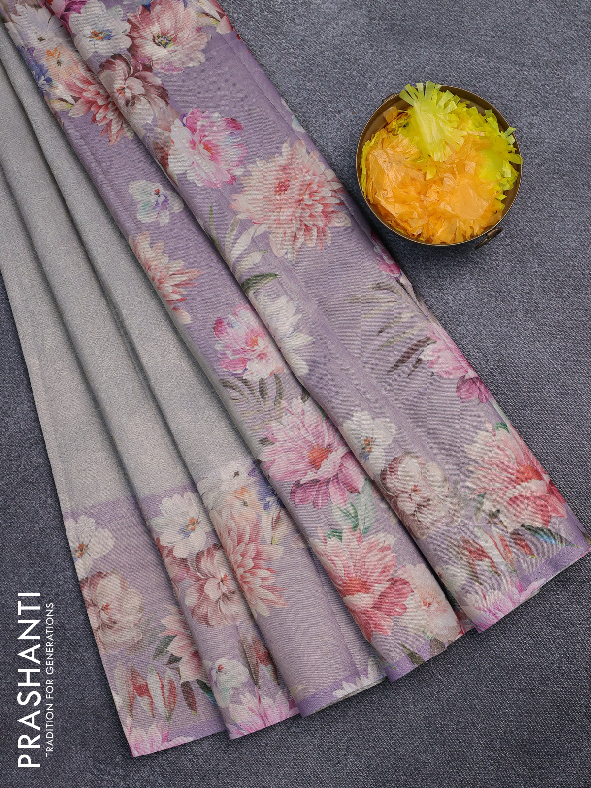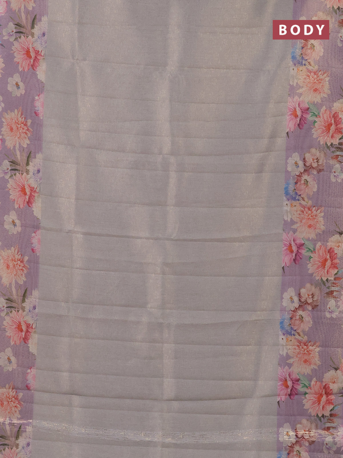 Tissue saree grey shade and lavender with allover zari weaves and floral digital printed border