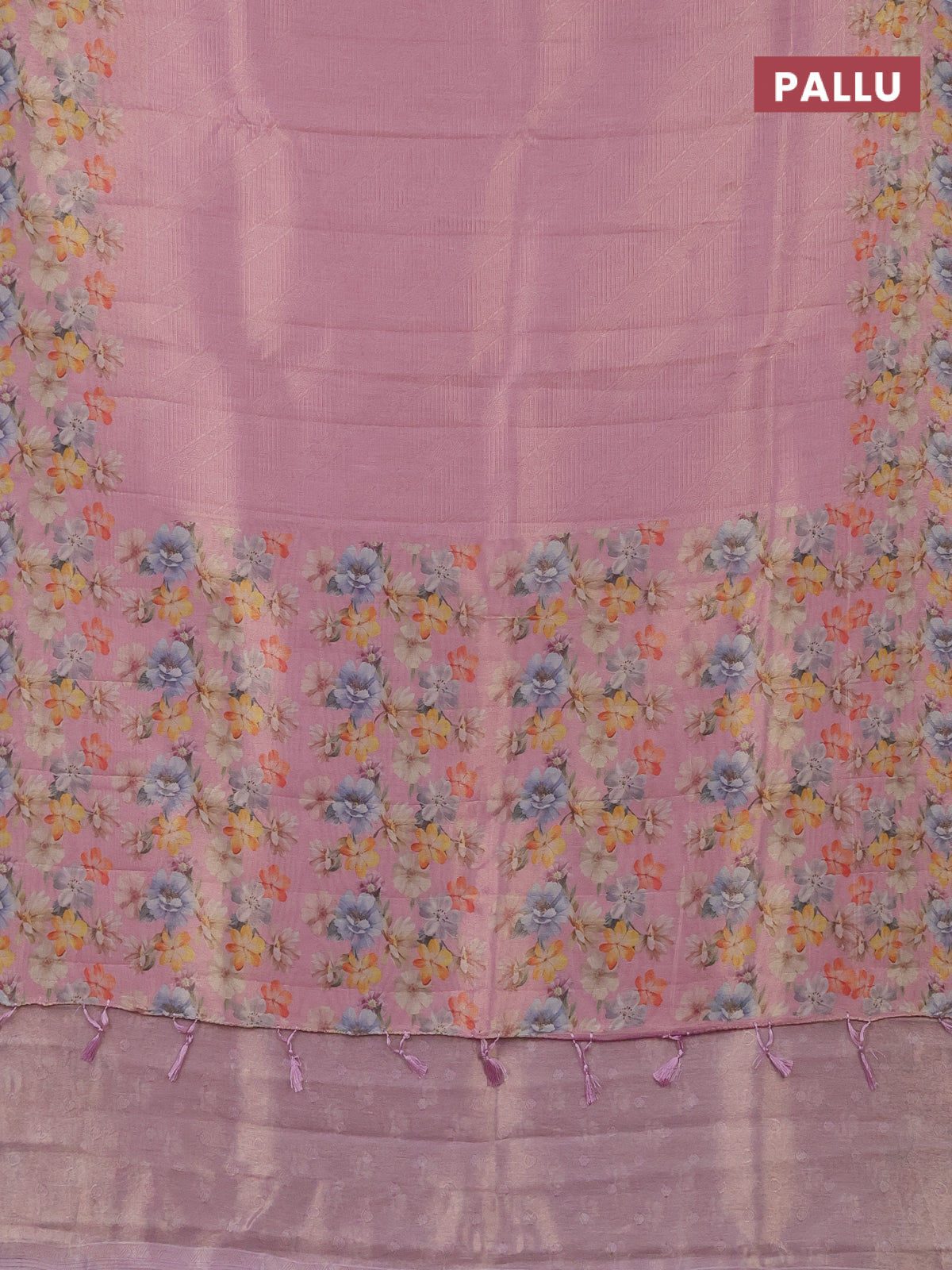 Tissue saree light pink with allover zari weaves and floral digital printed border