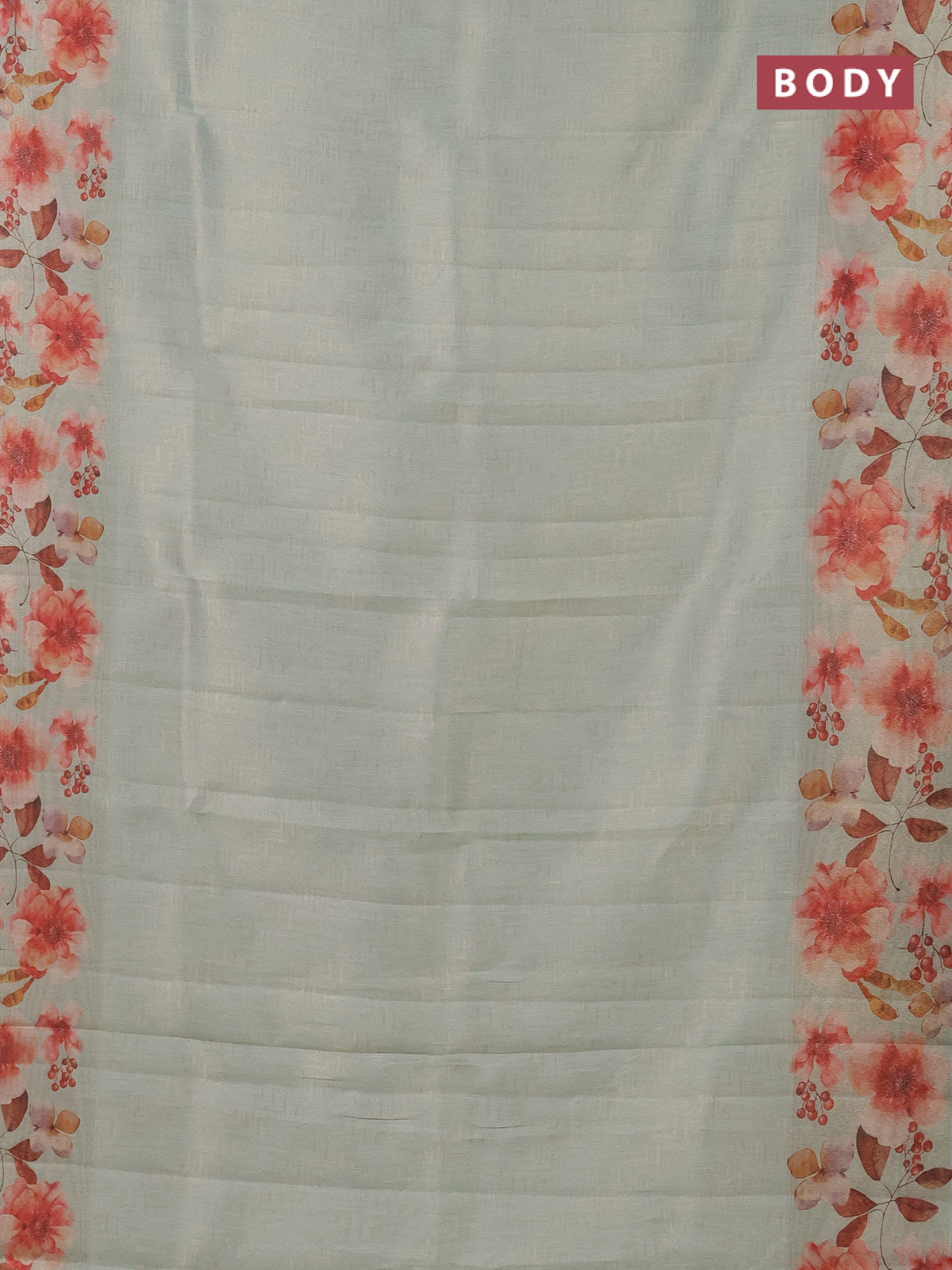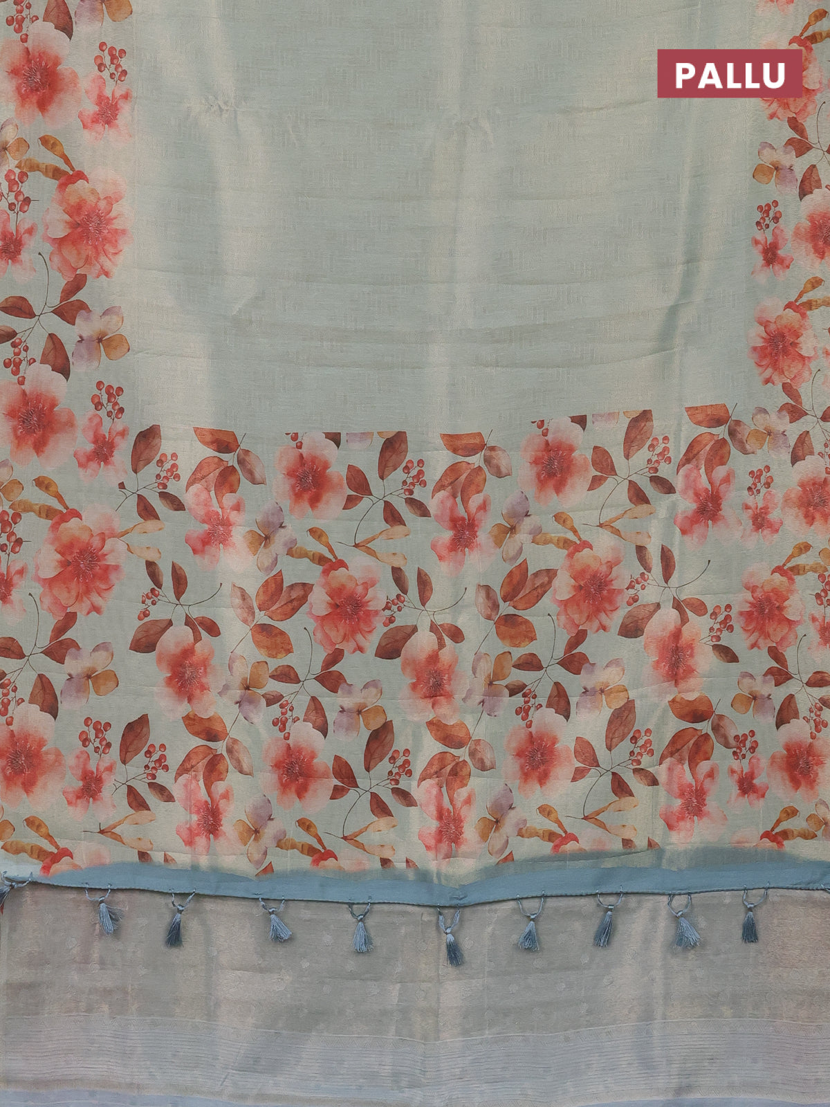 Tissue saree pastel green with allover zari weaves and floral digital printed border
