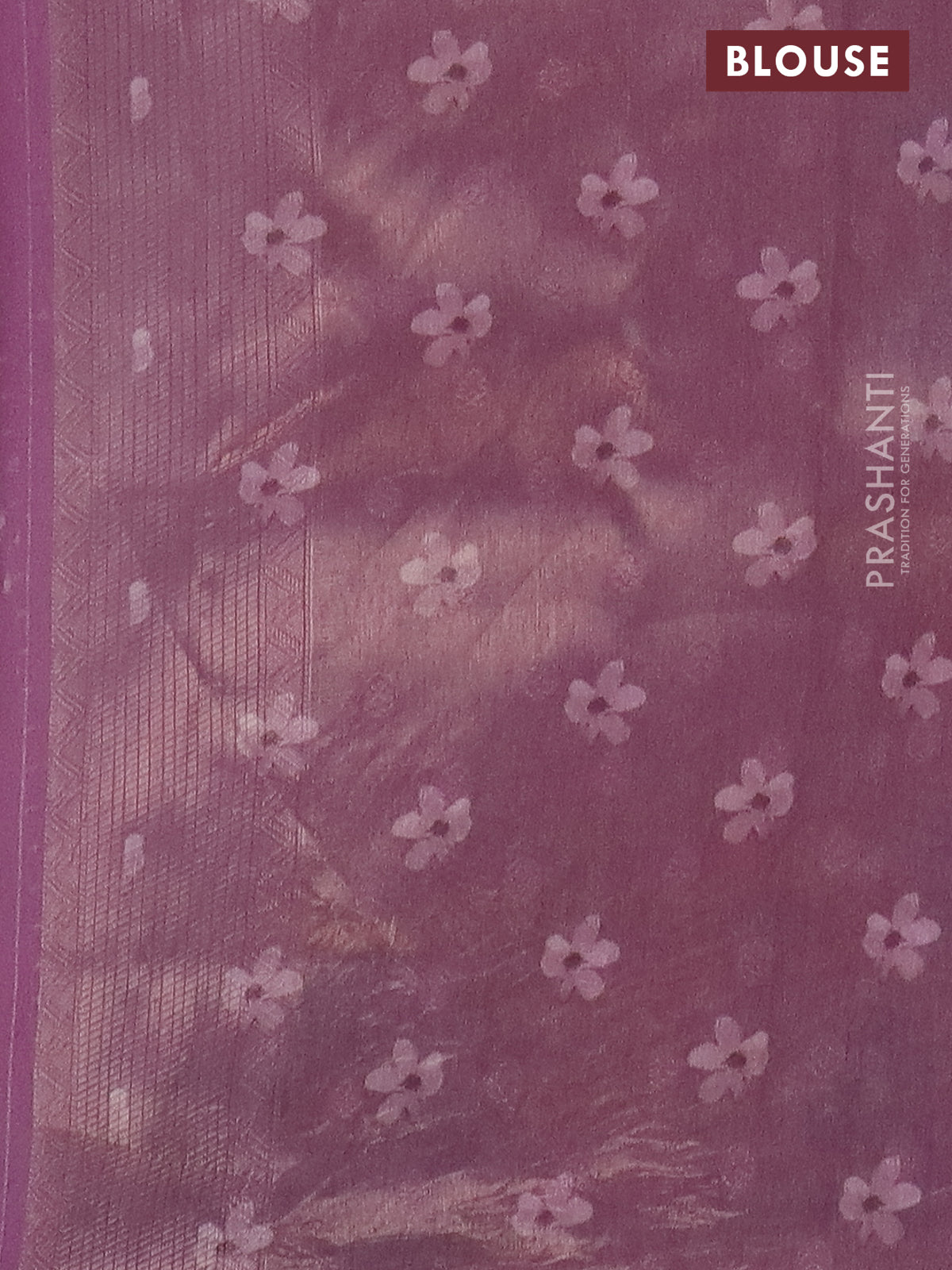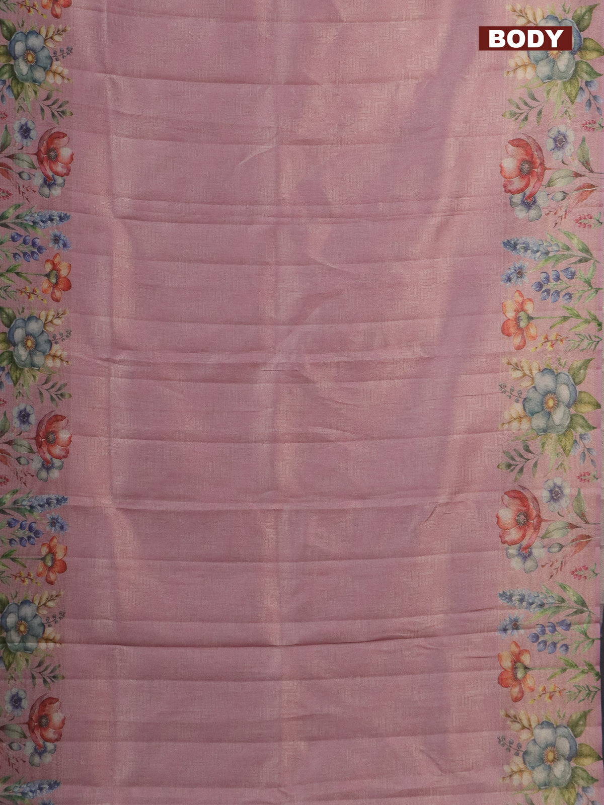 Tissue saree pastel pink with allover zari weaves and digital printed border