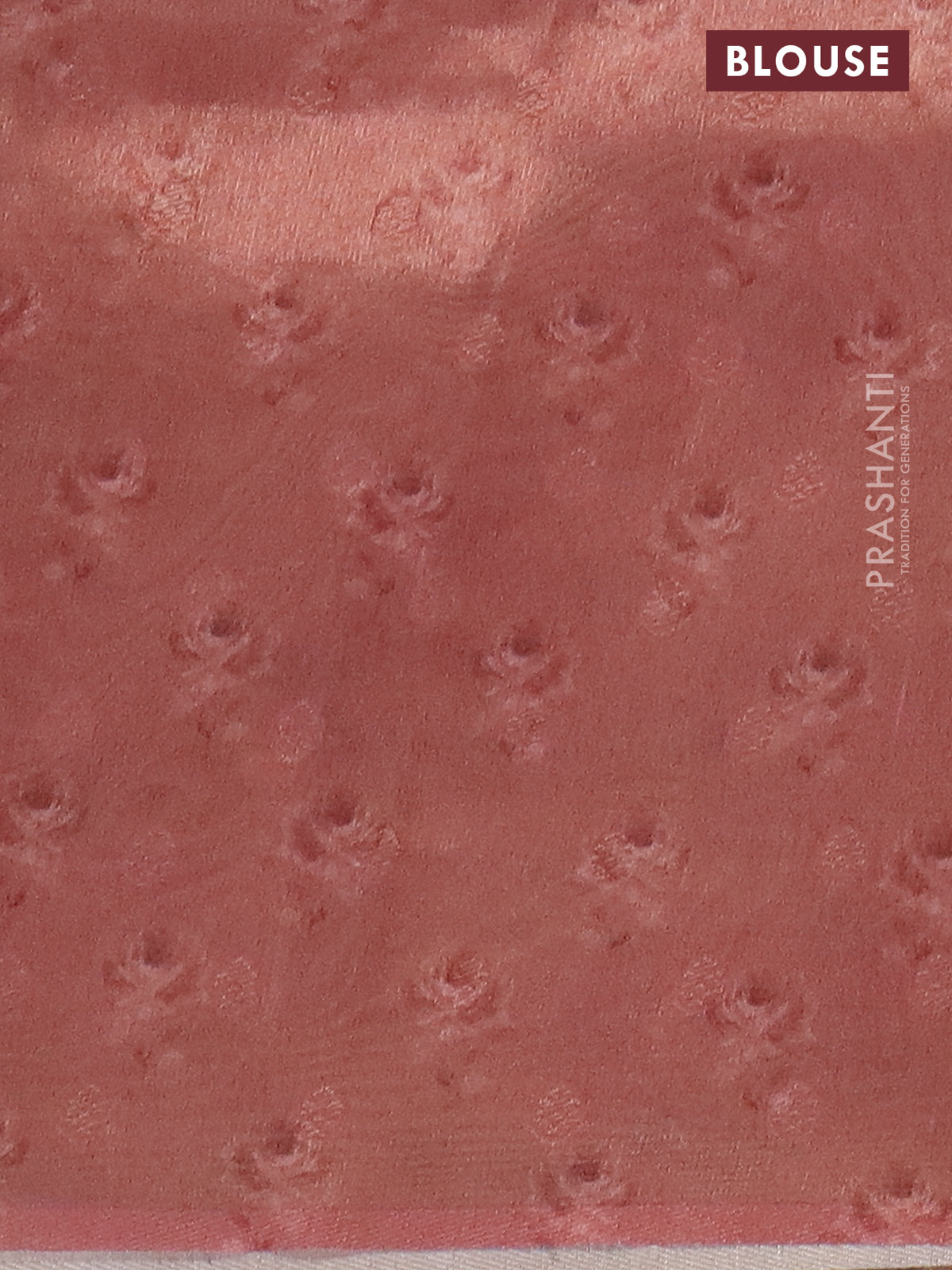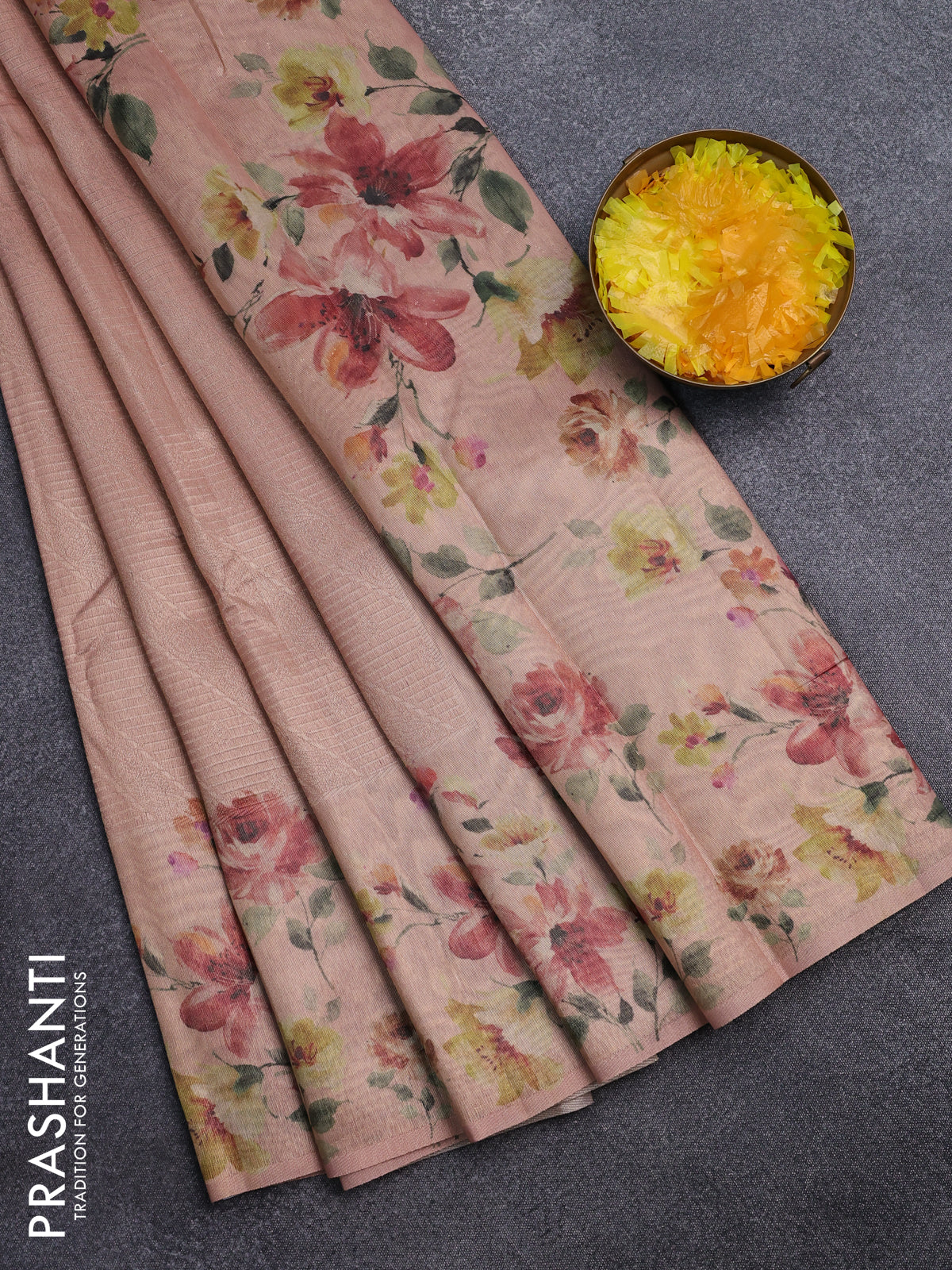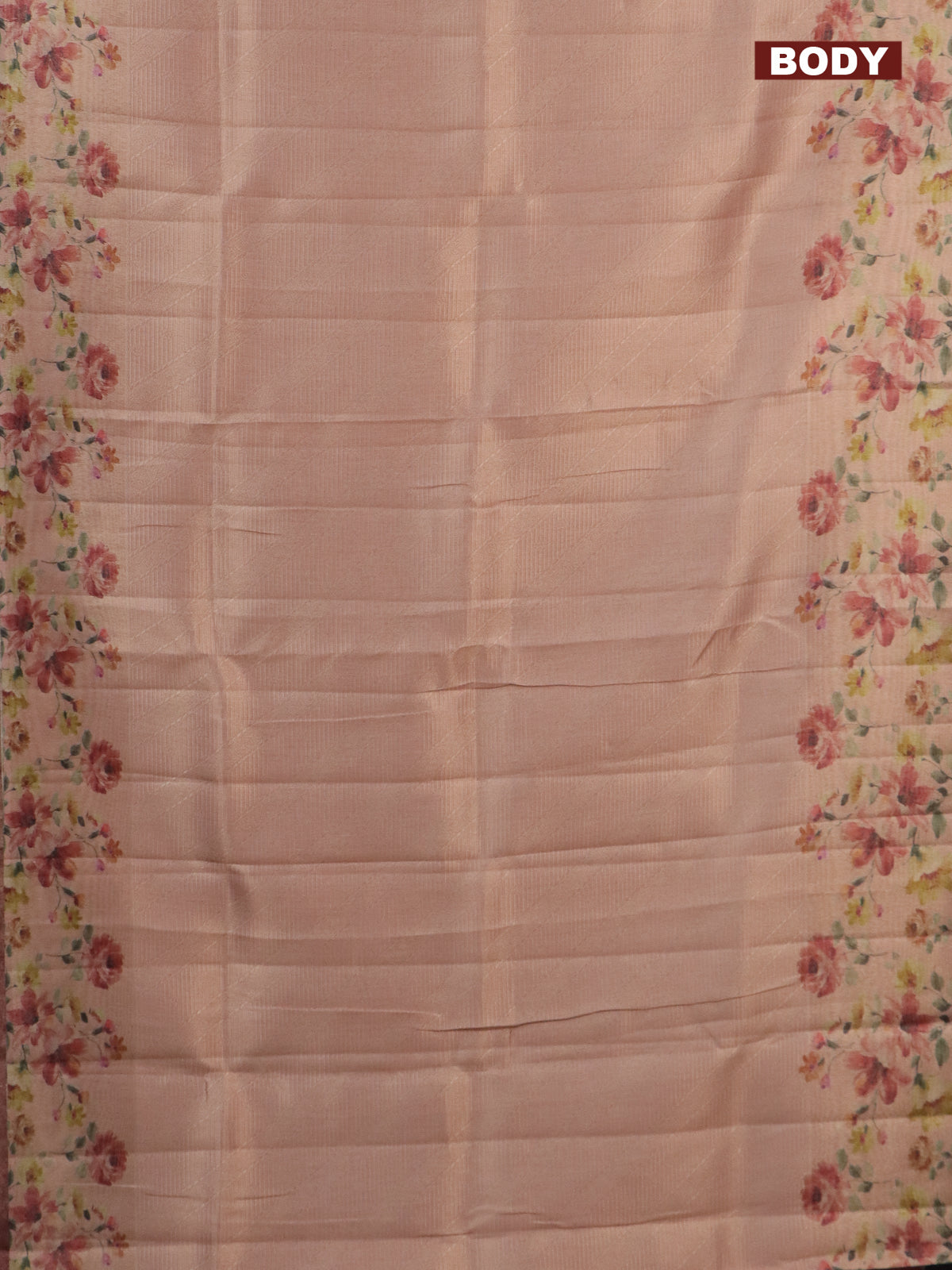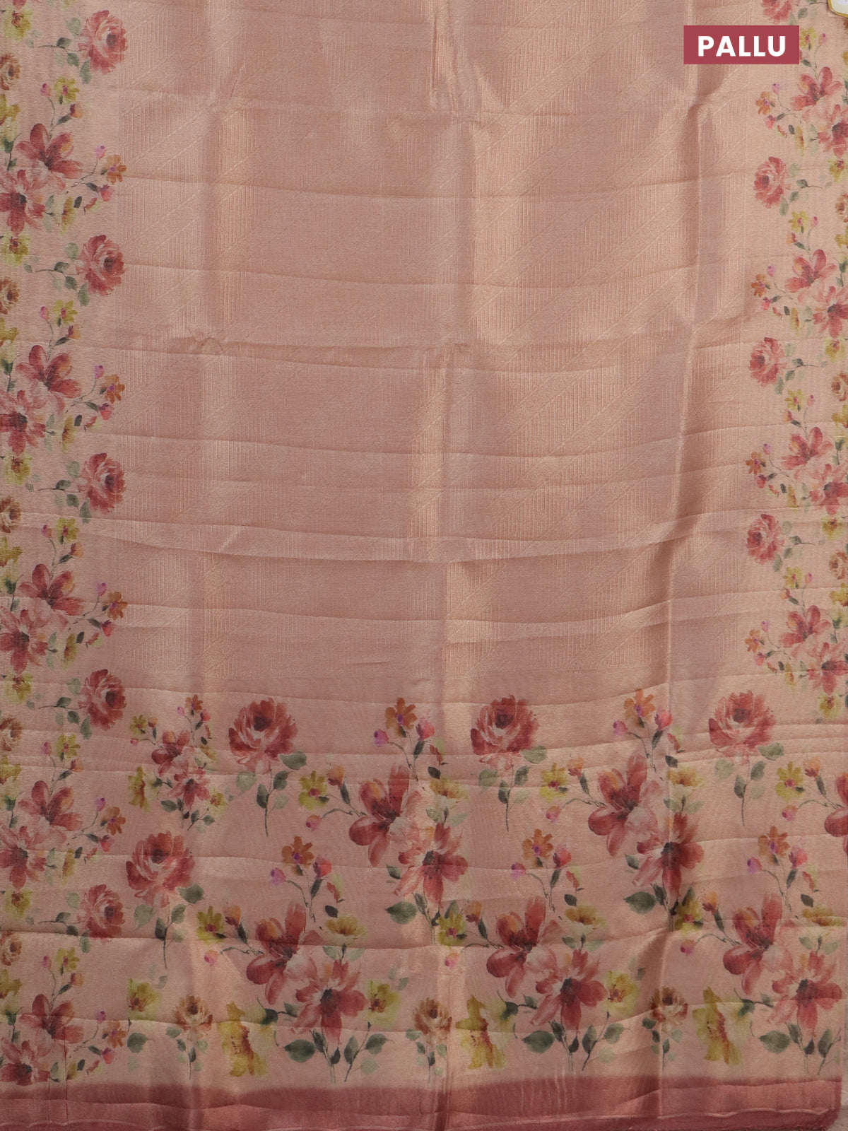 Tissue saree peach shade with allover zari weaves and floral digital printed border
