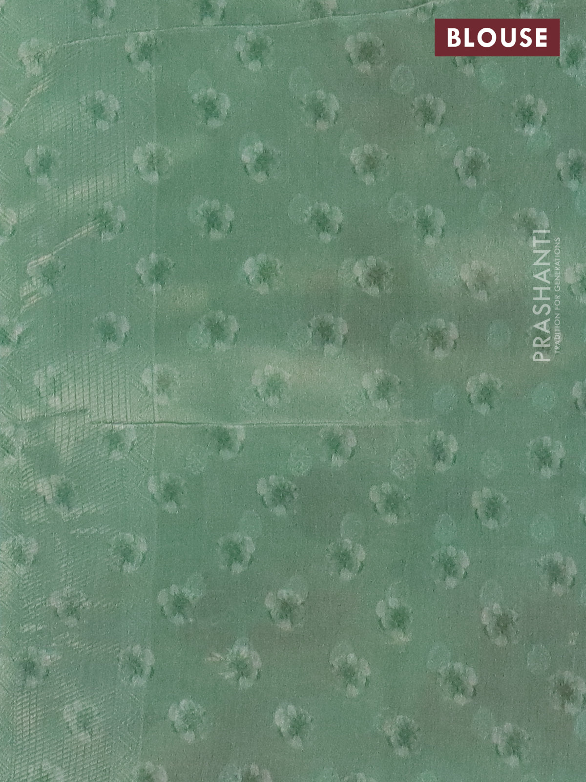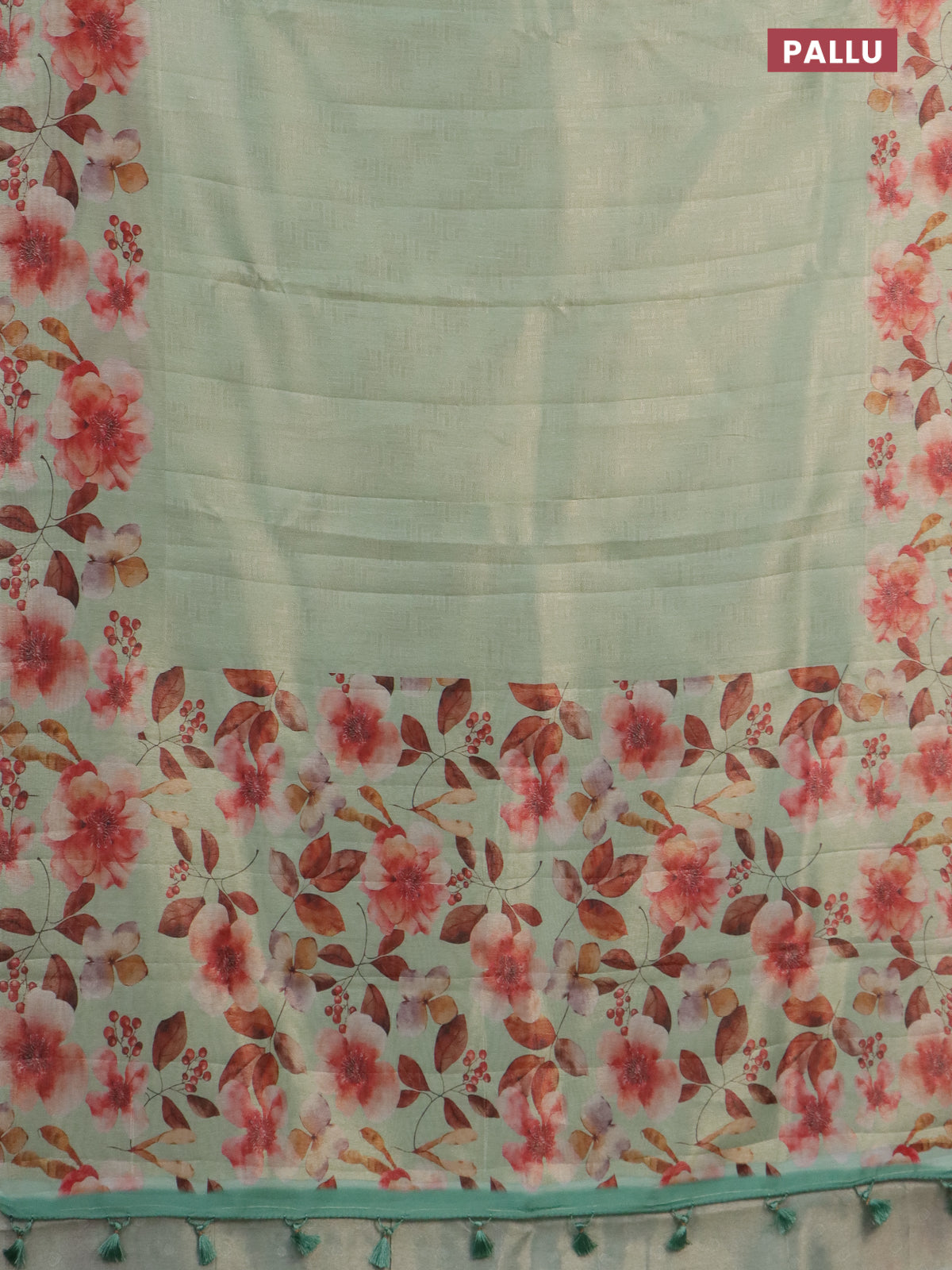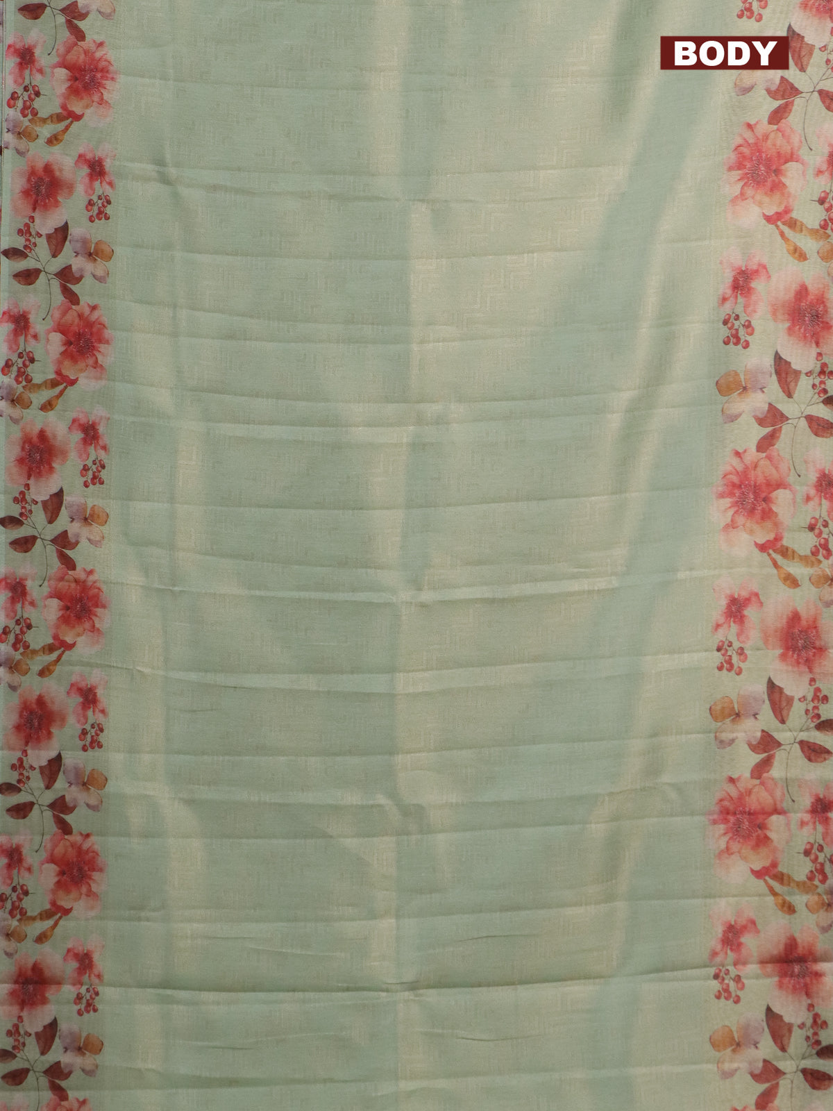 Tissue saree pista green with allover zari weaves and floral digital printed border
