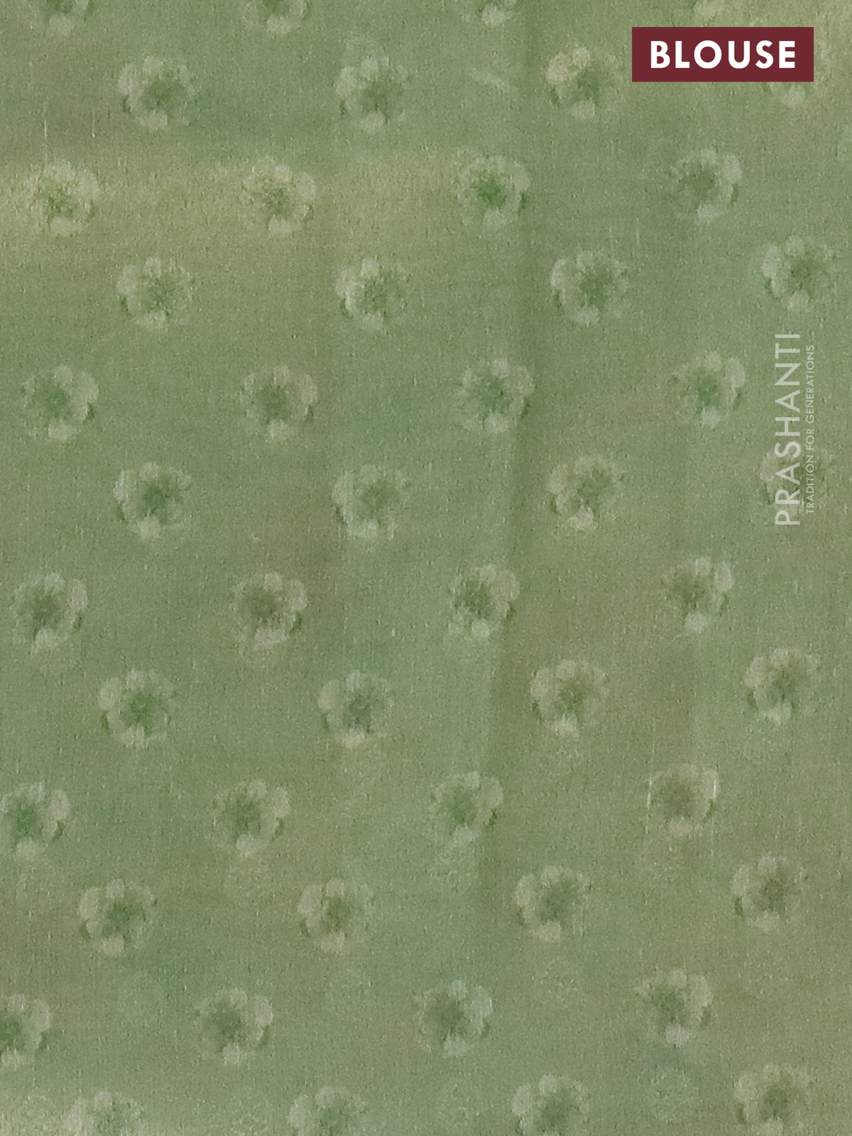 Tissue saree pista green with allover zari weaves and floral digital printed border