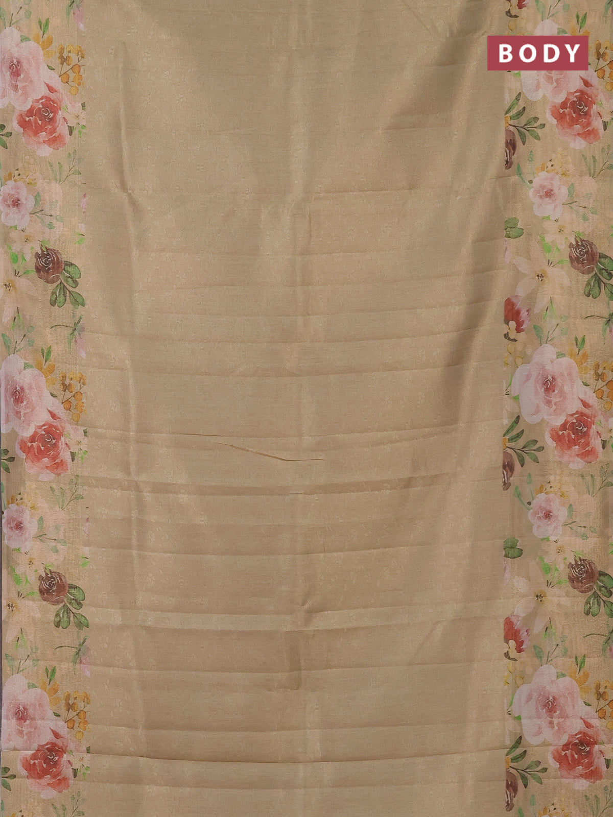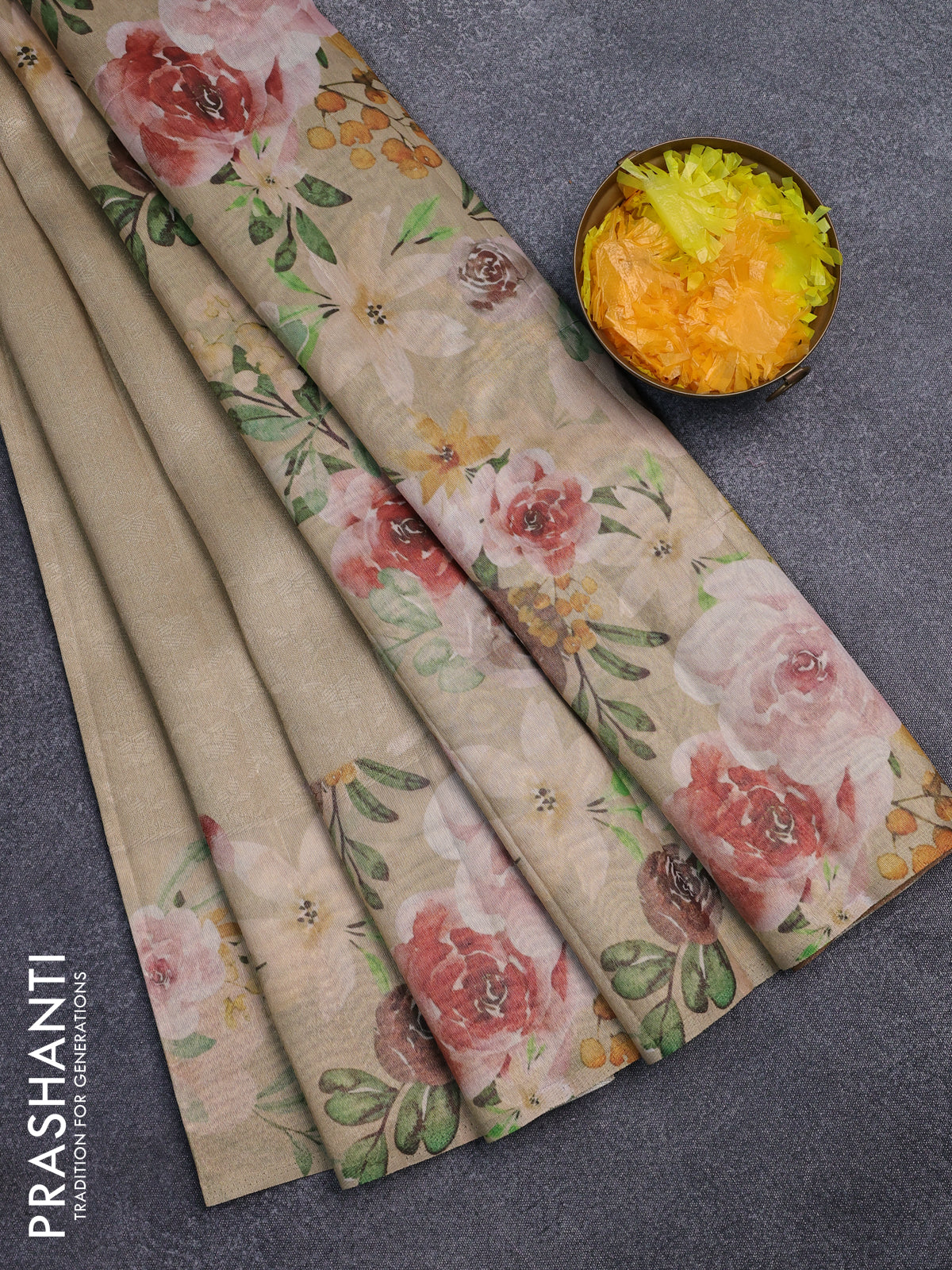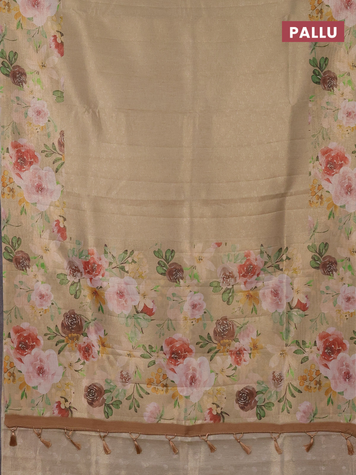 Tissue saree sandal with allover zari weaves and floral digital printed border