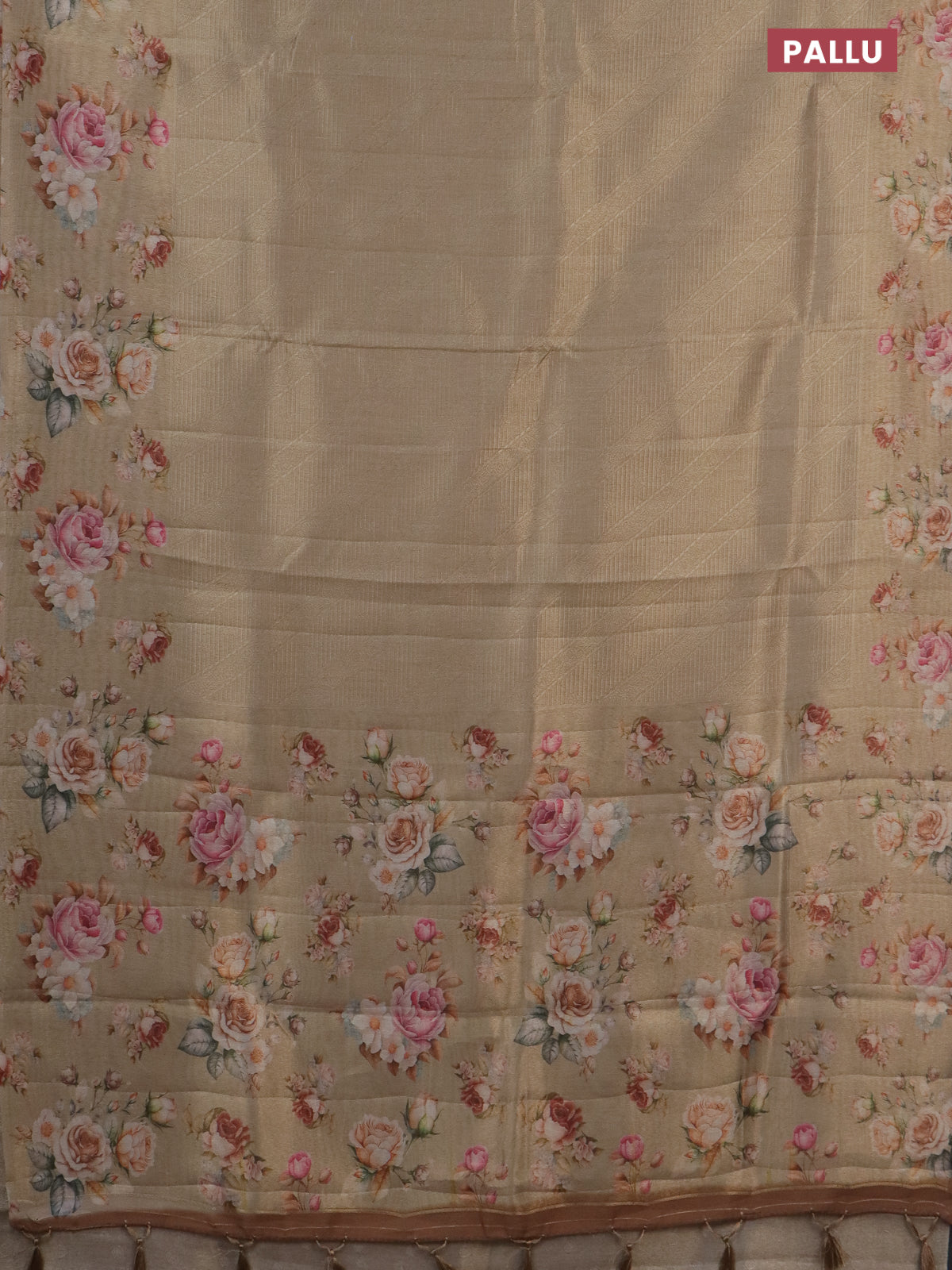 Tissue saree sandal with allover zari weaves and floral digital printed border