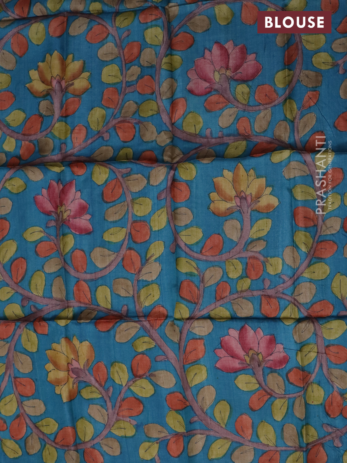 Tussar blouse piece cs blue with kalamkari hand painted prints
