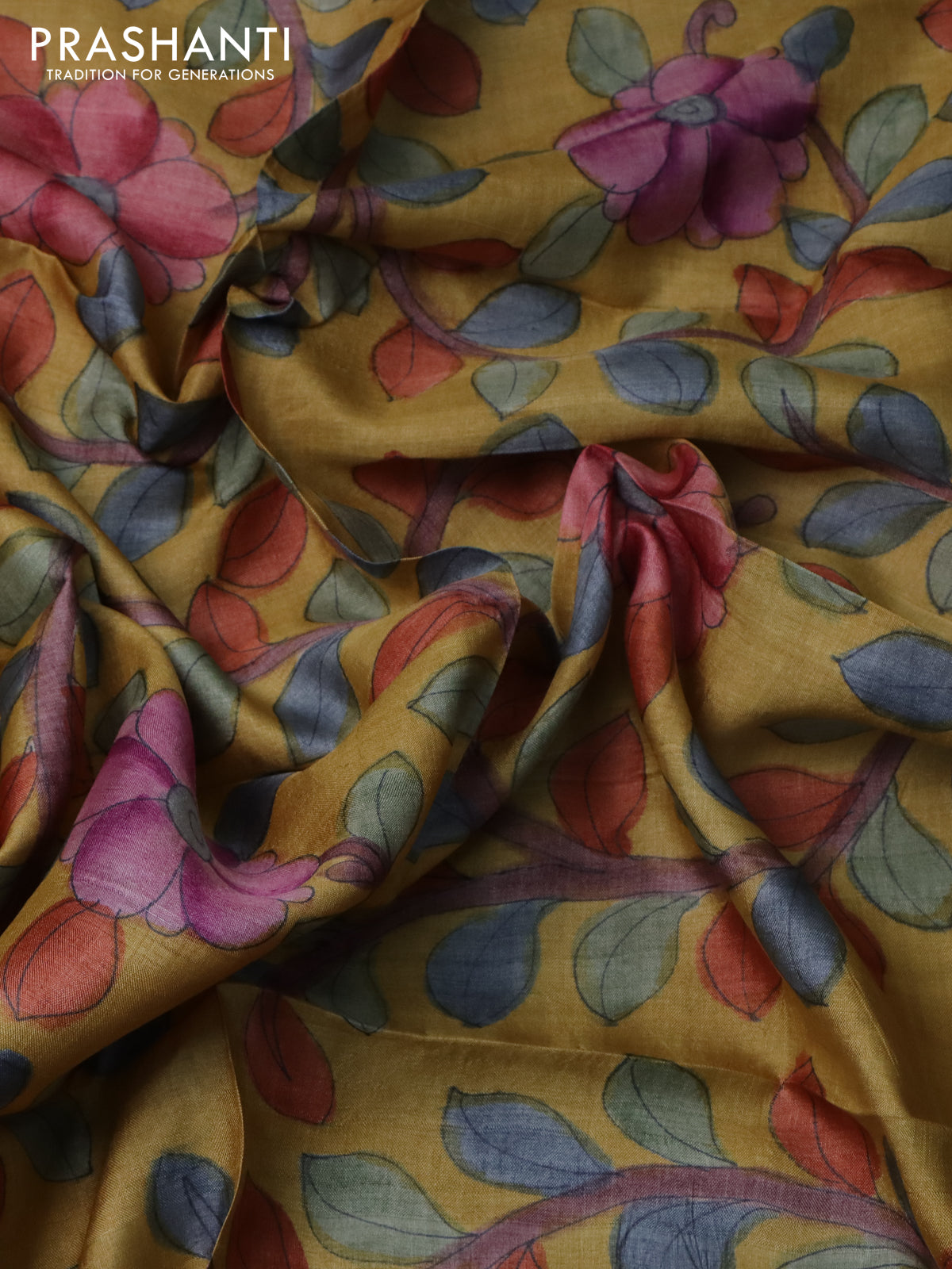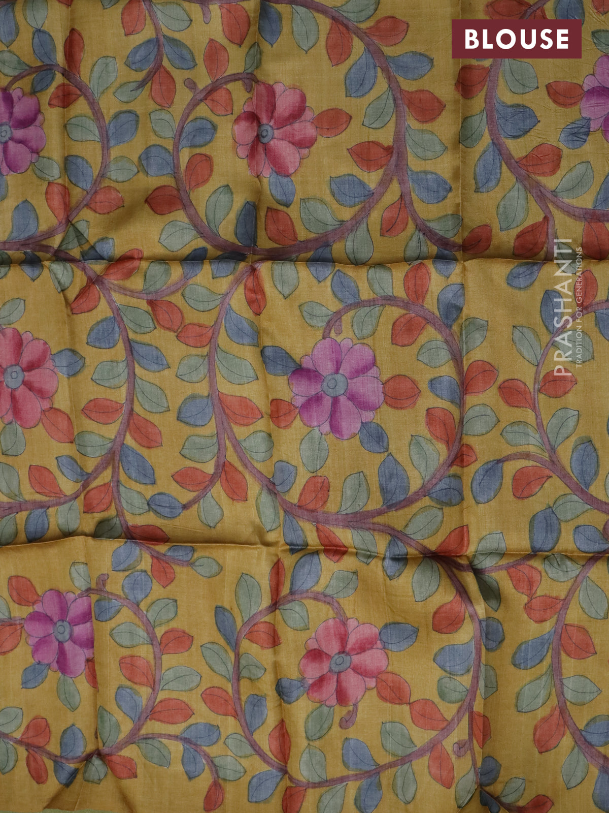 Tussar blouse piece yellow with kalamkari hand painted prints