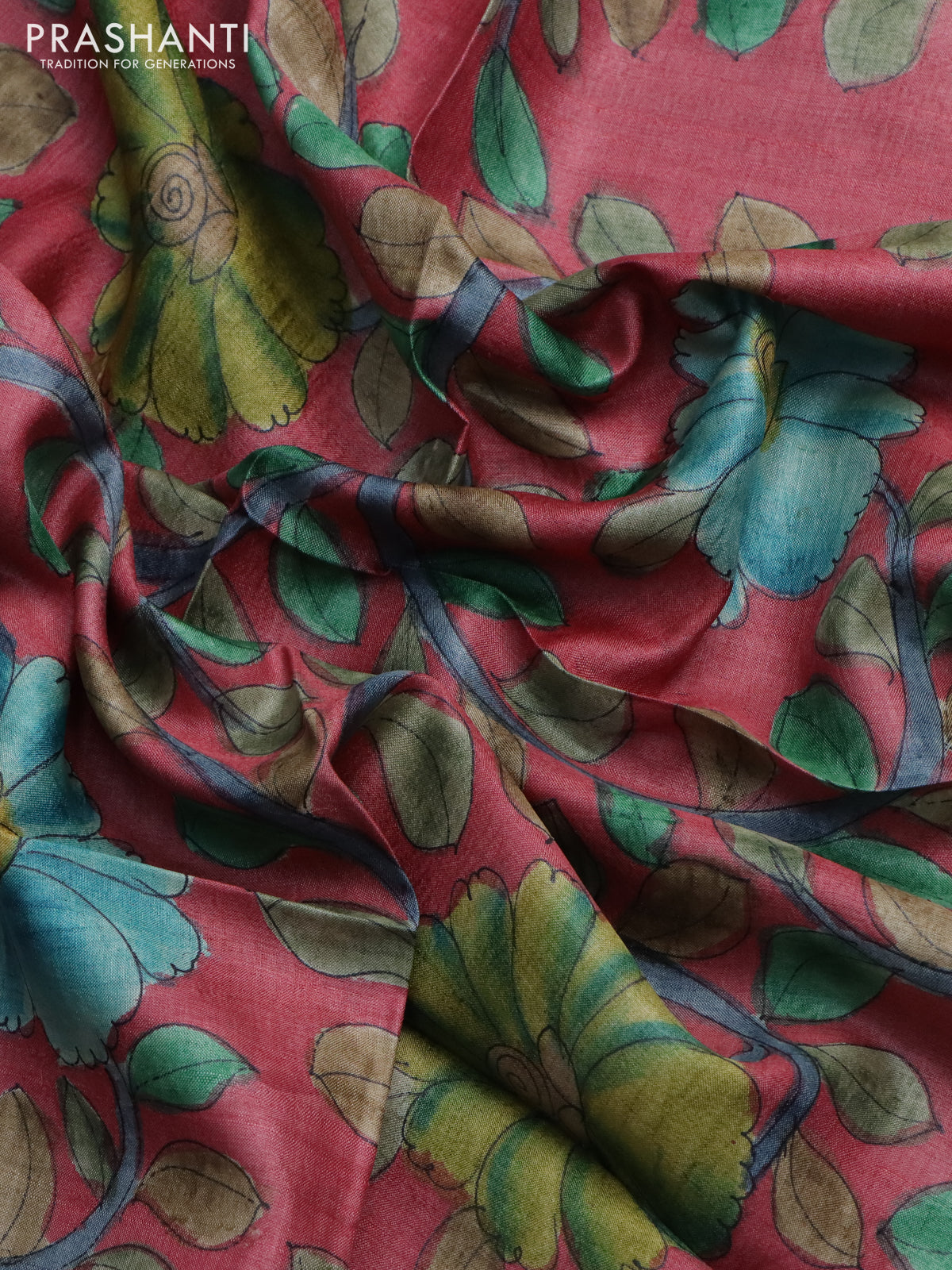 Tussar hand painted blouse piece maroon with allover kalamkari prints