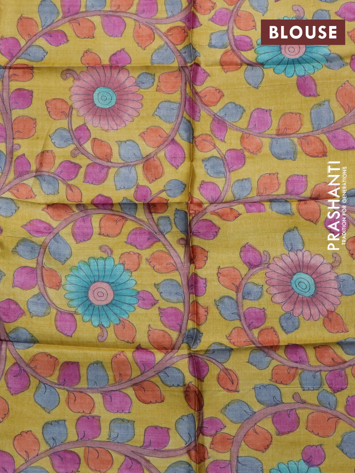 Tussar hand painted blouse piece mustard yellow with kalamkari prints