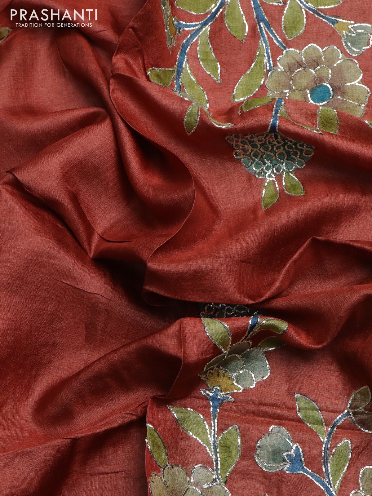 Tussar hand painted blouse piece orange with allover kalamkari prints & pita work