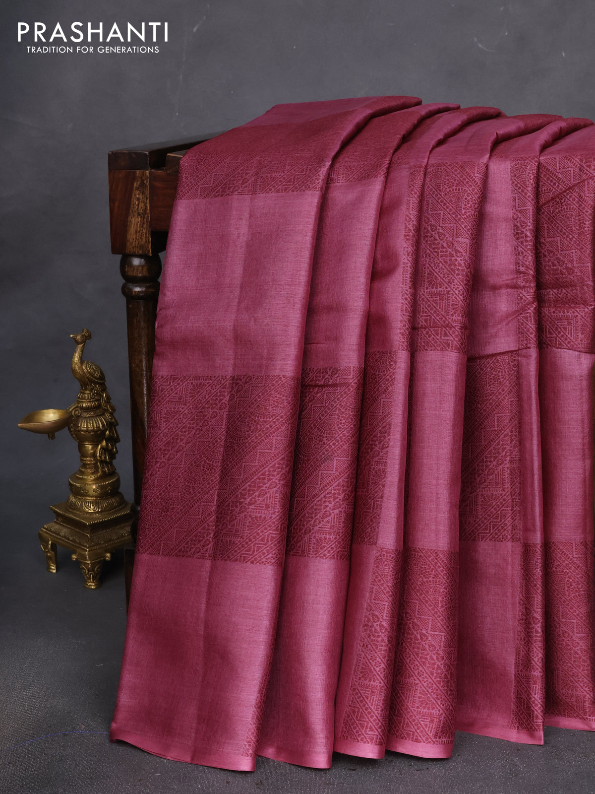 Pure tussar silk saree magenta pink with thread woven box type buttas in borderless style