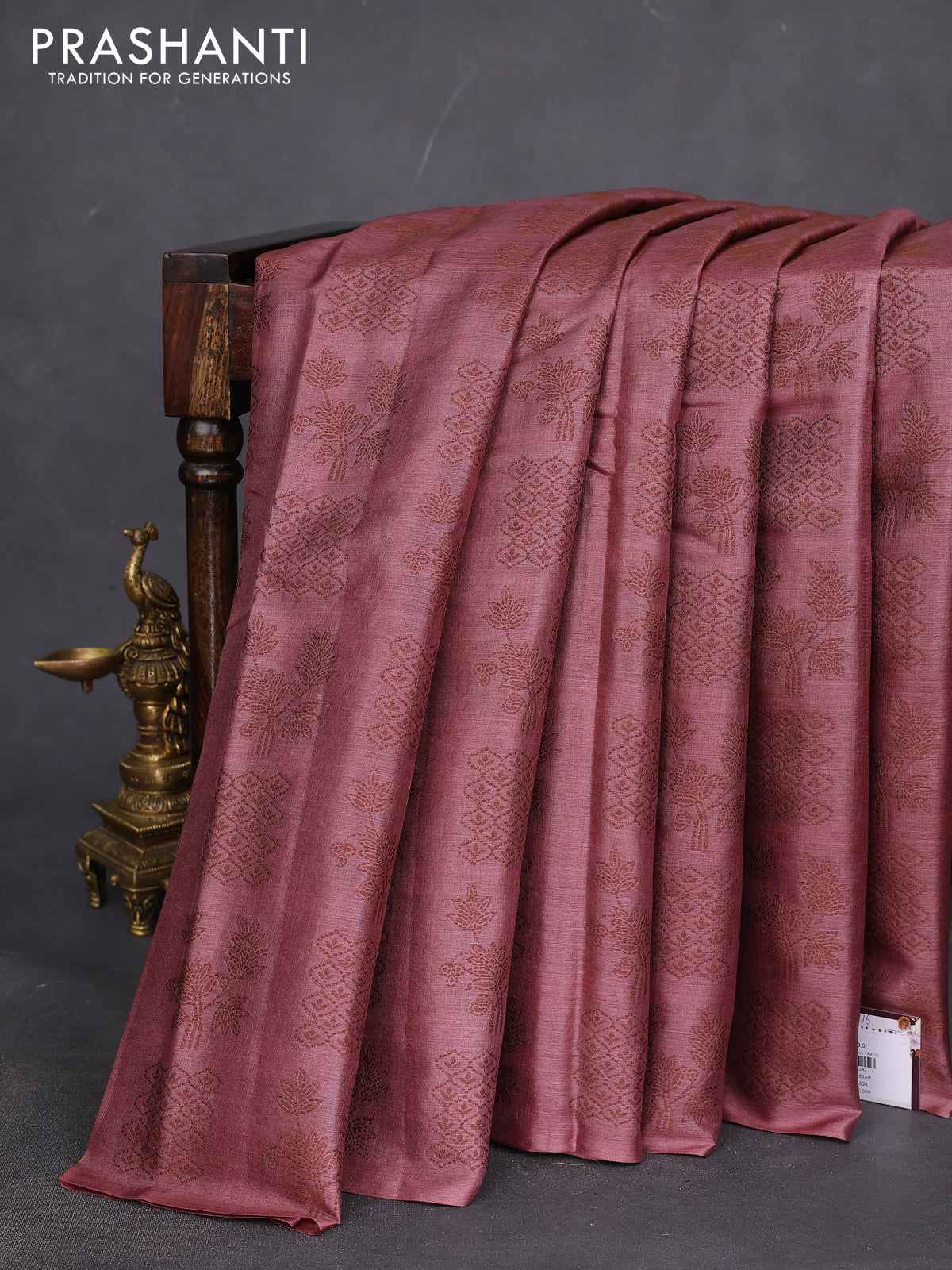 Pure tussar silk saree pastel maroon with allover thread woven buttas in borderless style