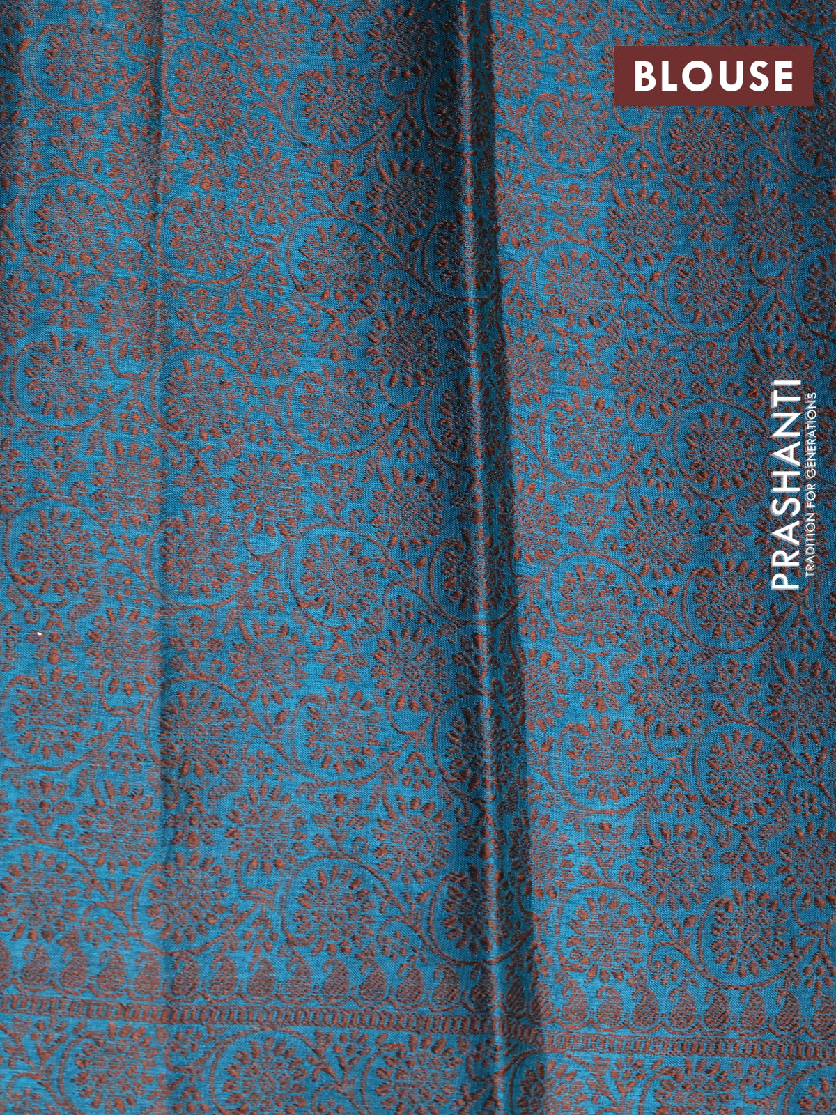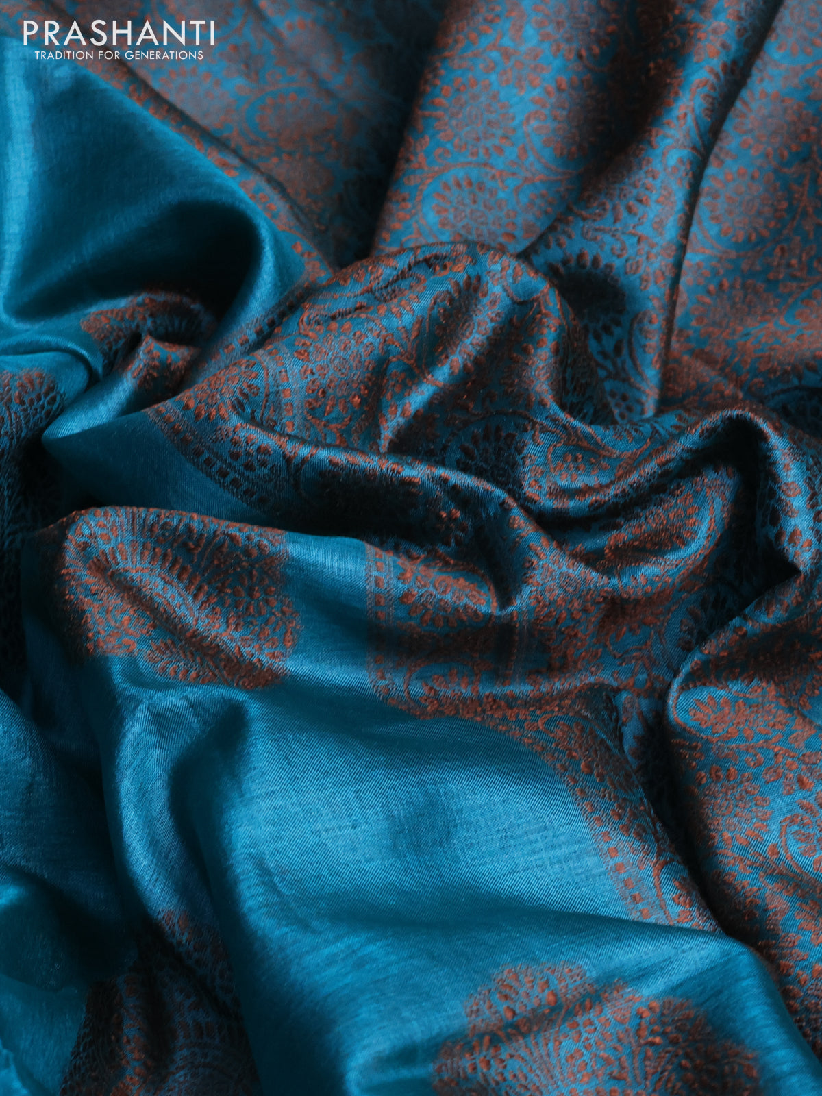 Pure tussar silk saree teal blue with woven buttas and woven border
