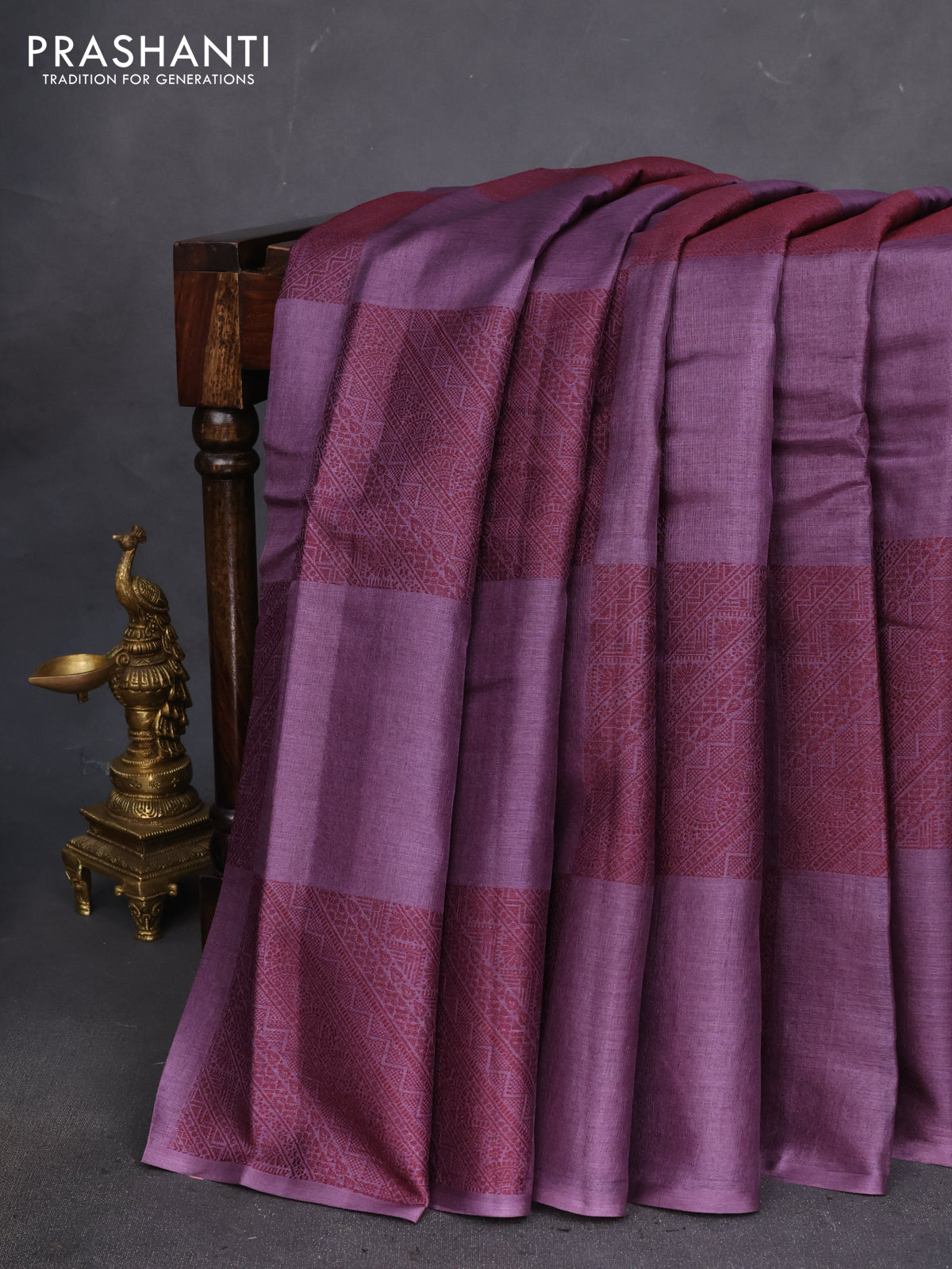 Pure tussar silk saree violet shade with thread woven box type buttas in borderless style
