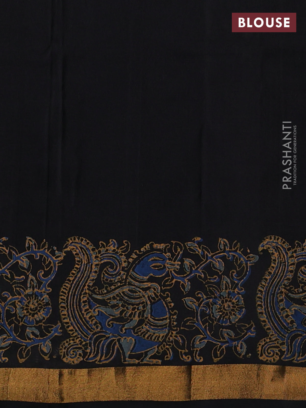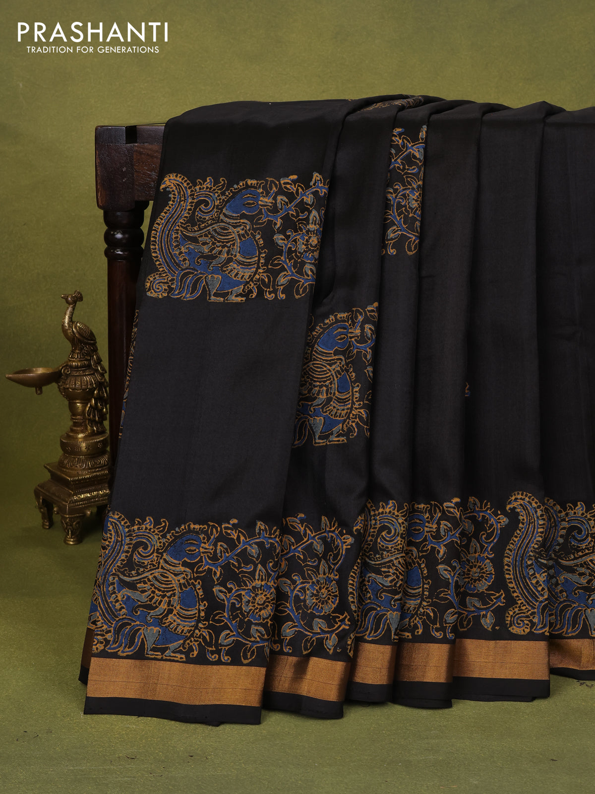 Uppada block printed silk saree black with annam butta prints and annam printed zari woven border