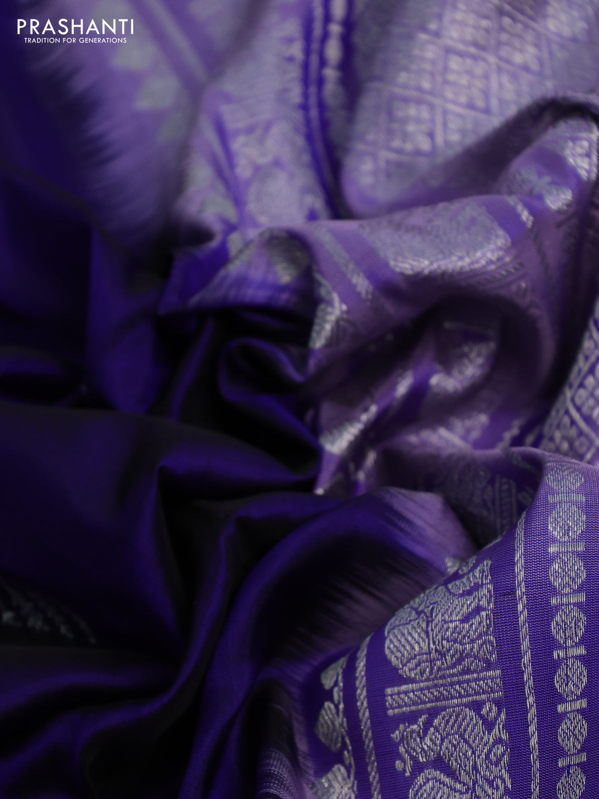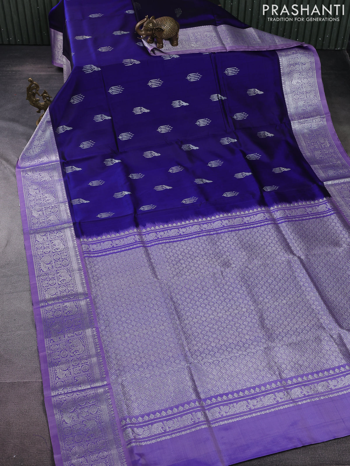 Venkatagiri silk saree blue and lavender with silver zari woven buttas and silver zari woven border