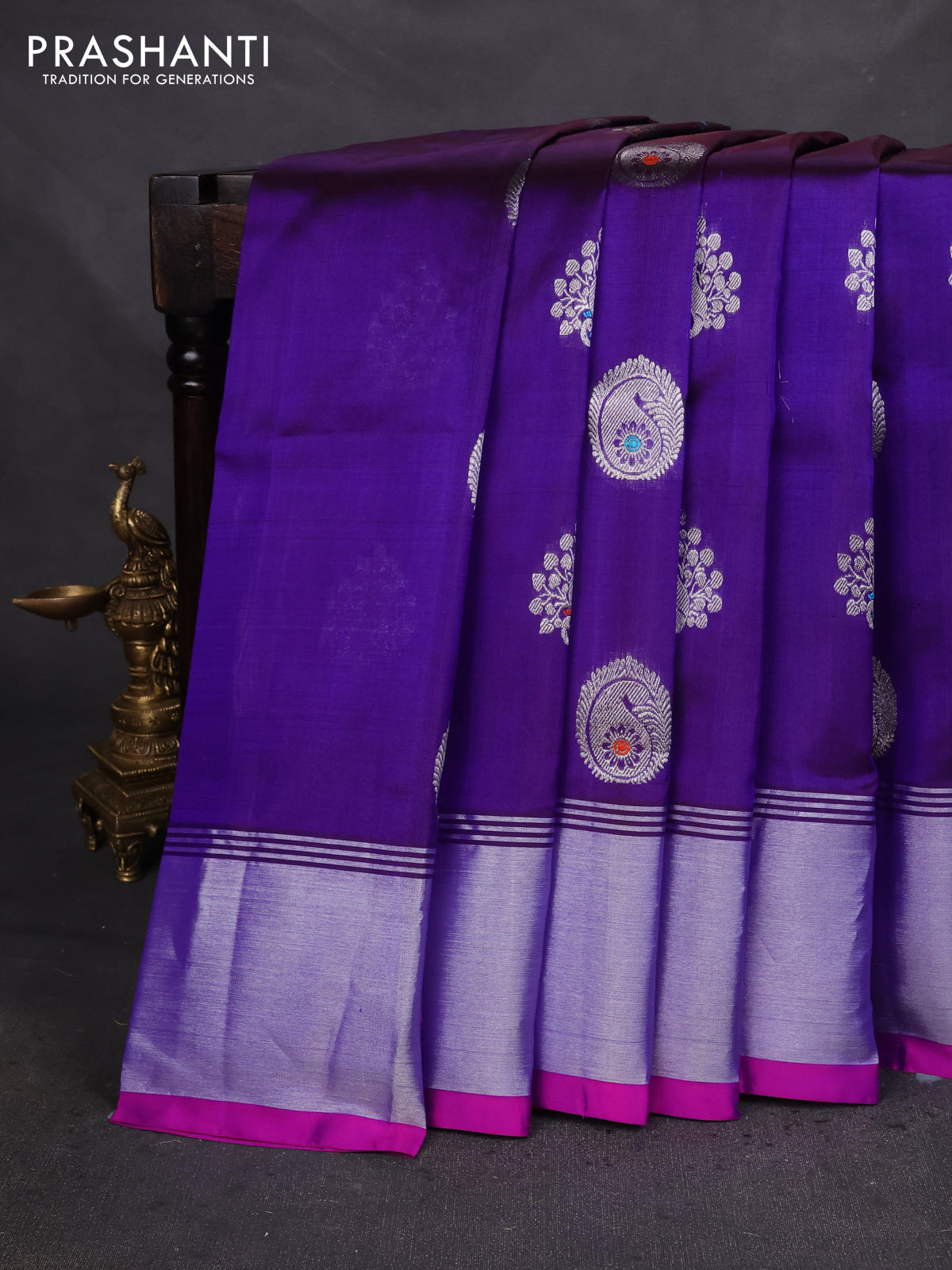 Venkatagiri silk saree blue and pink with silver zari woven buttas and silver zari woven border