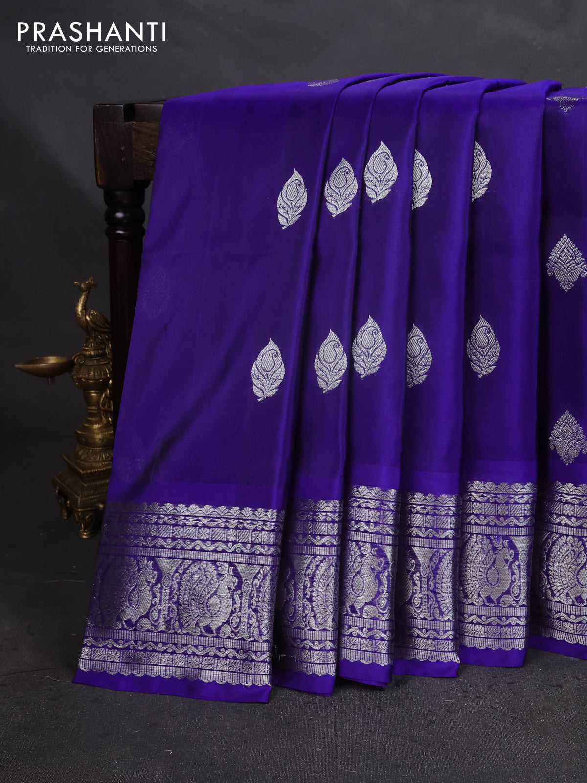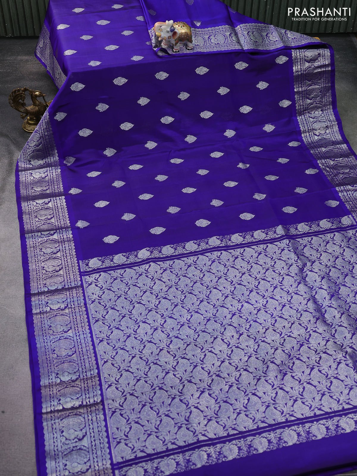 Venkatagiri silk saree blue with silver zari woven buttas and silver zari woven border