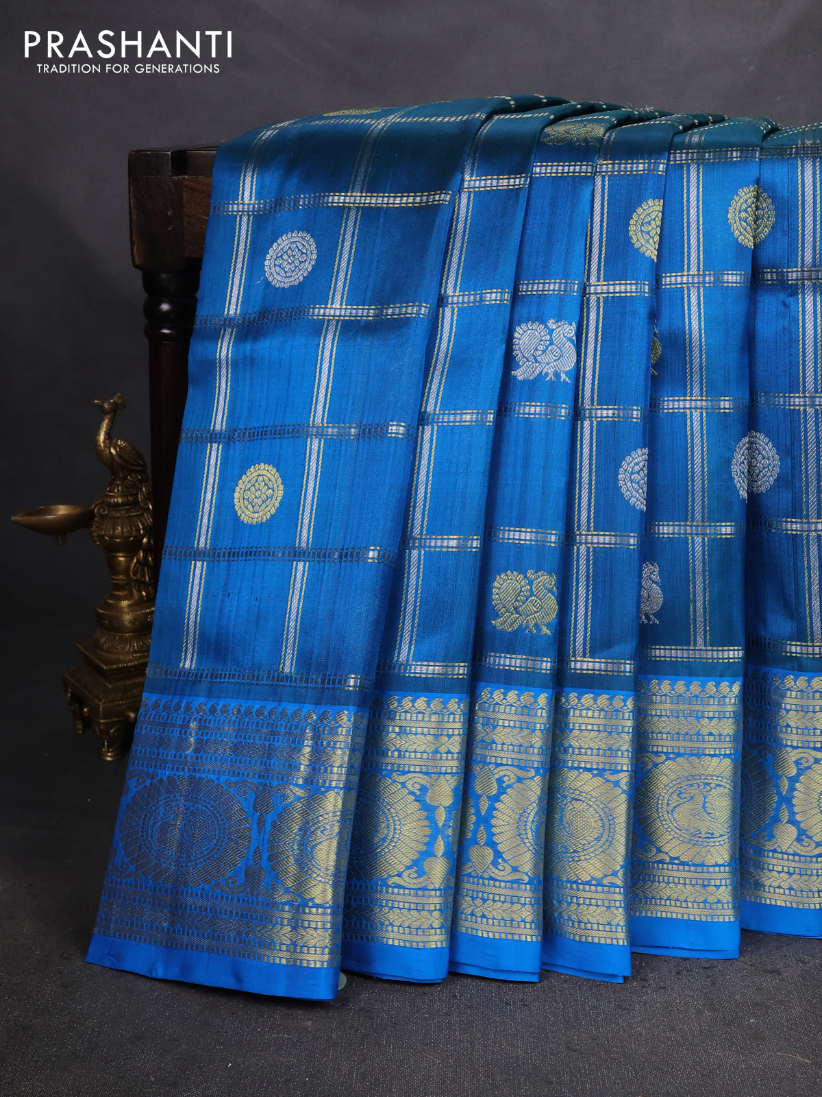 Venkatagiri silk saree cs blue with allover silver zari checks & buttas and zari woven border