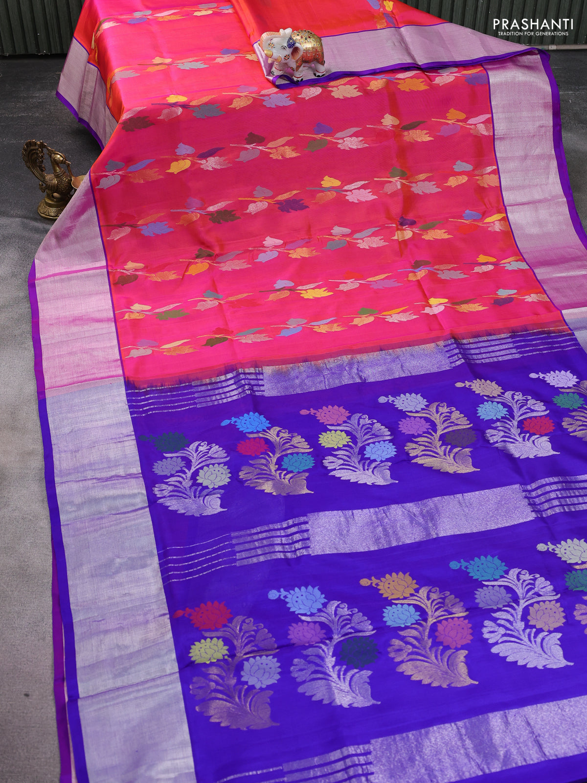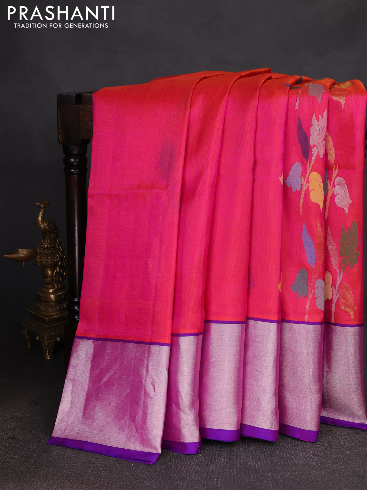 Venkatagiri silk saree dual shade of pinkish orange and blue with allover jamdhani design weaving and silver zari woven border