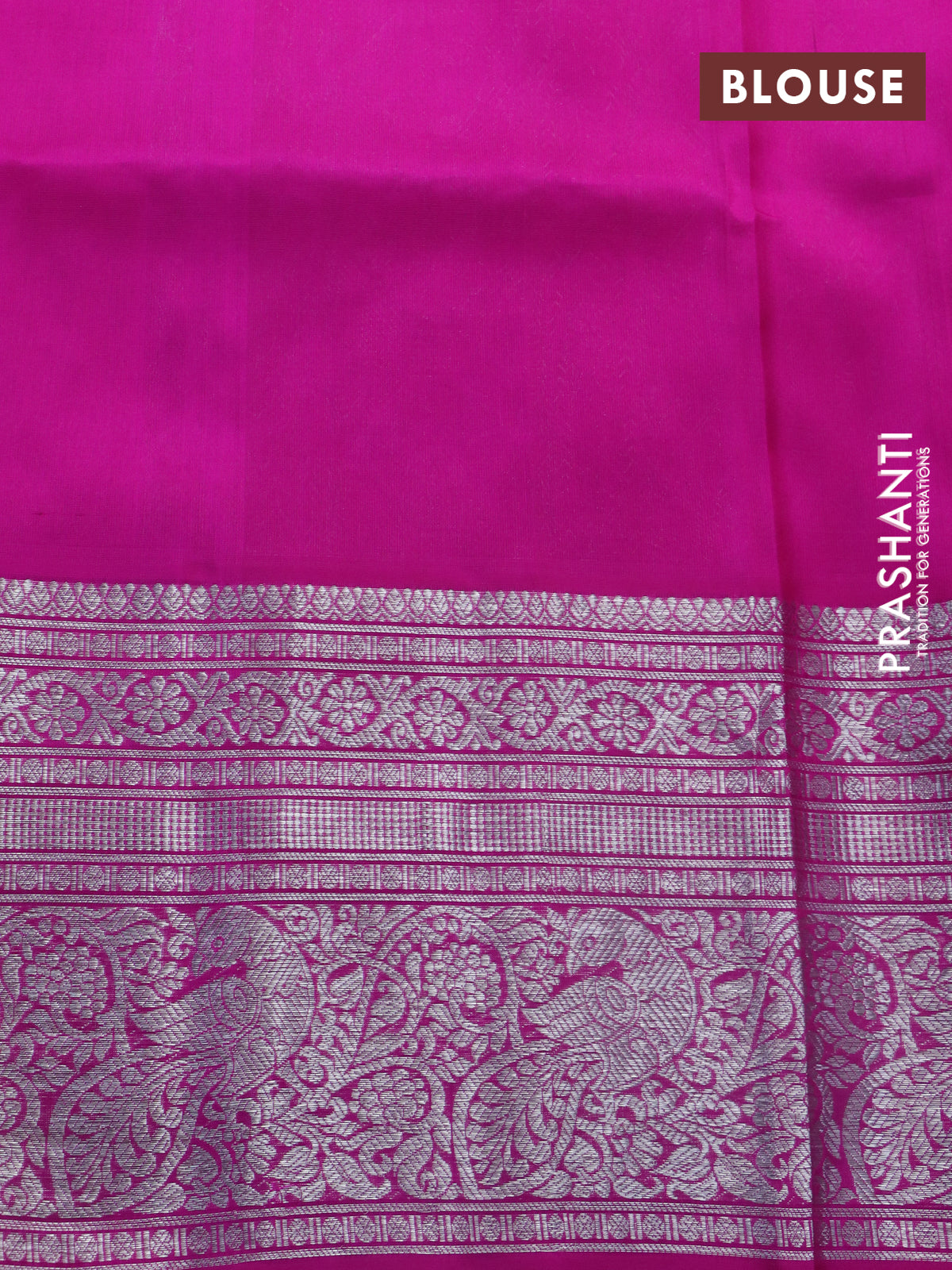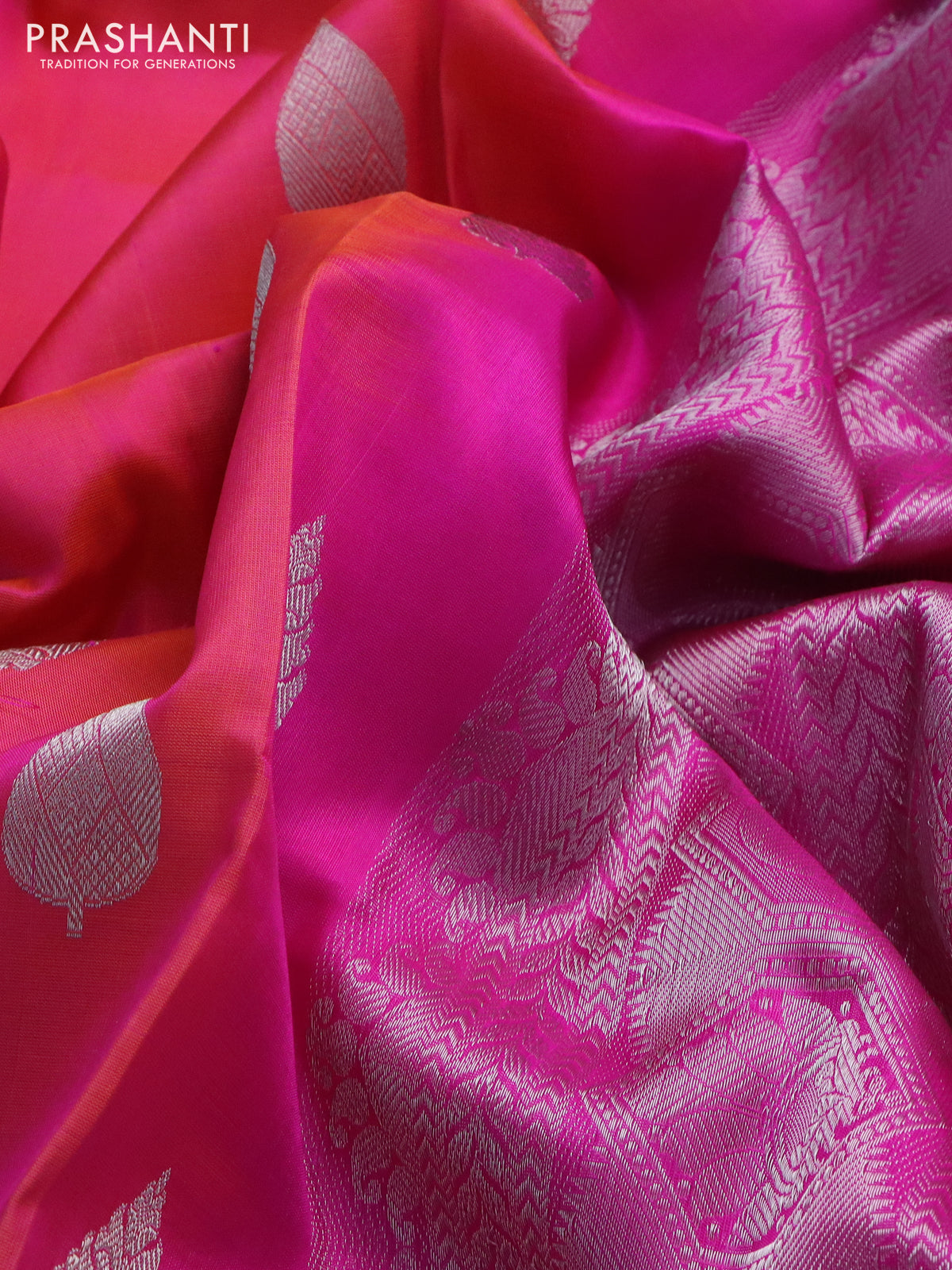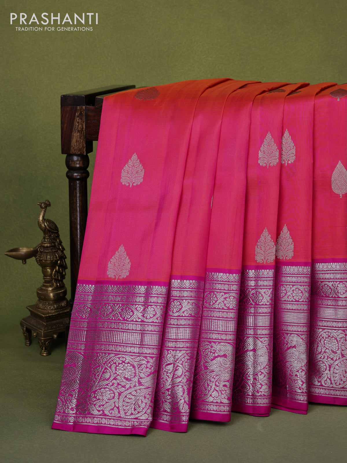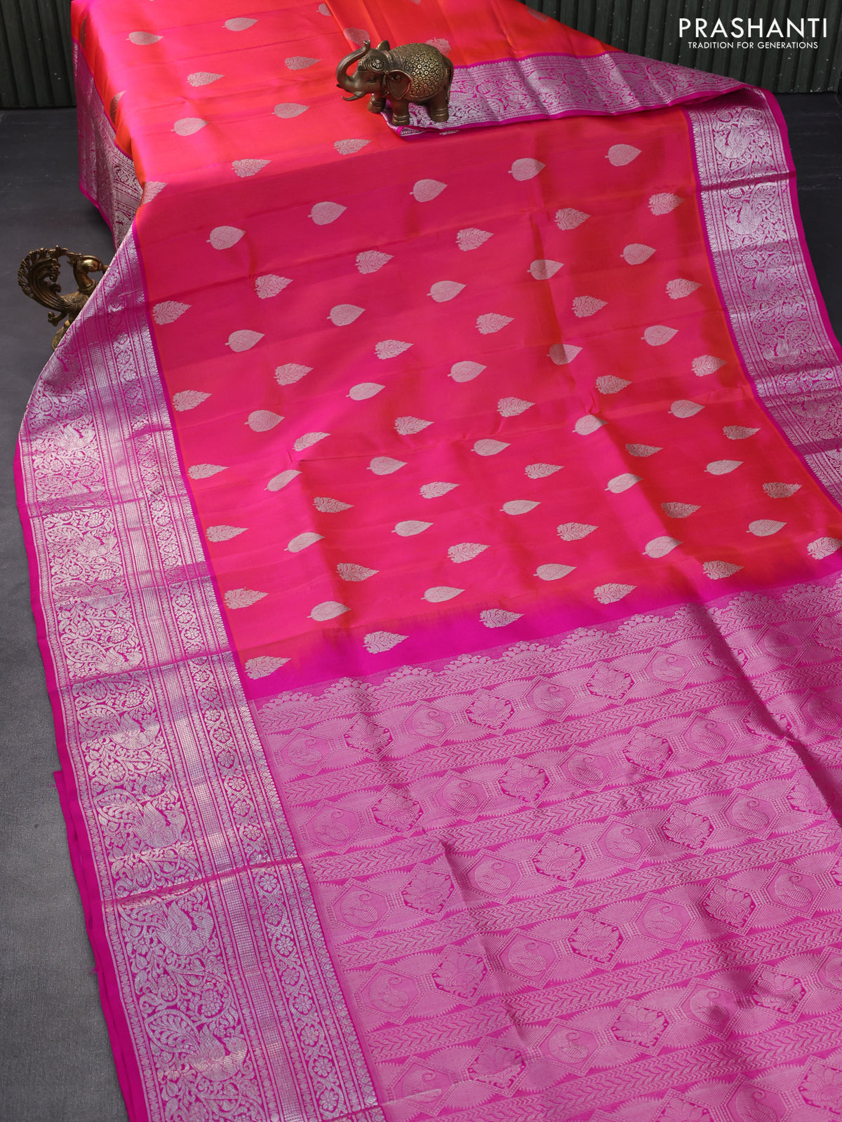 Venkatagiri silk saree dual shade of pinkish orange and pink with silver zari woven buttas and long silver zari woven border