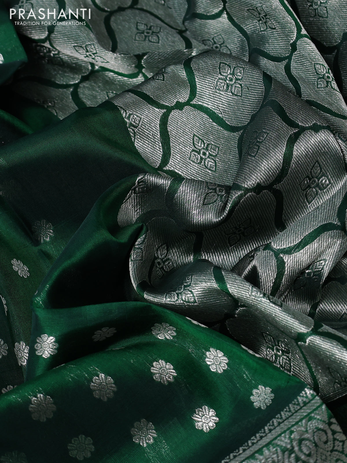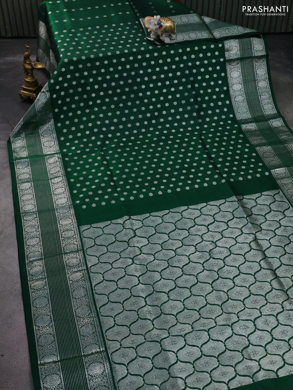 Venkatagiri silk saree green with allover silver zari woven buttas and long silver zari woven border