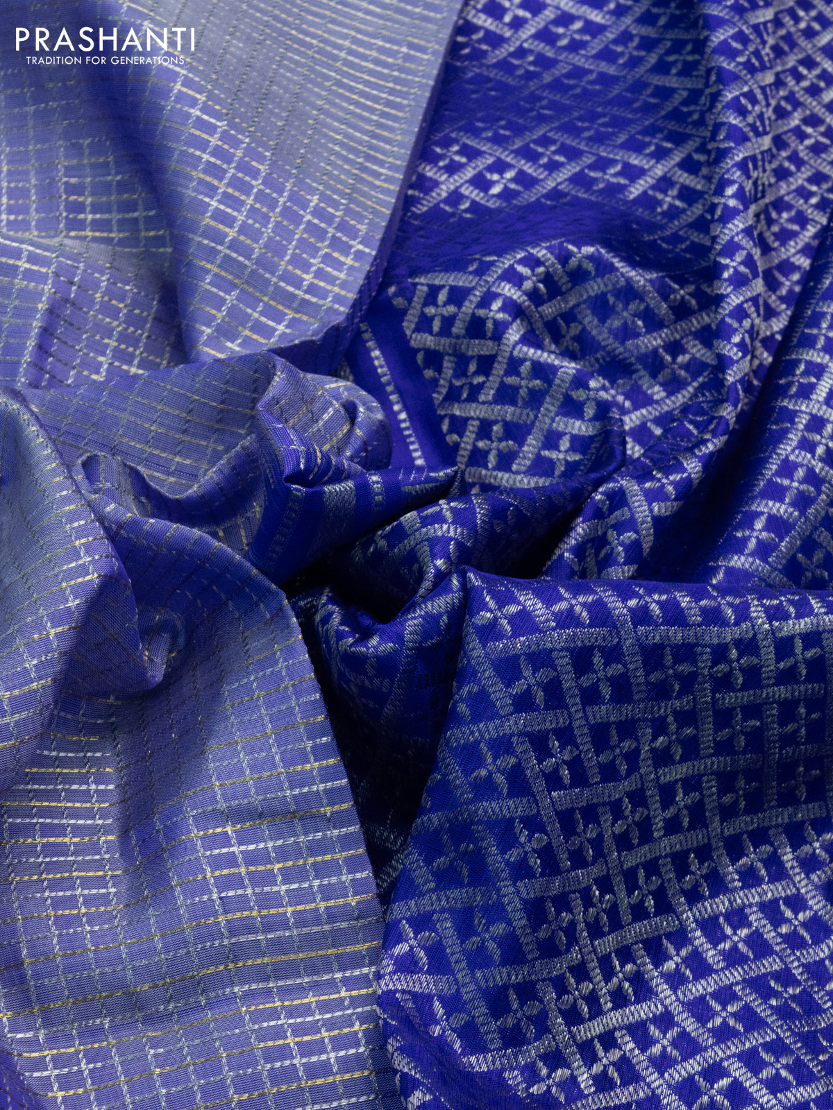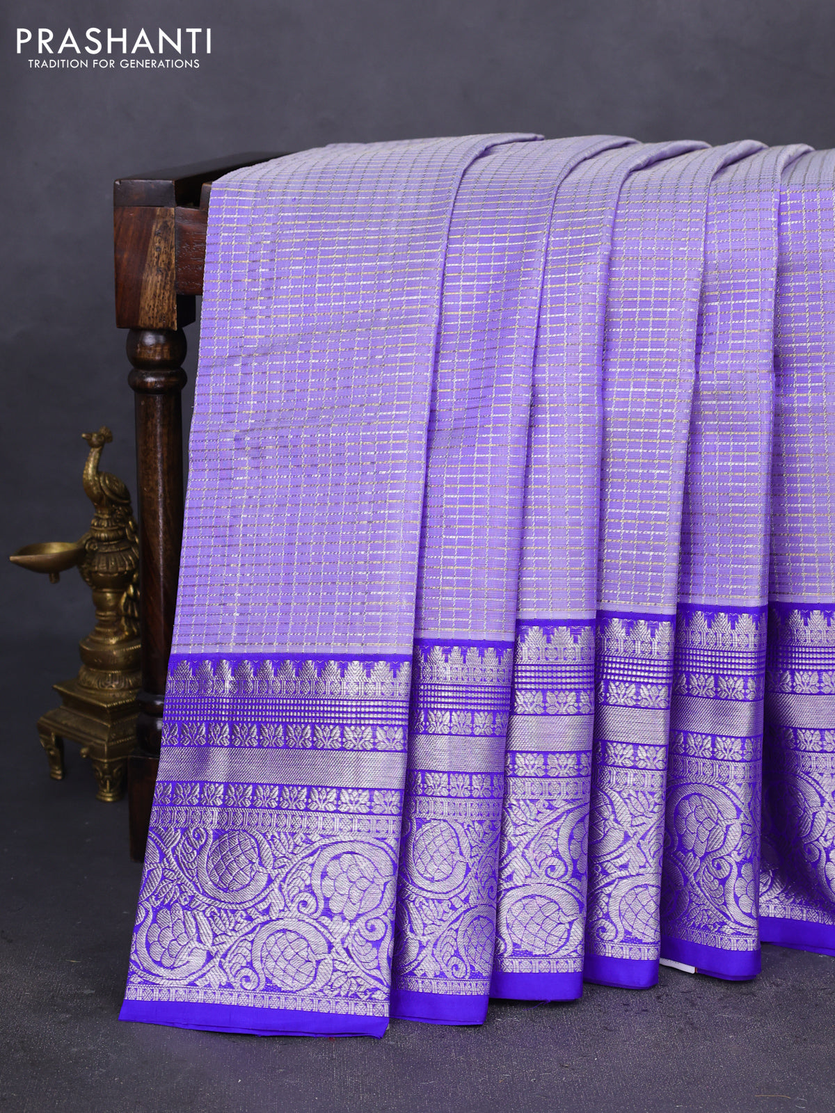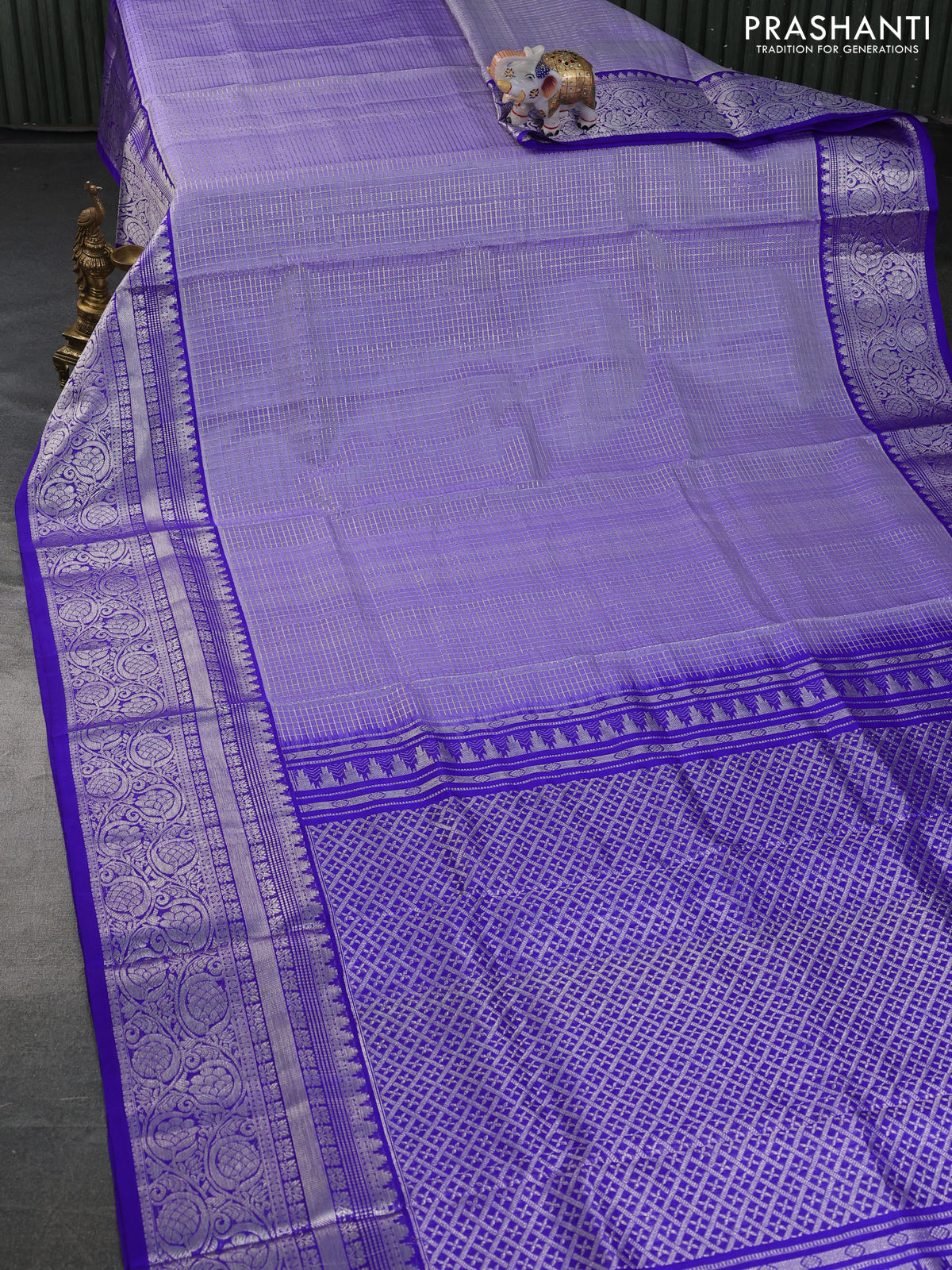 Venkatagiri silk saree lavender and blue with allover silver & gold zari checked pattern and long rich zari woven border