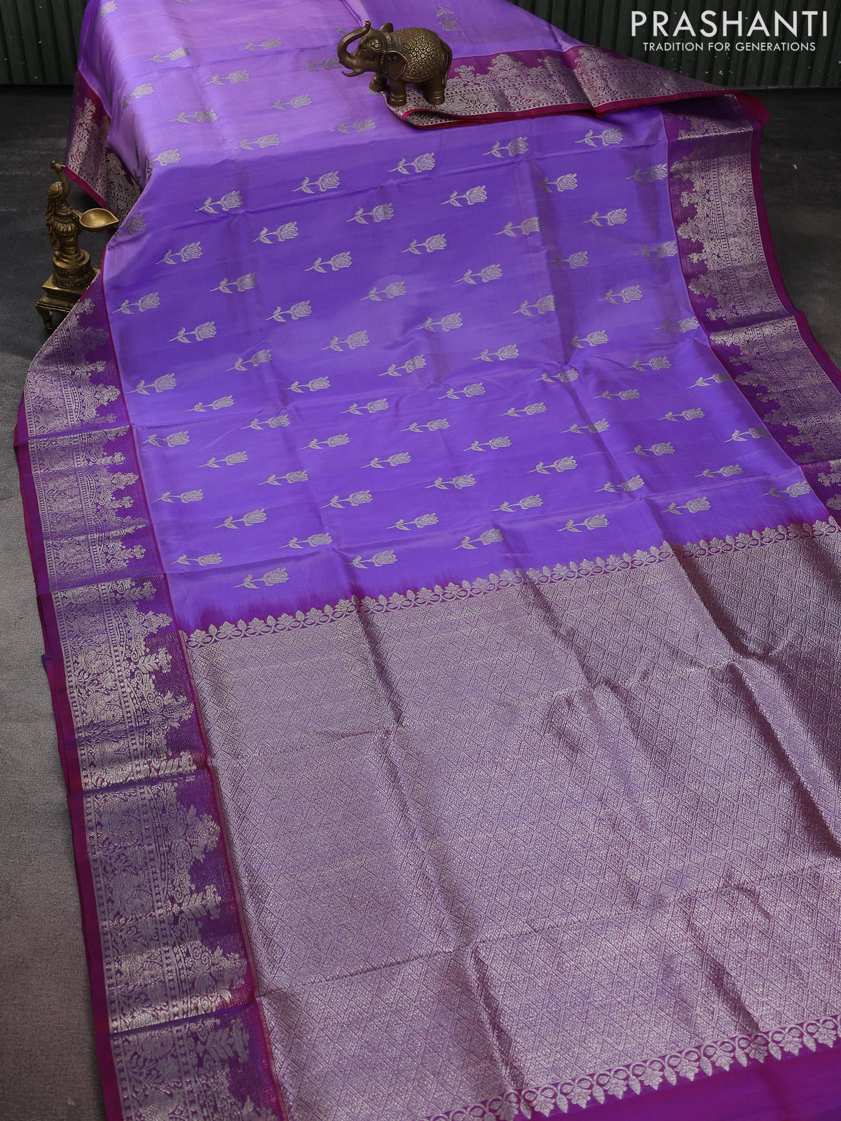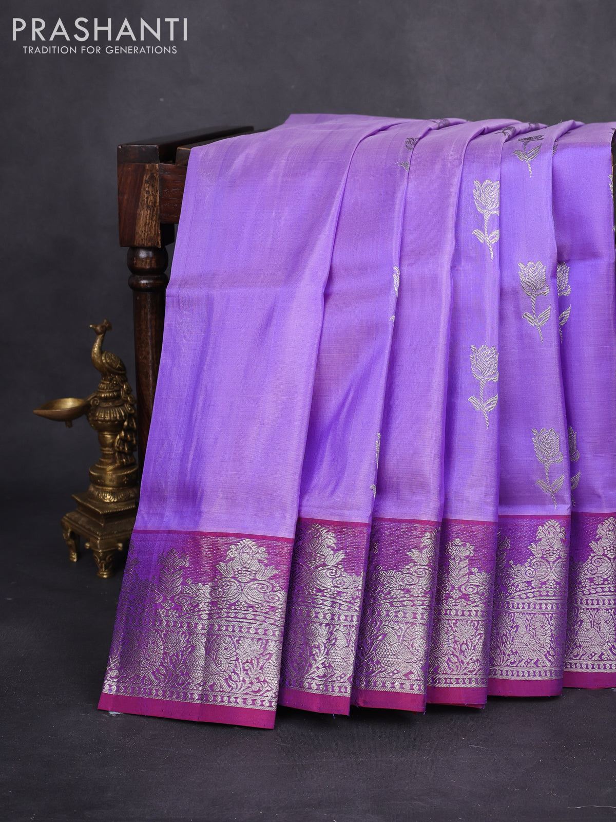 Venkatagiri silk saree lavender and dual shade of maroon with silver zari woven floral buttas and rich zari woven border
