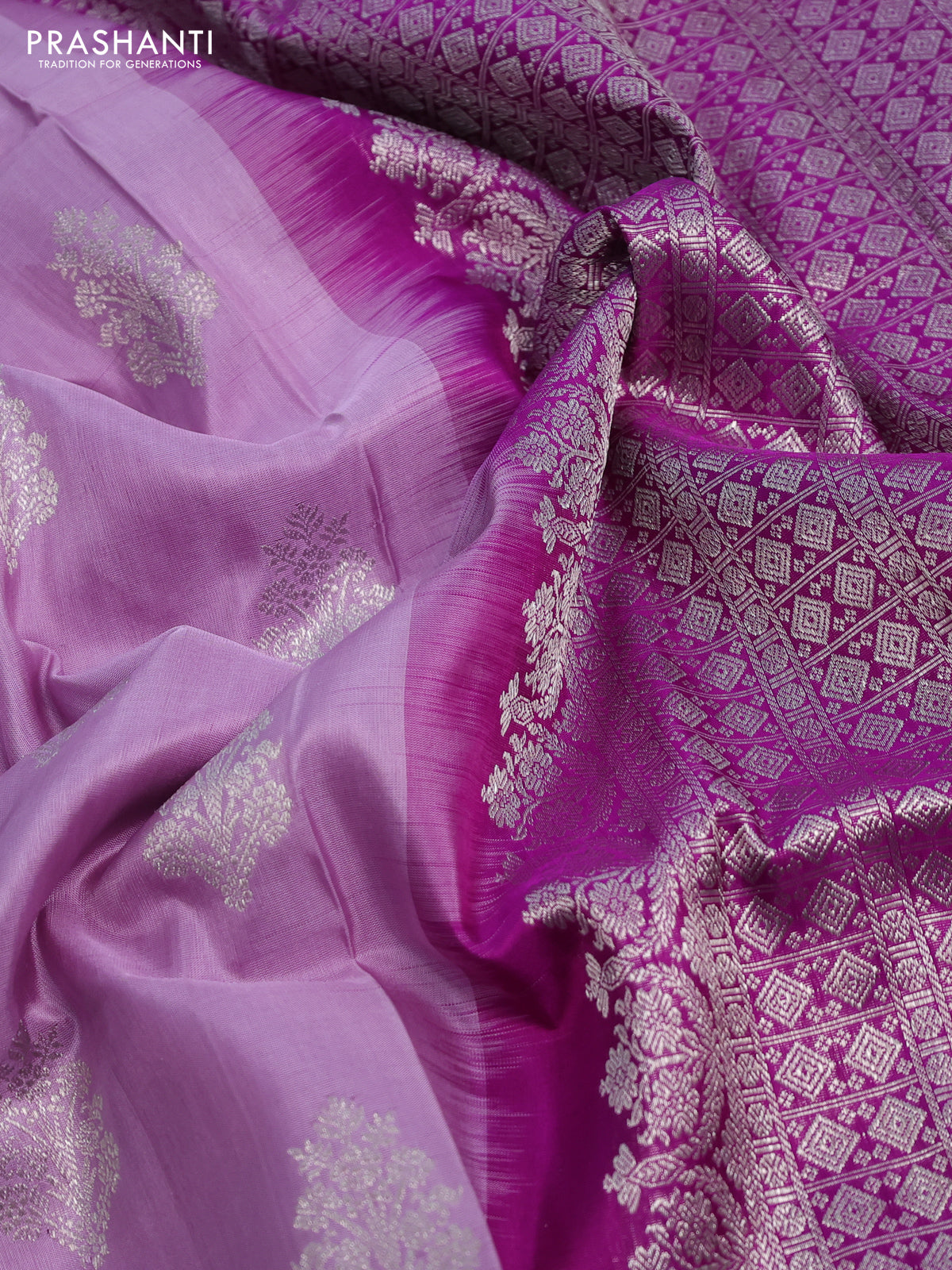 Venkatagiri silk saree lavender and purple with silver zari woven buttas and long silver zari woven border