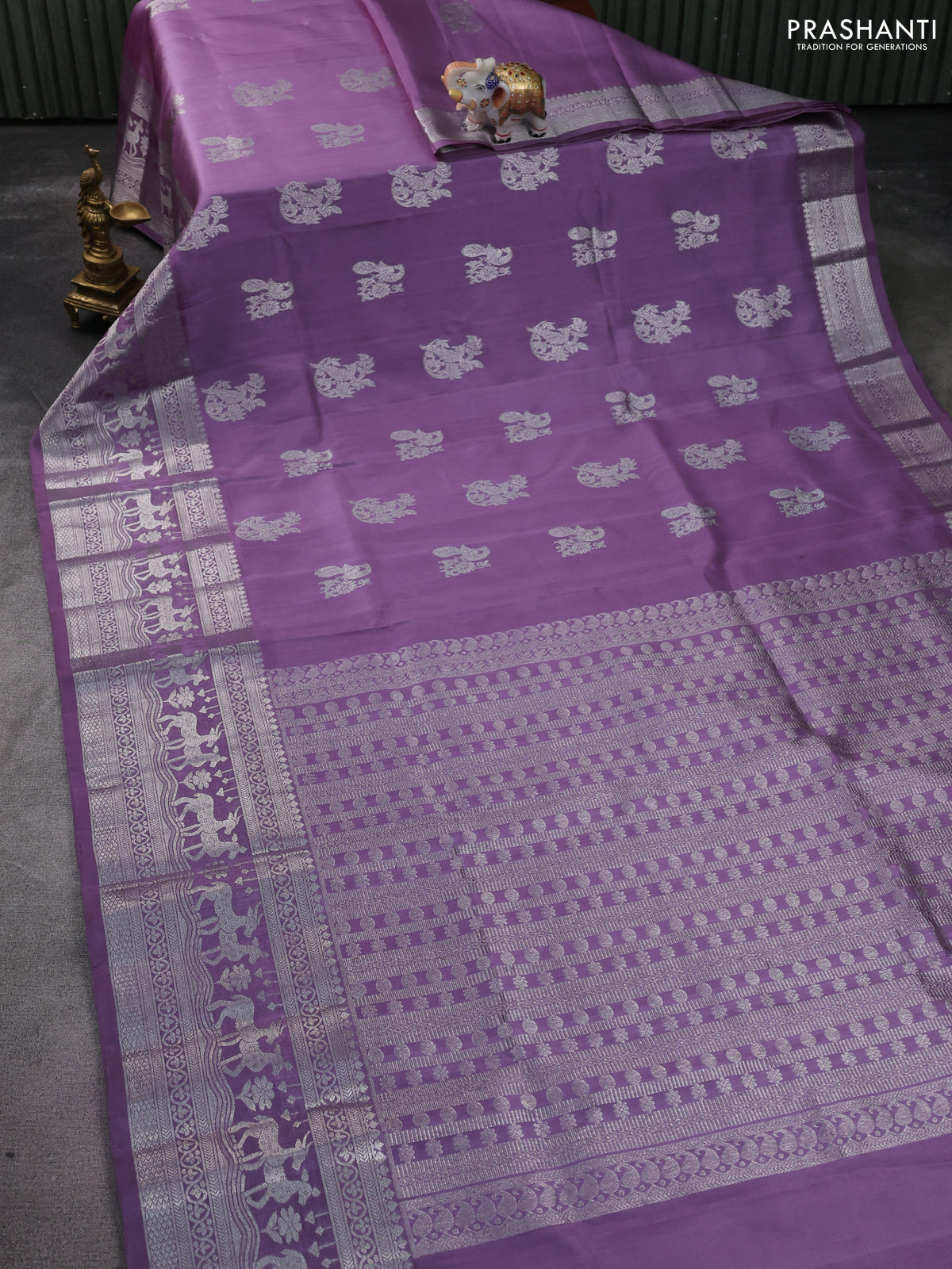 Venkatagiri silk saree lavender with silver zari woven buttas and long silver zari woven border