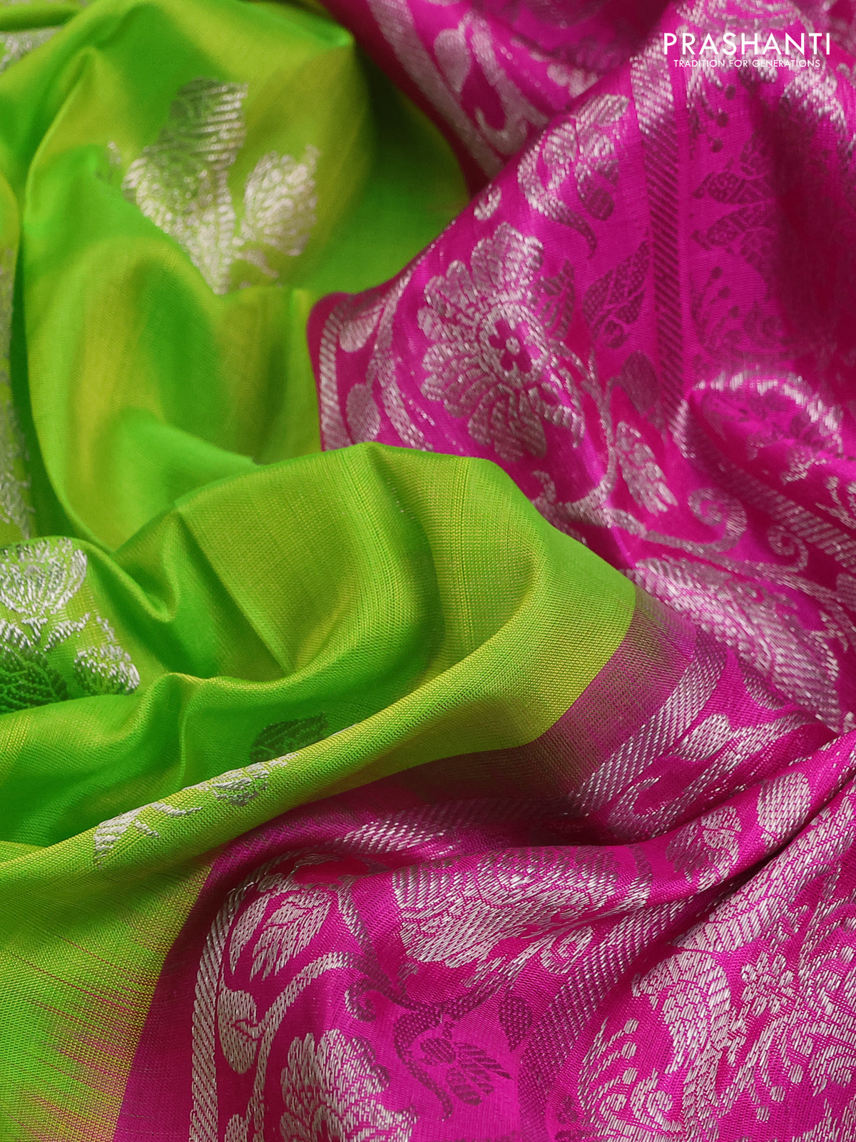 Venkatagiri silk saree light green and pink with silver zari woven buttas and silver zari woven border