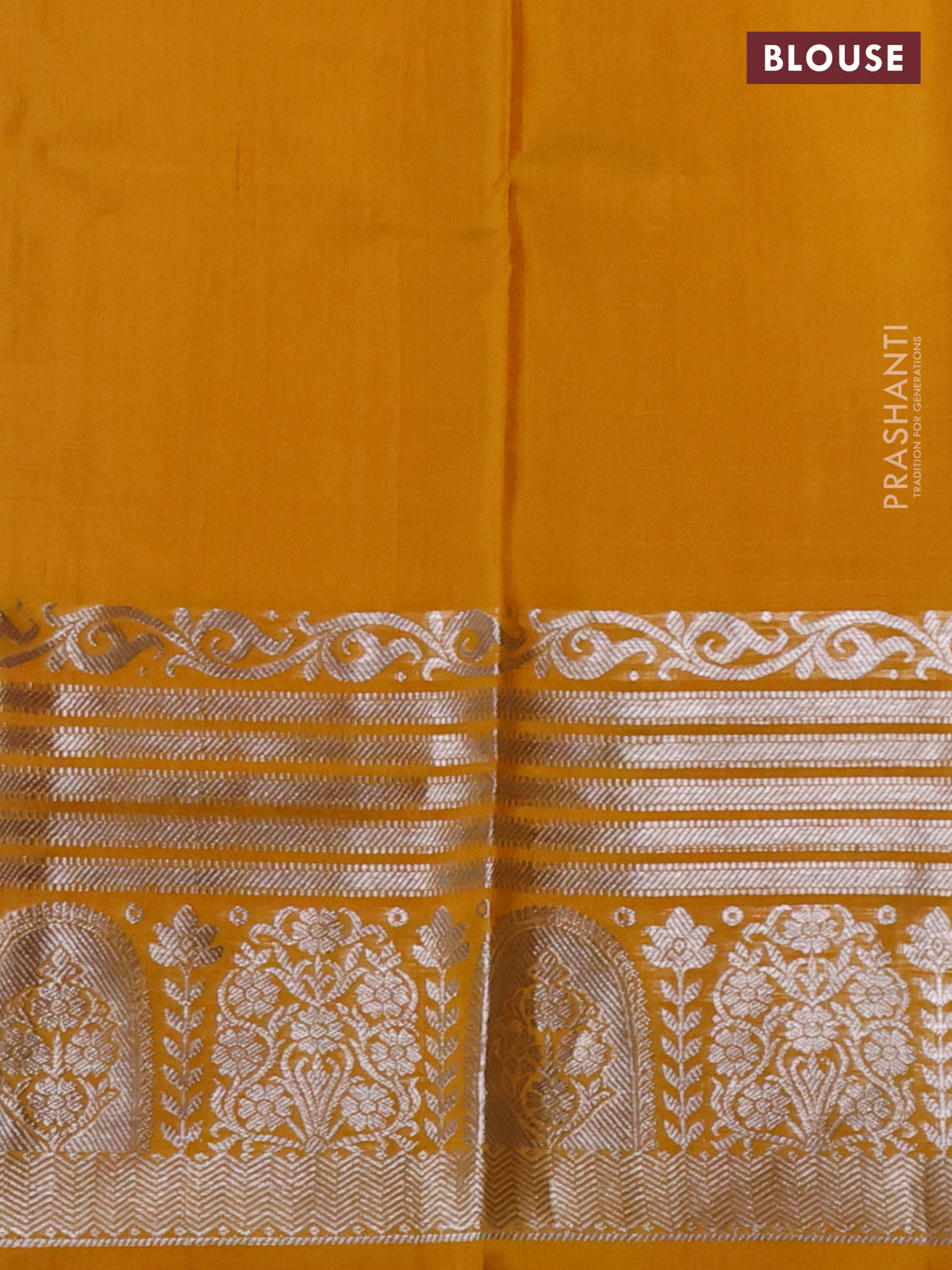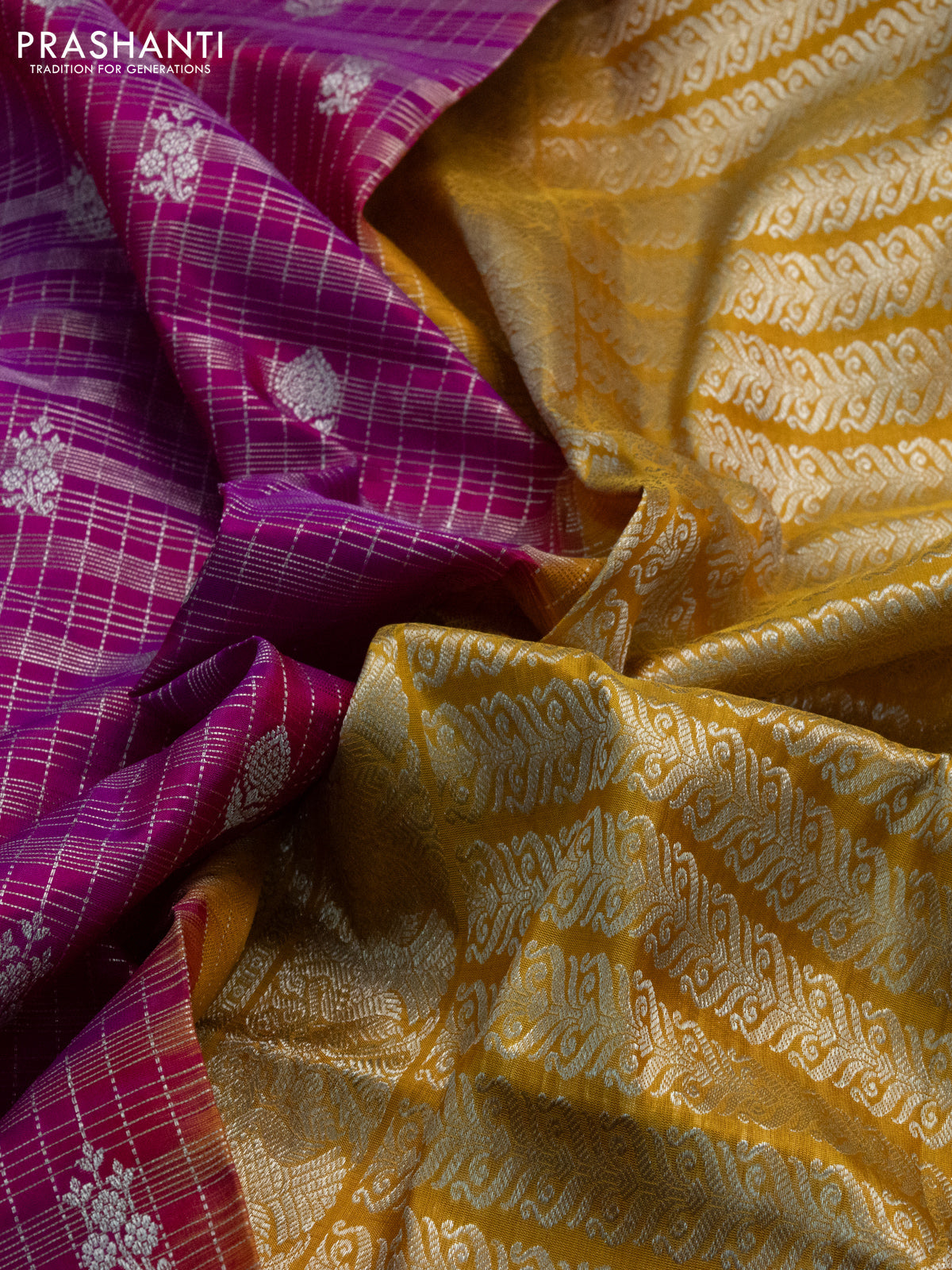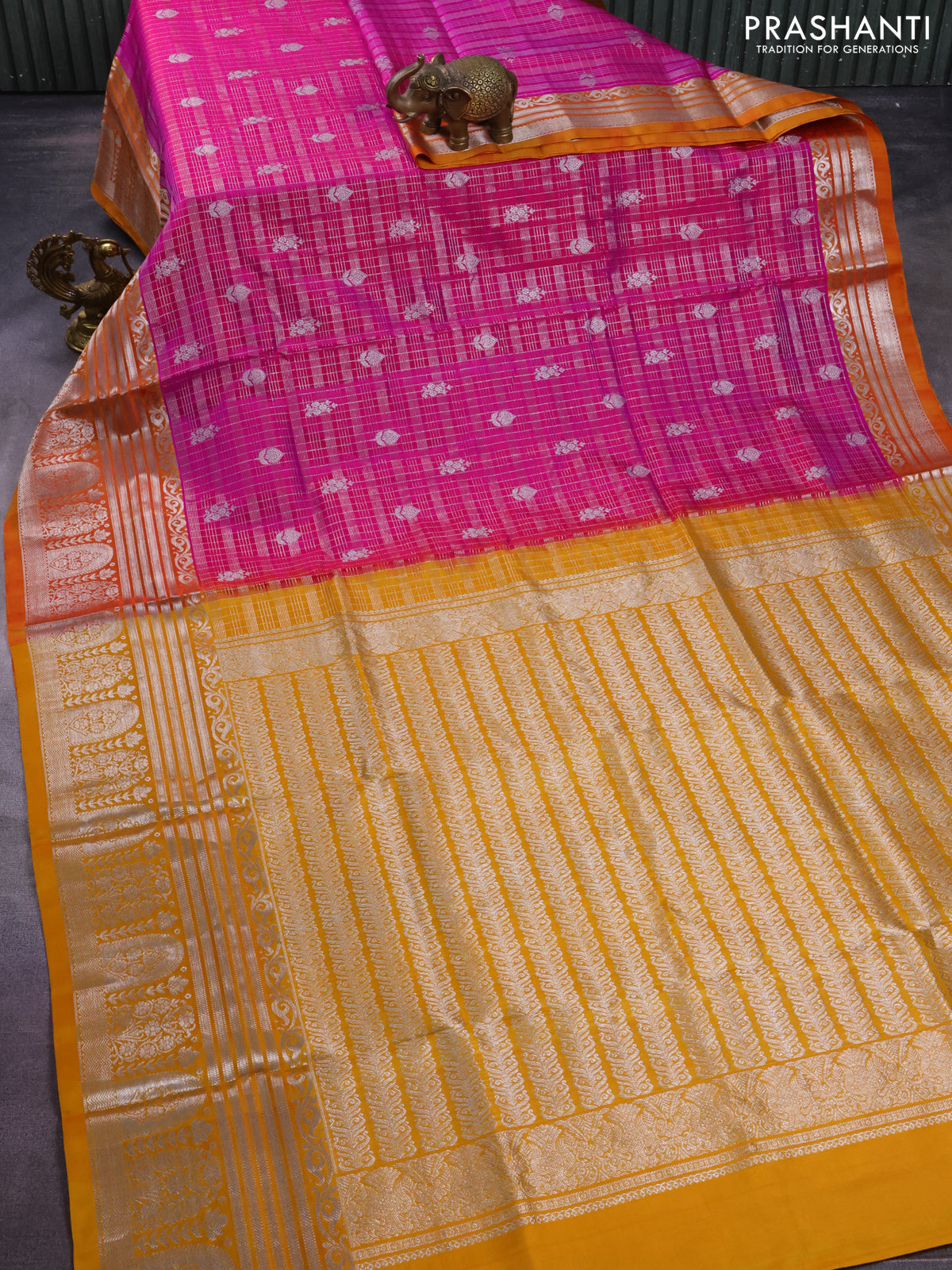 Venkatagiri silk saree magenta pink and mustard yellow with allover silver zari checks & buttas and long silver zari woven border
