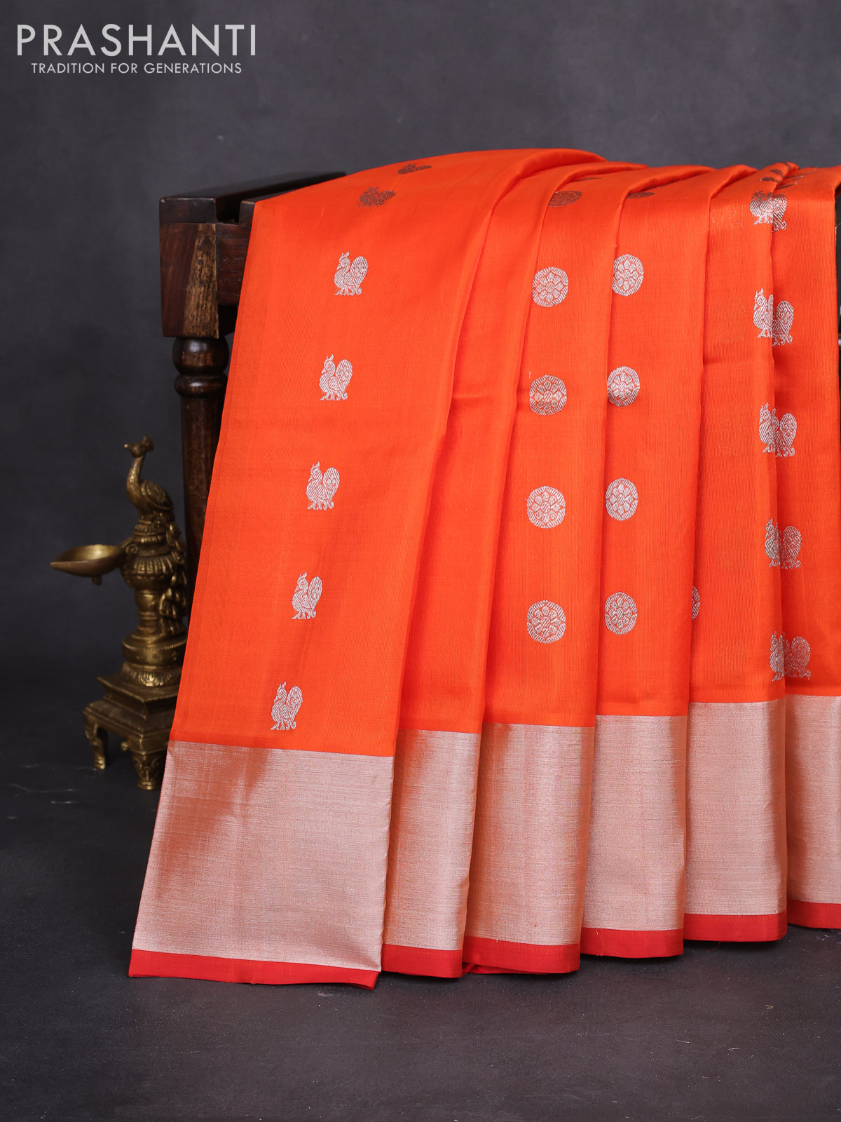 Venkatagiri silk saree orange with silver zari woven buttas and silver zari woven border