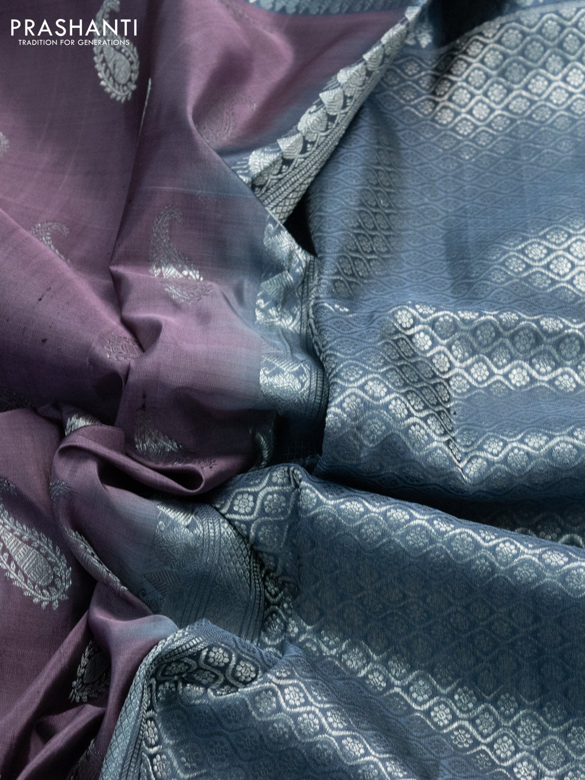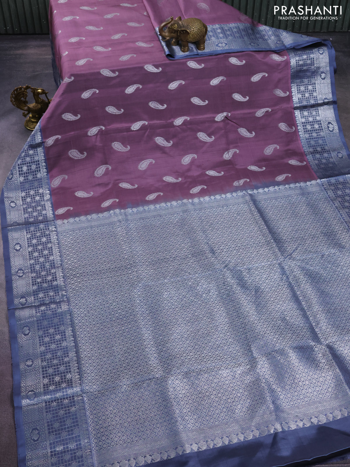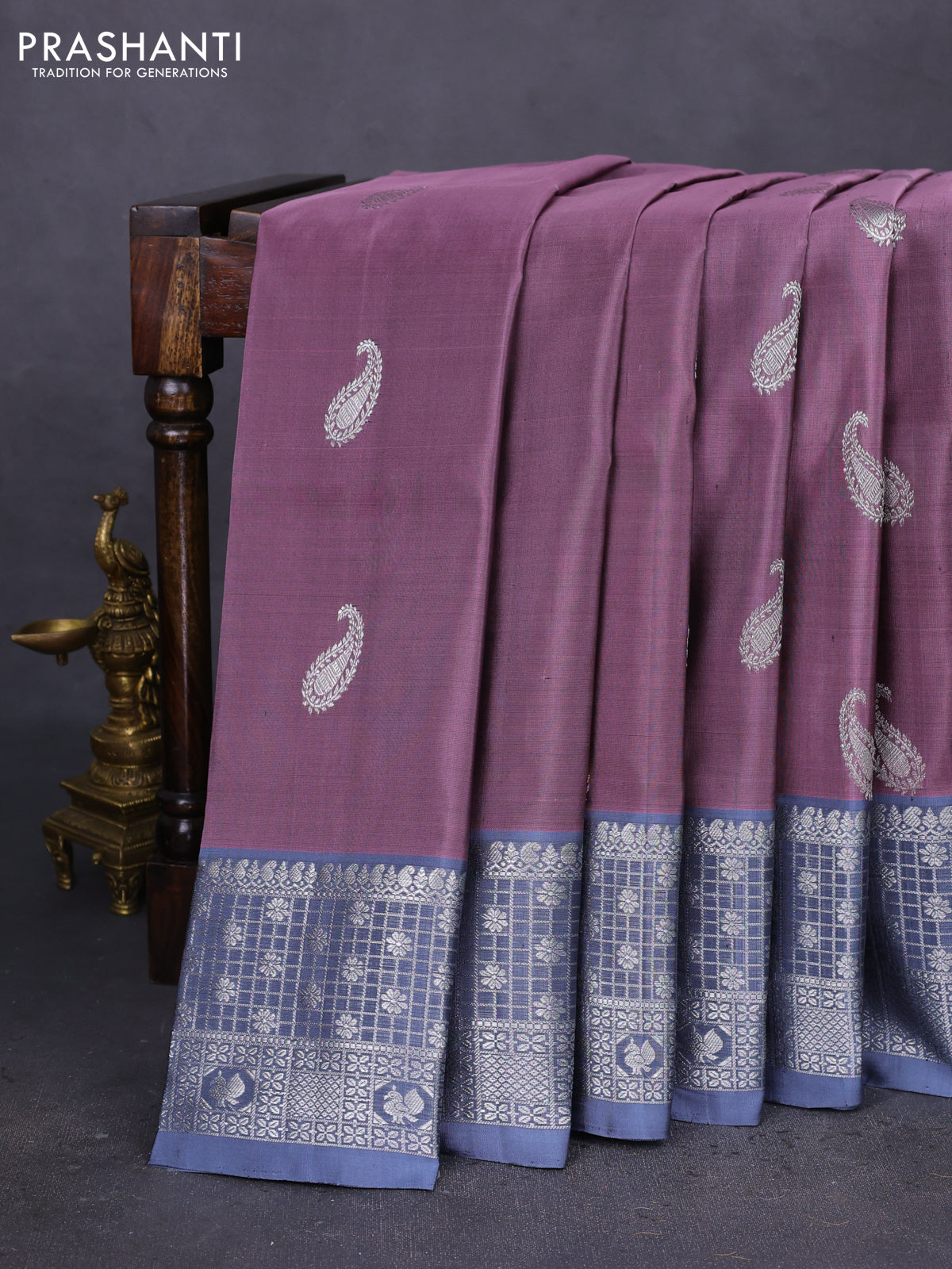 Venkatagiri silk saree pastel pink and grey with silver zari woven paisley buttas and silver zari woven border