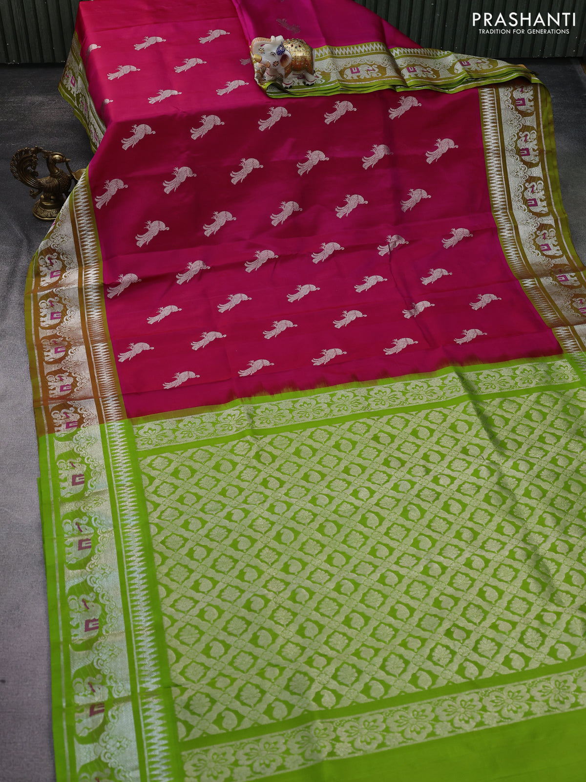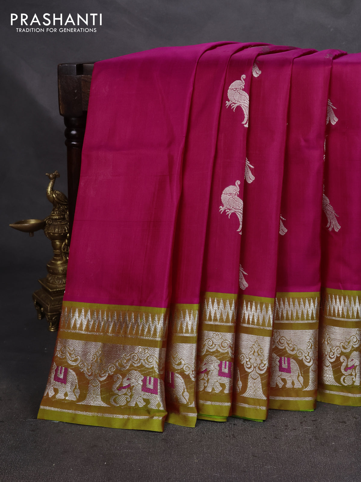 Venkatagiri silk saree pink and light green with silver zari woven buttas and silver zari woven border
