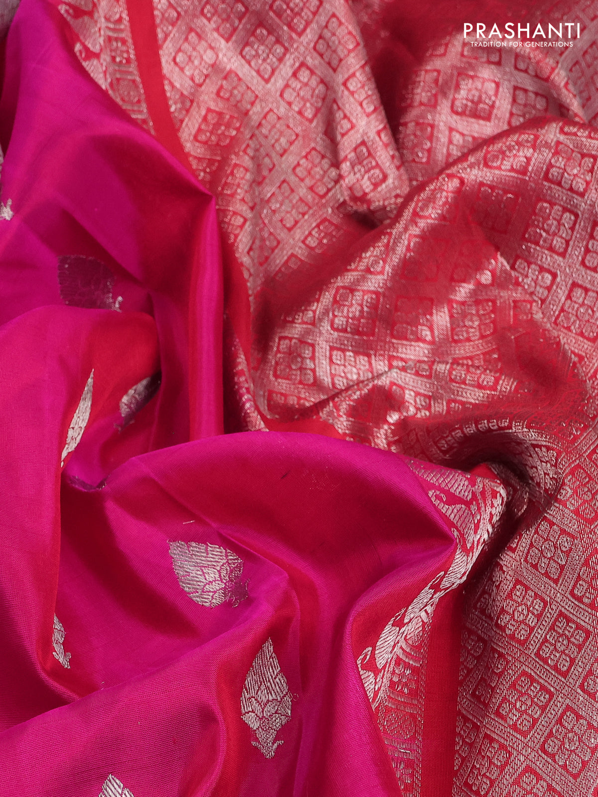Venkatagiri silk saree pink and red with silver zari woven buttas and silver zari woven border