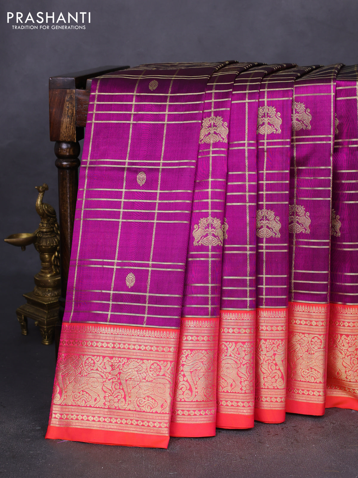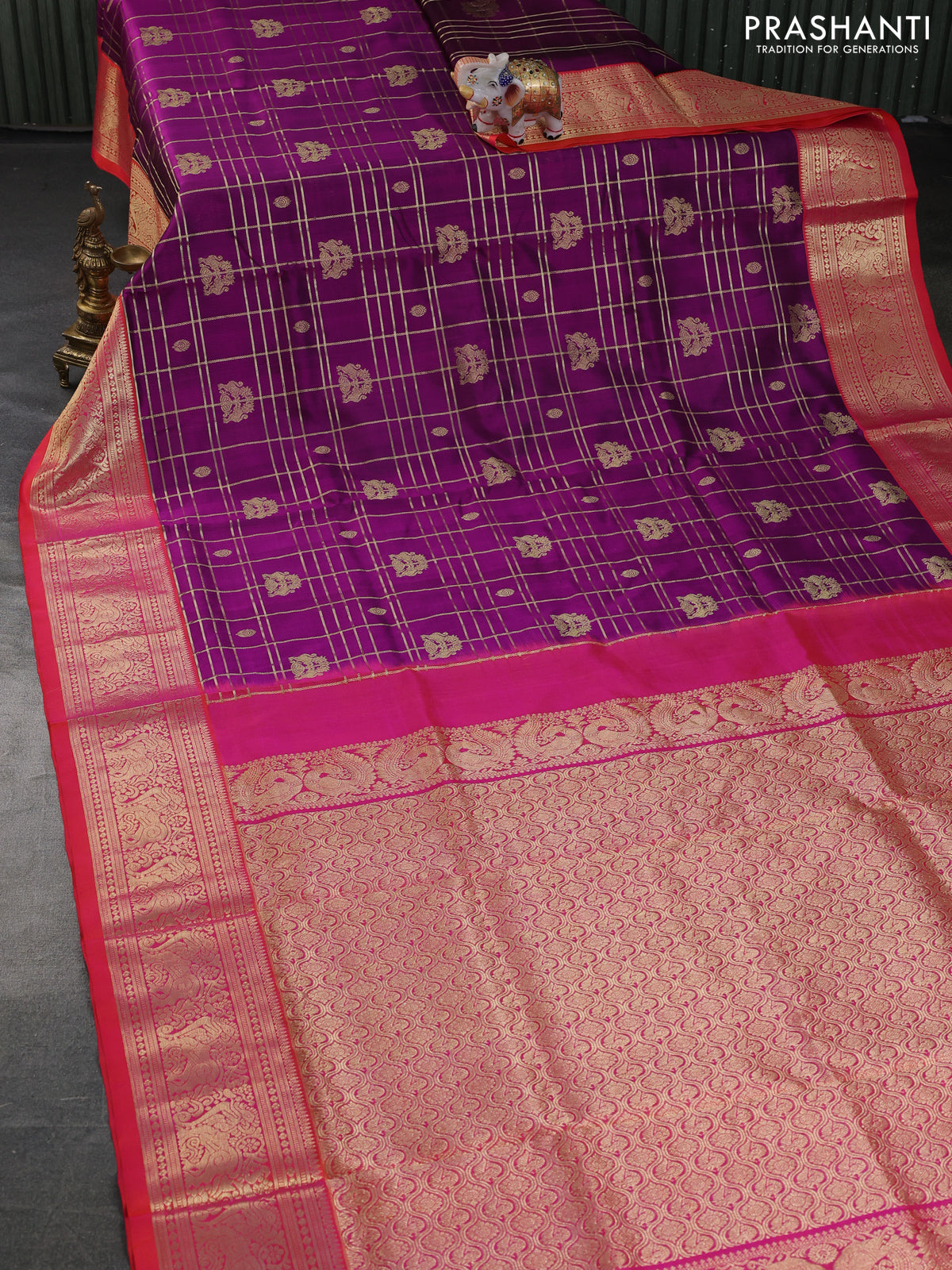 Venkatagiri silk saree purple and dual shade of pinkish orange with allover zari checks & buttas and rich zari woven border