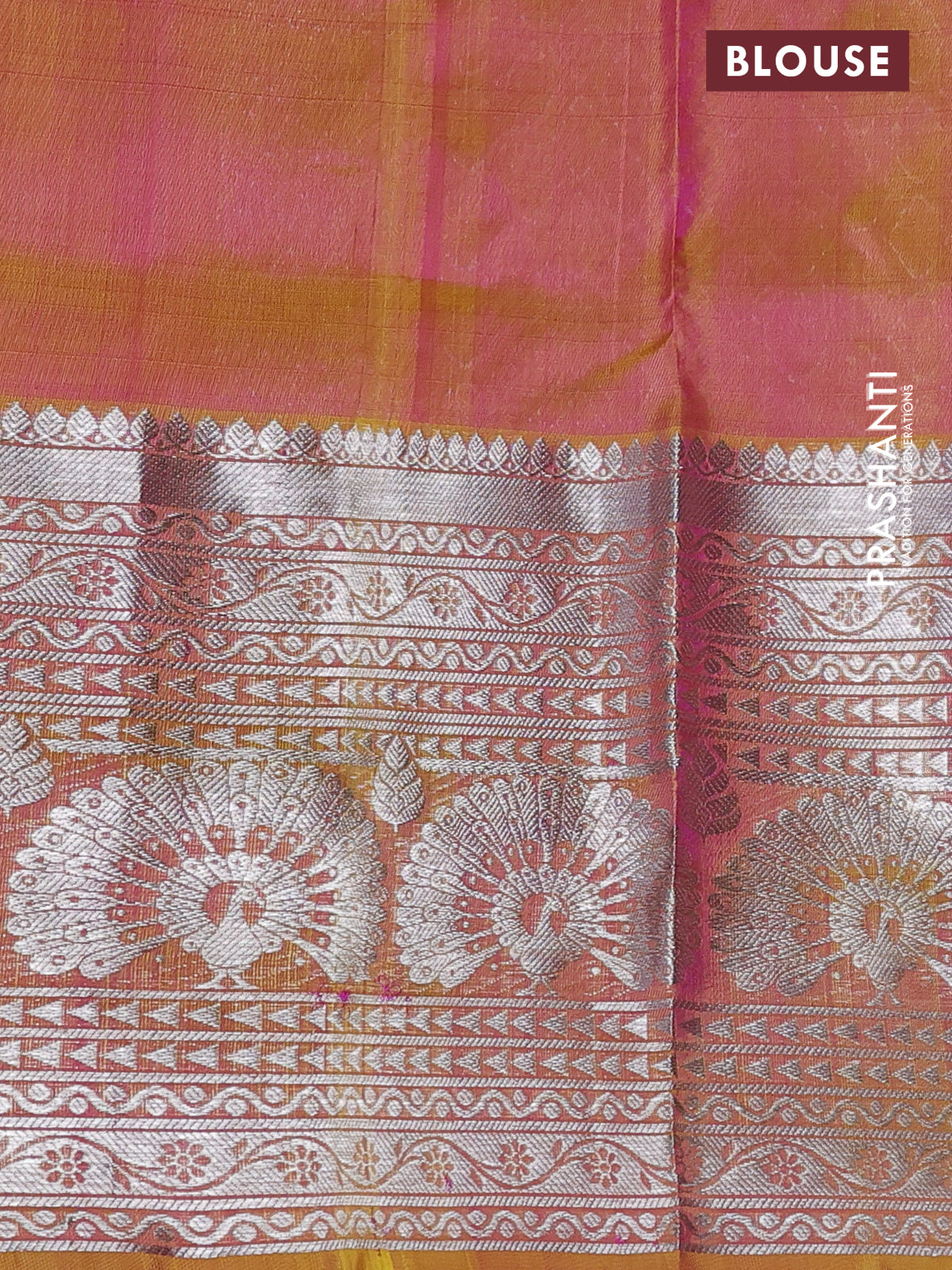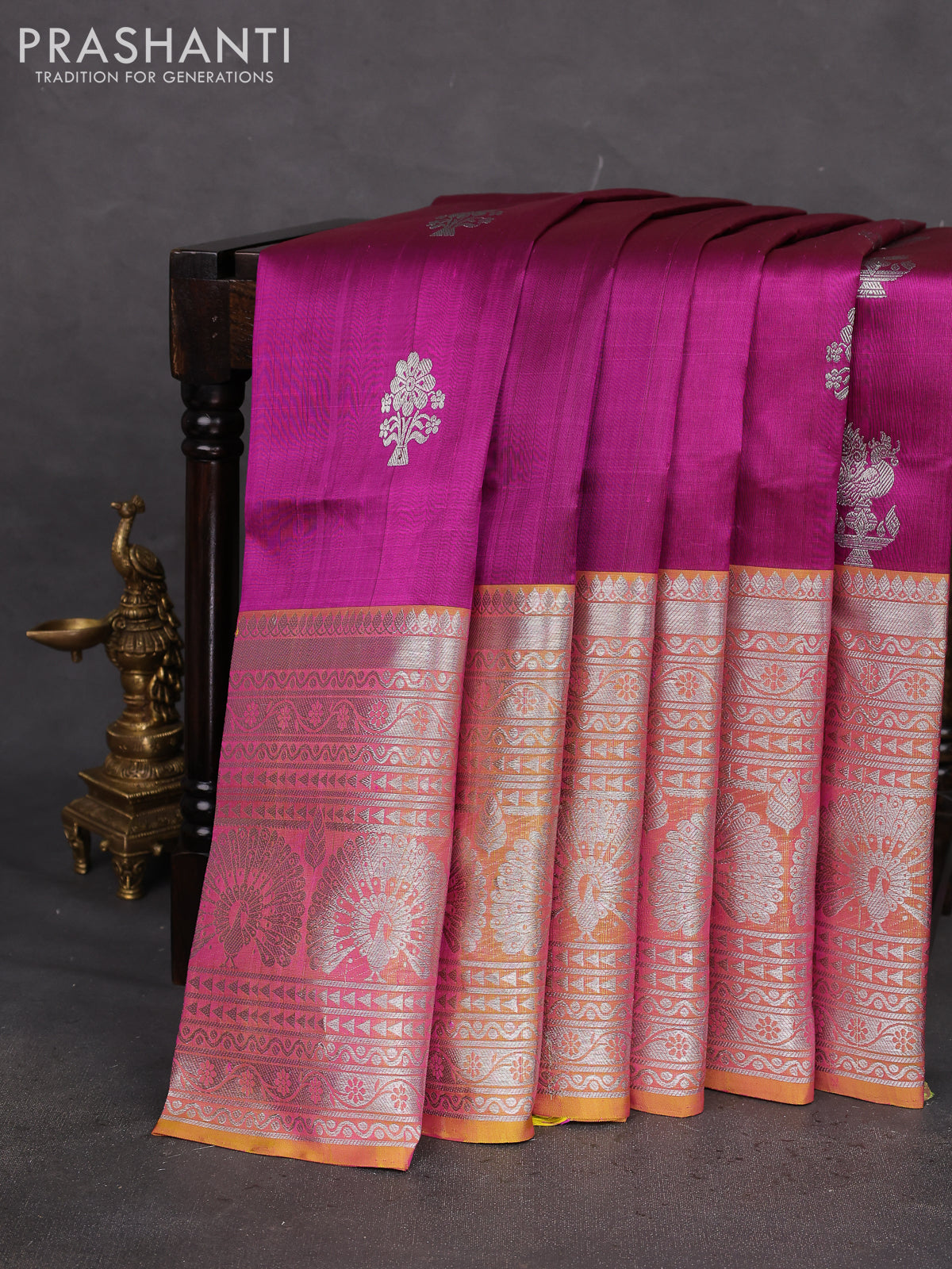Venkatagiri silk saree purple and dual shade of yellow with silver zari woven buttas and long rich silver zari woven border