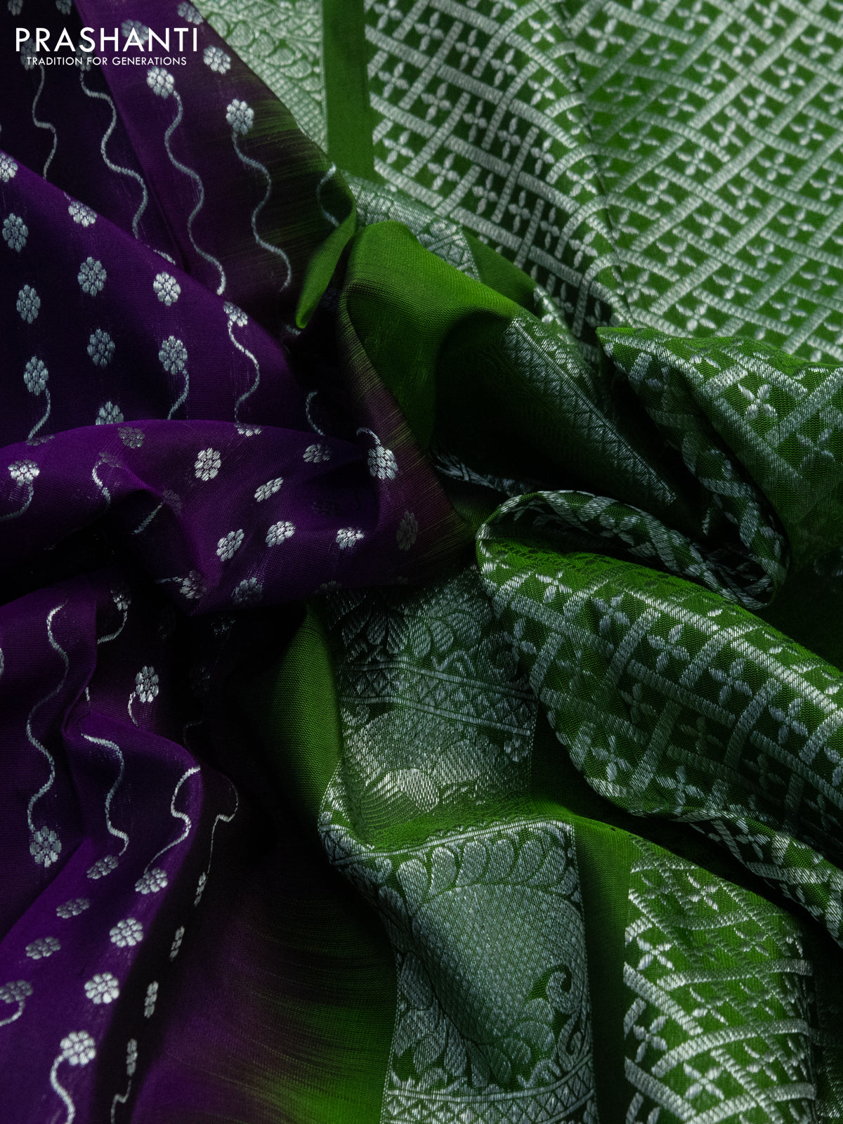 Venkatagiri silk saree purple and green with allover silver zari weaves and rich elephnat silver zari woven border