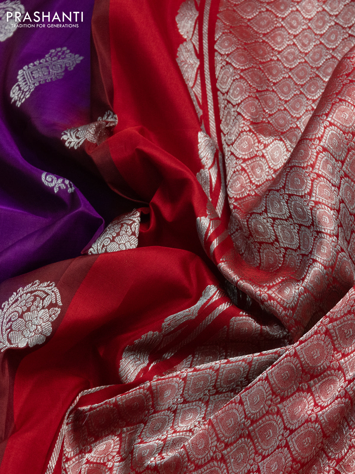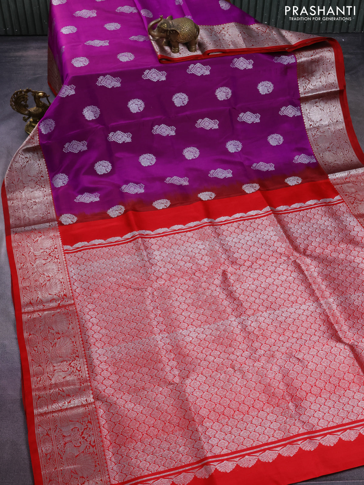 Venkatagiri silk saree purple and maroon with allover silver weaves and rich silver zari woven border