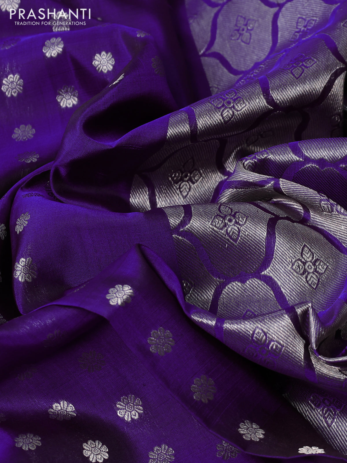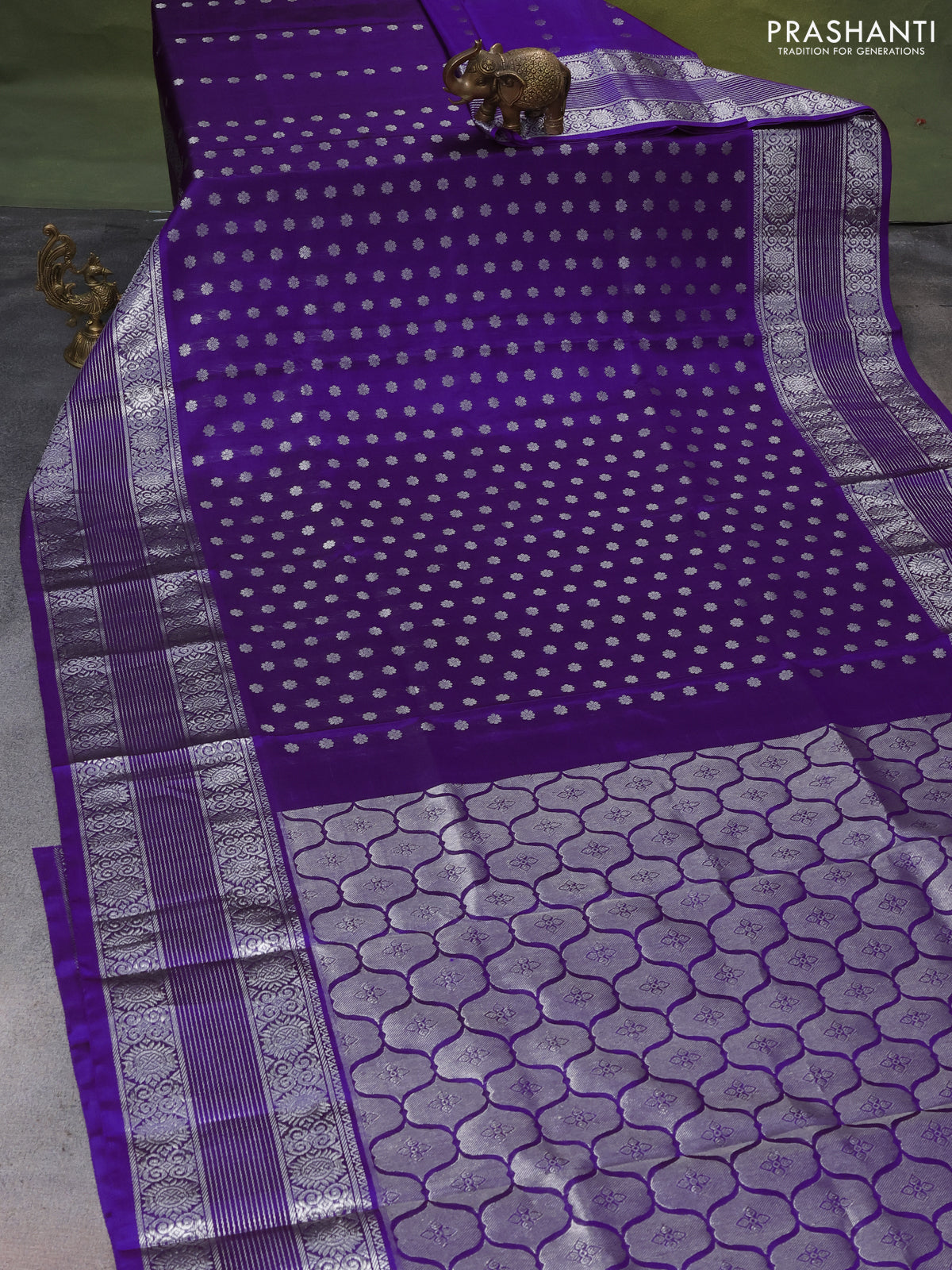 Venkatagiri silk saree purple with allover silver zari woven buttas and long silver zari woven border