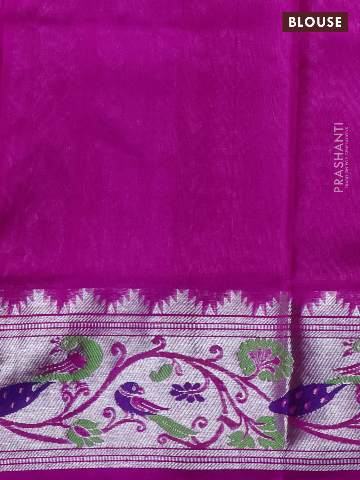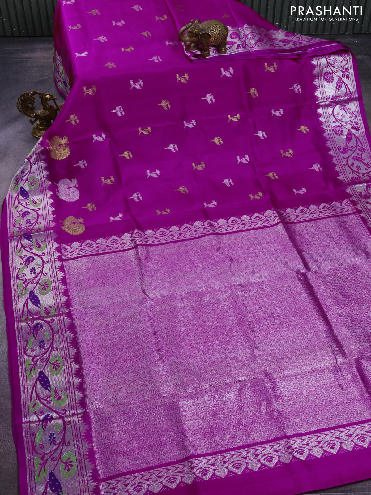 Venkatagiri silk saree purple with silver & gold zari woven buttas and silver zari woven peacock design border