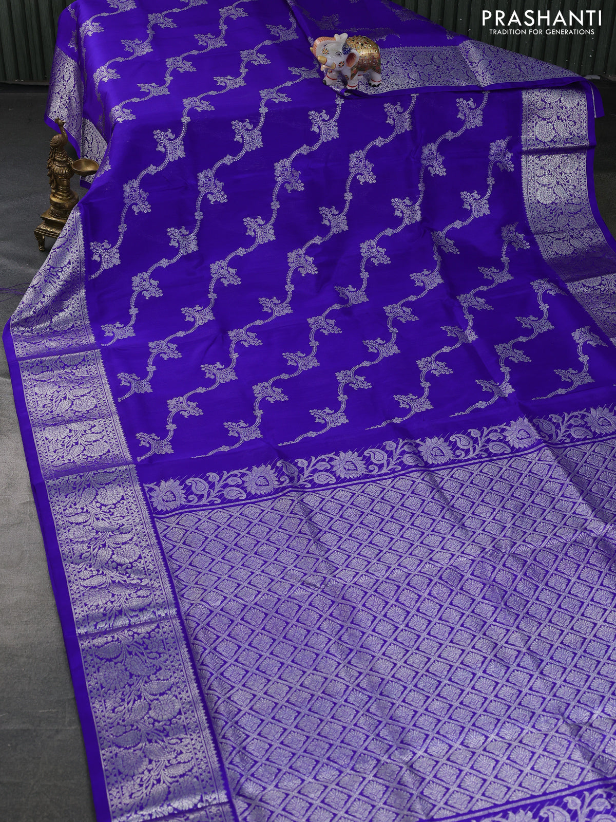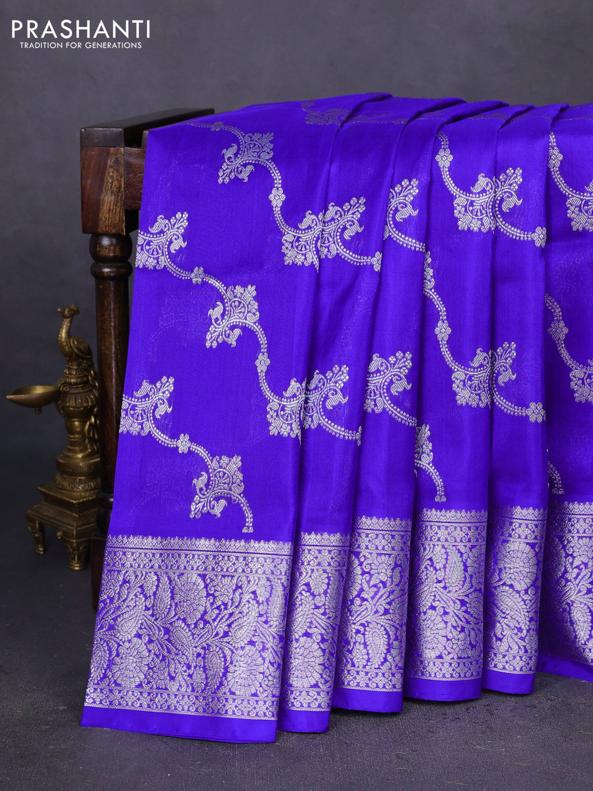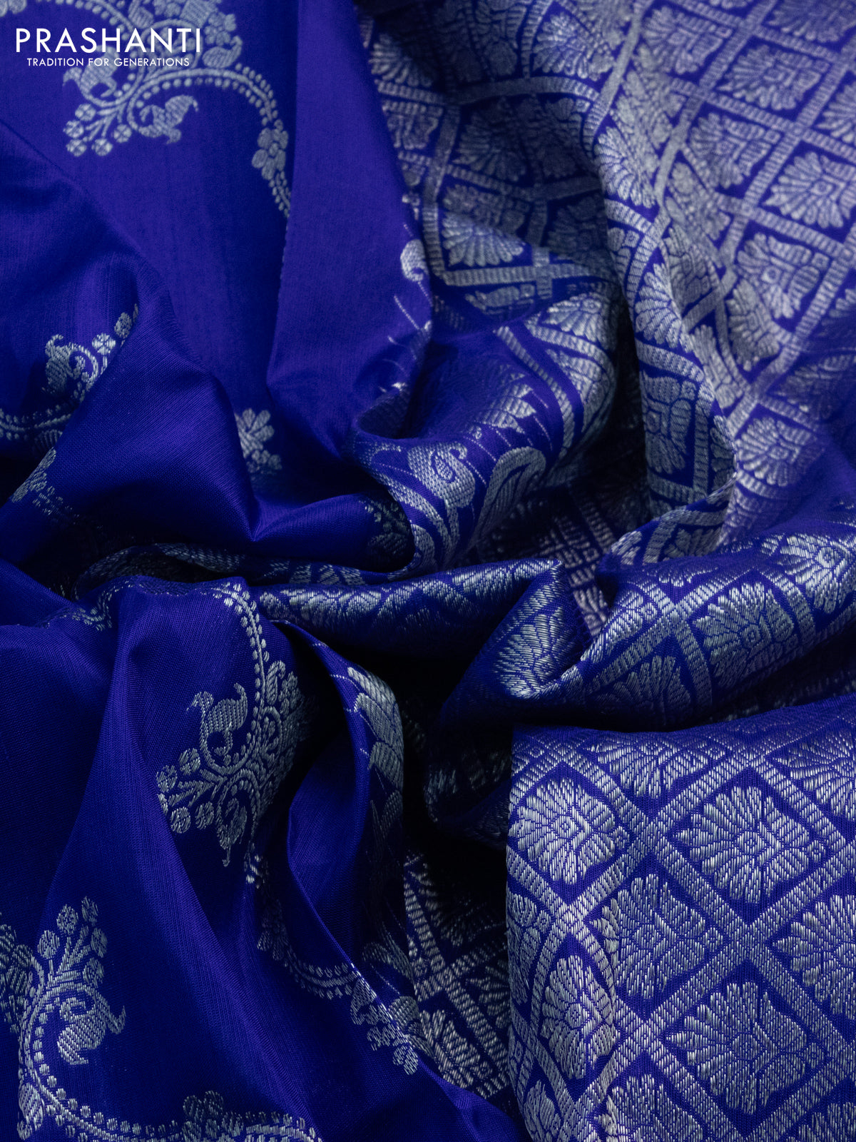 Venkatagiri silk saree royal blue with allover silver weaves and rich silver zari woven border