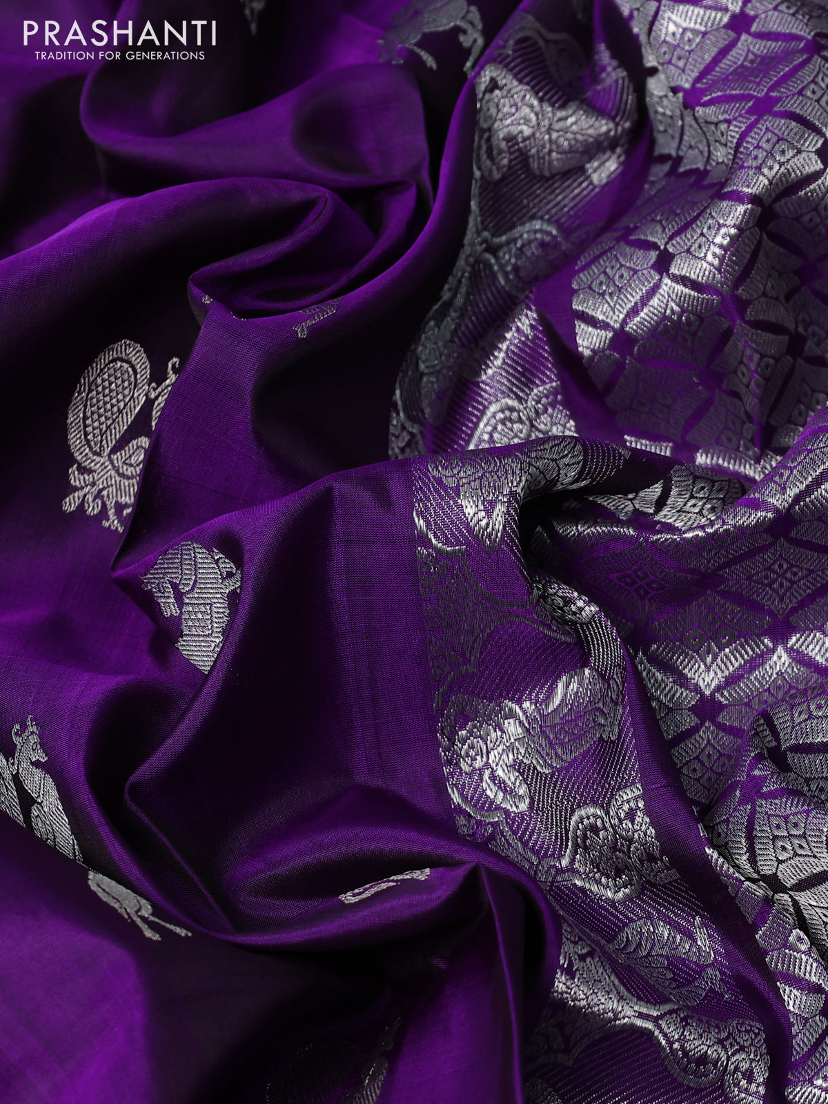 Venkatagiri silk saree violet with silver zari woven buttas and long silver zari woven border