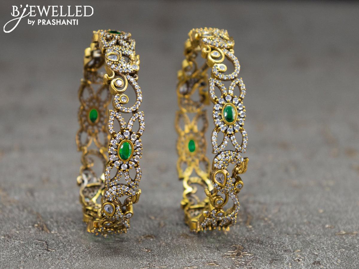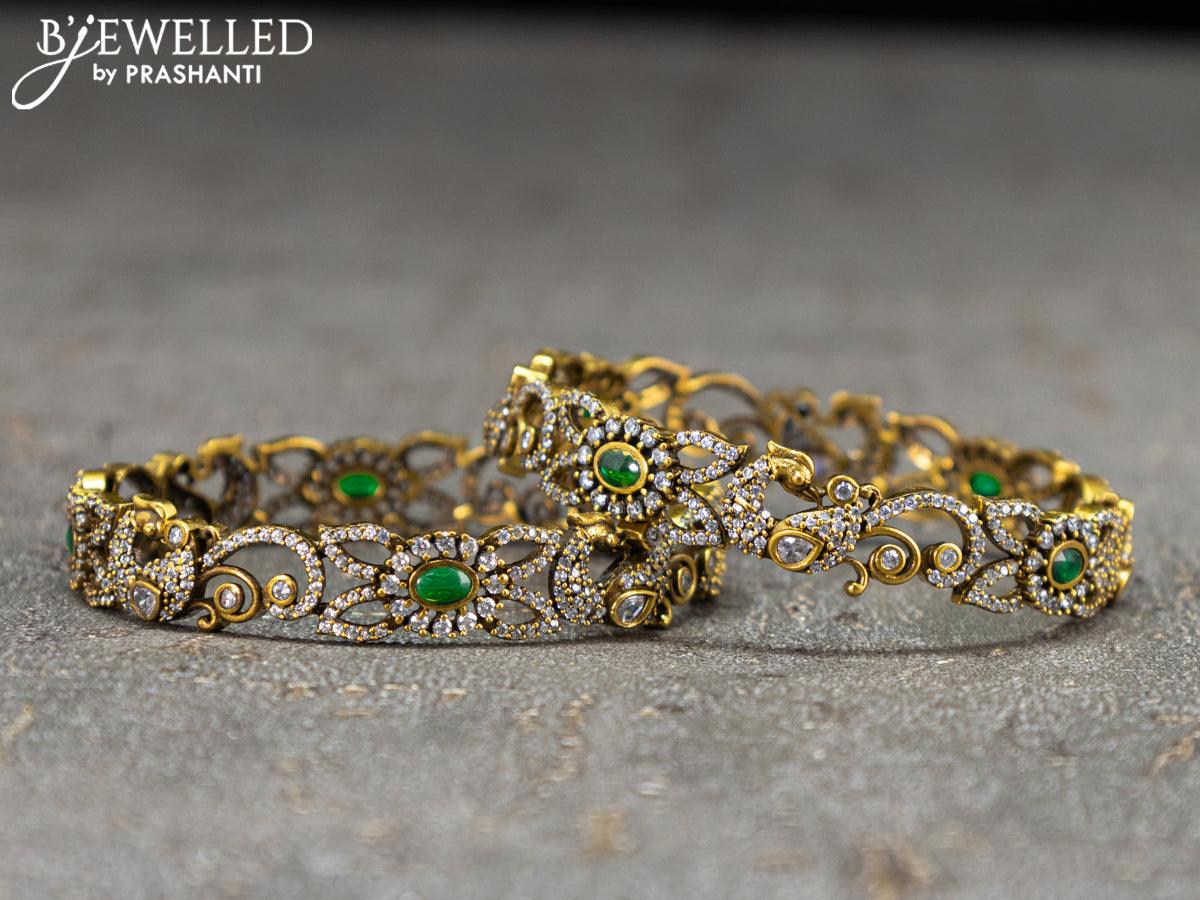 Victorian bangles peacock design with emarald and cz stones
